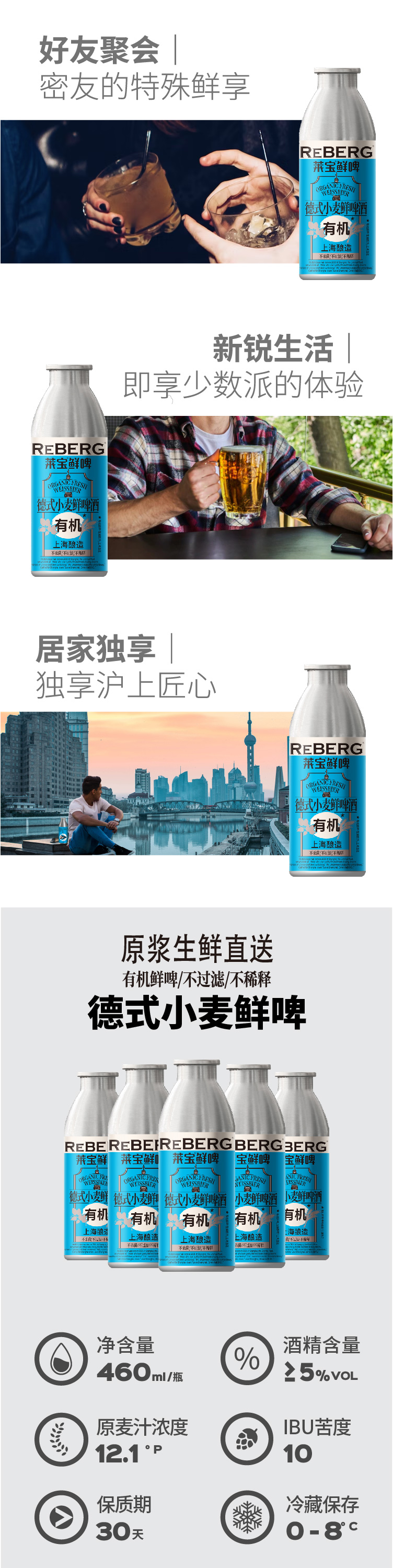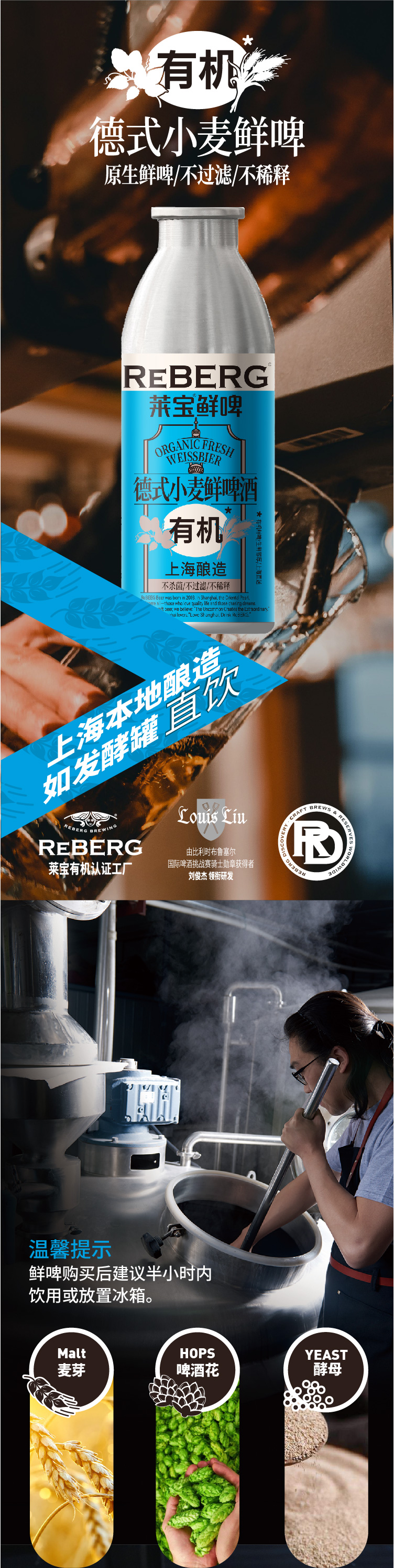 Reberg莱宝精酿有机德式小麦鲜啤酒460ml国产生啤当日现灌