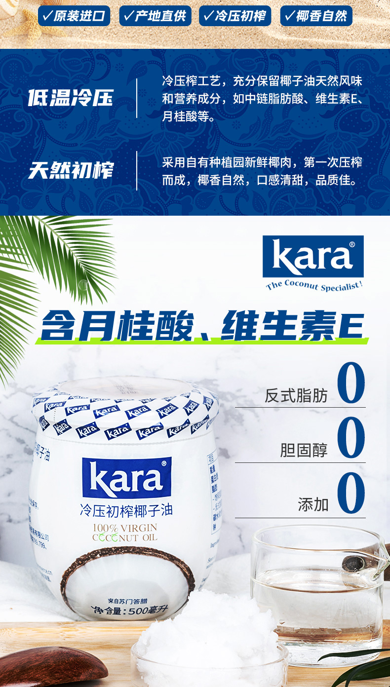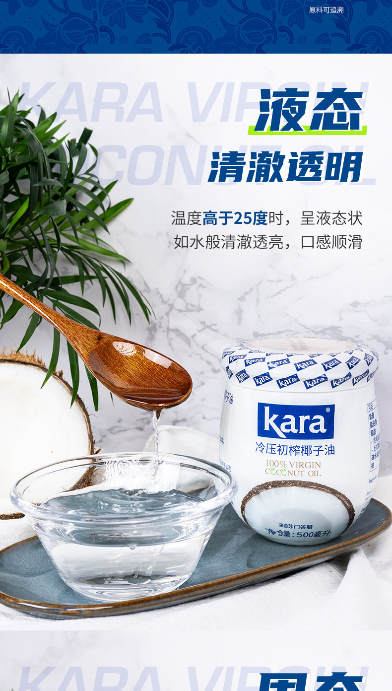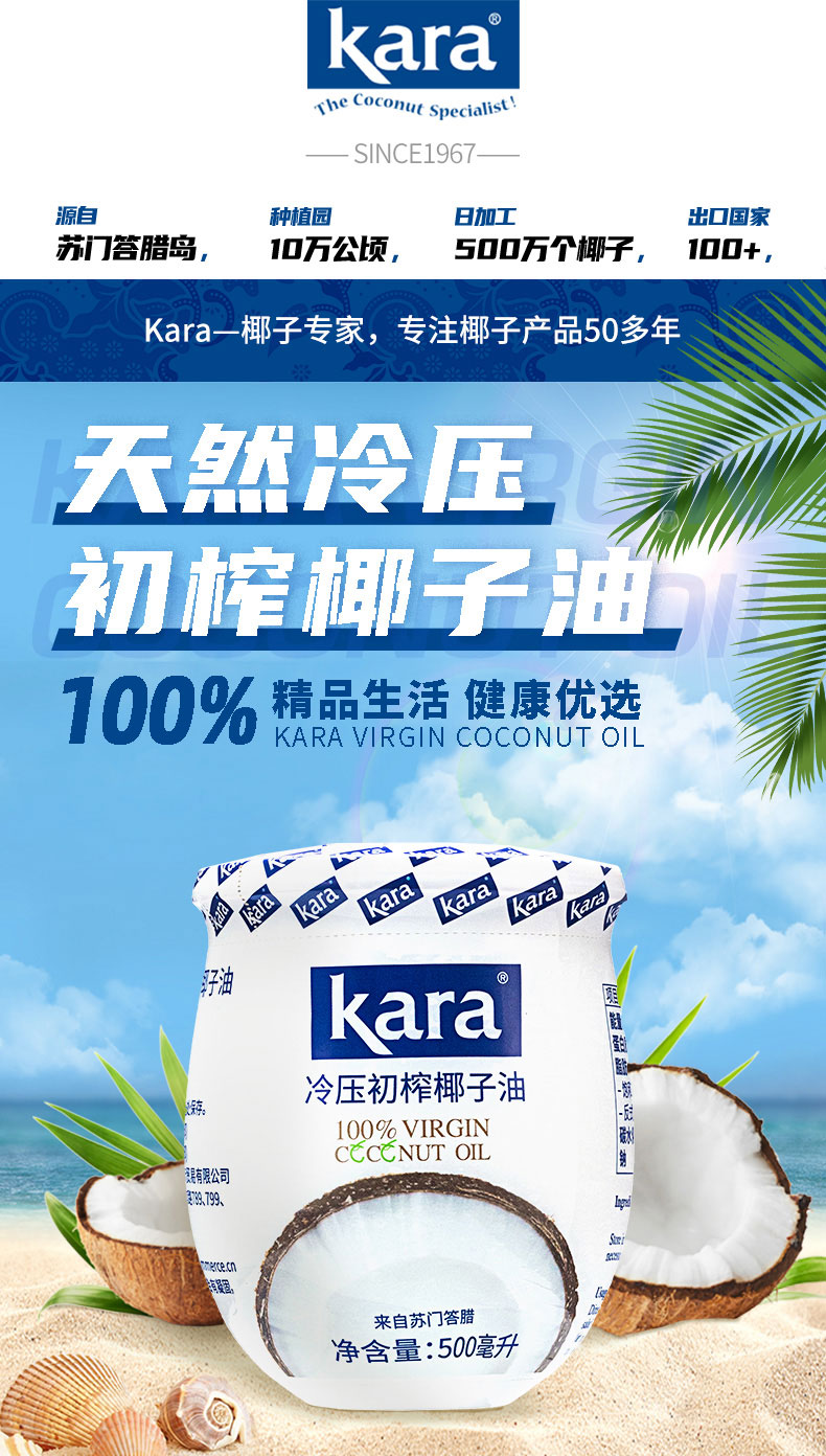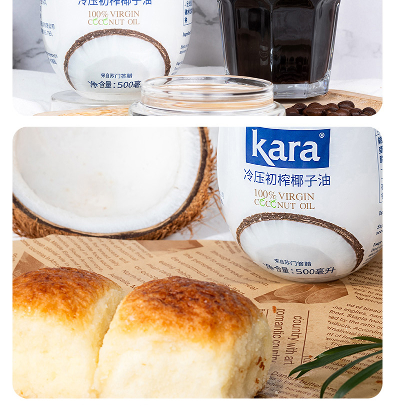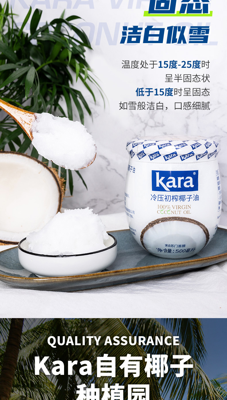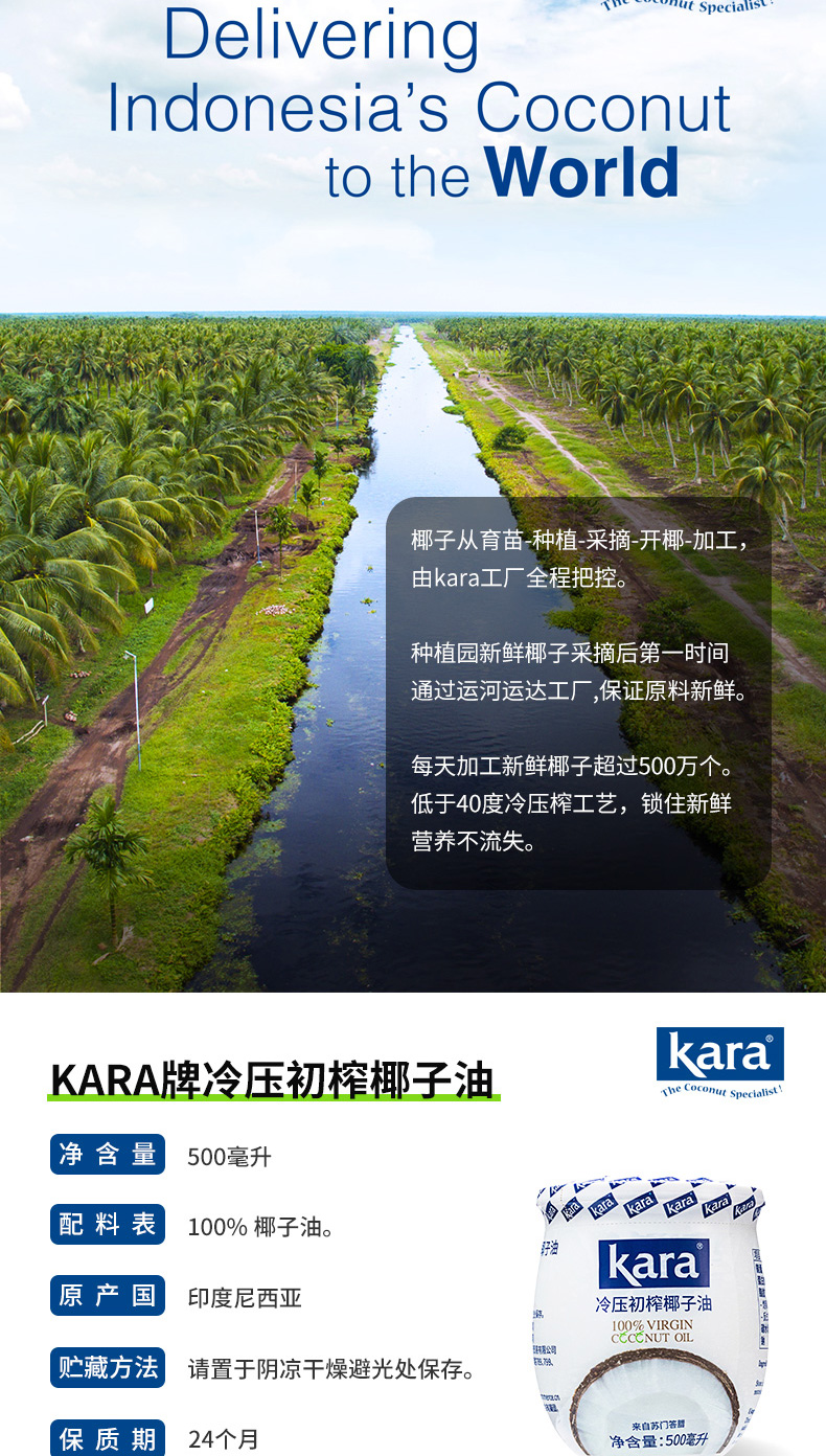 Kara冷压初榨椰子油 | 500ml/罐 防弹咖啡烘焙 护肤油漱 自有生态椰林 印度尼西亚原产「本批次生产日期2024年7月,保质期2年」