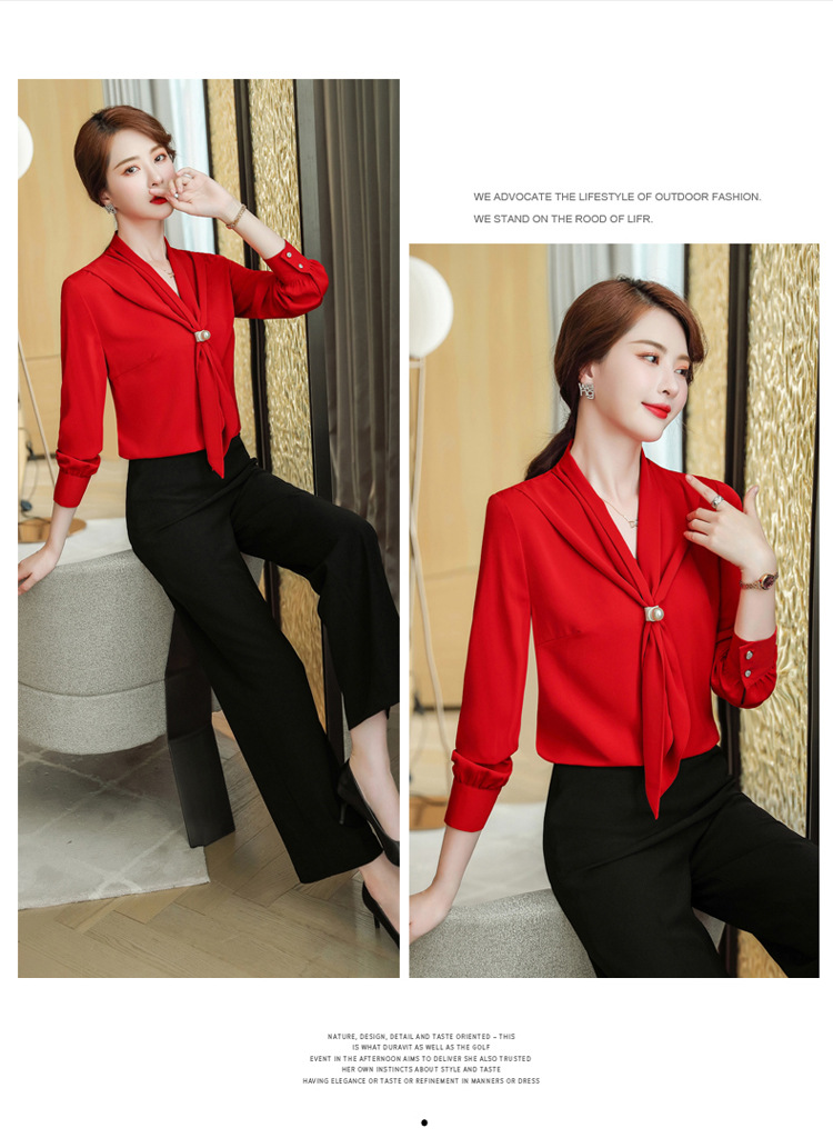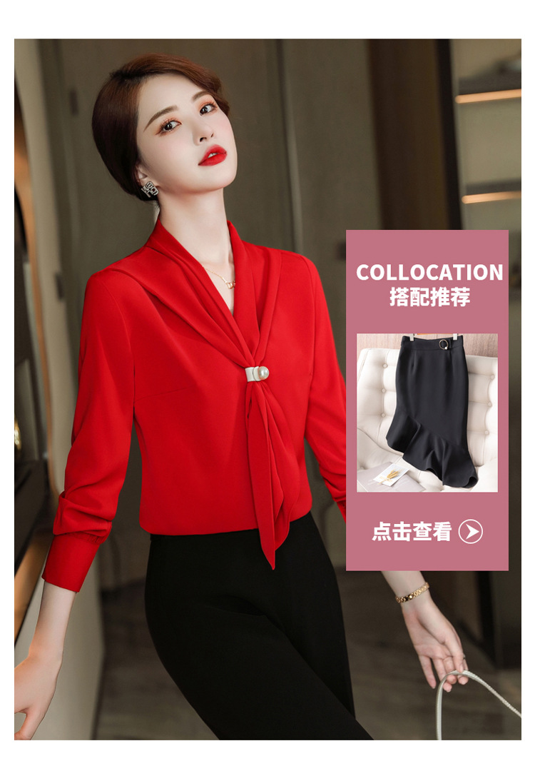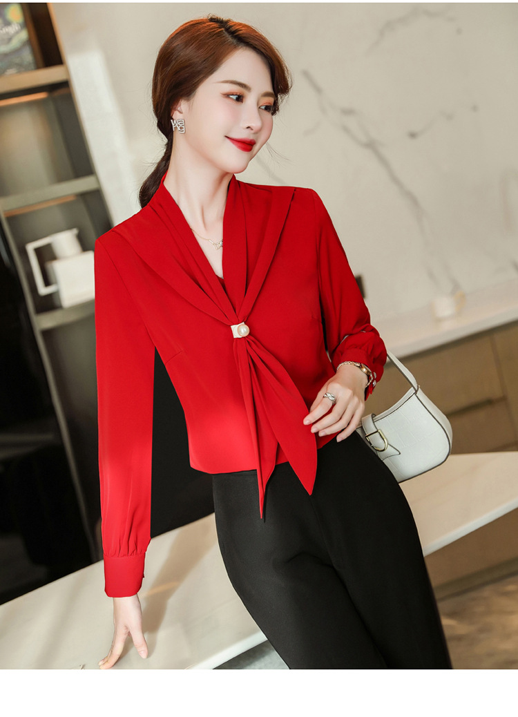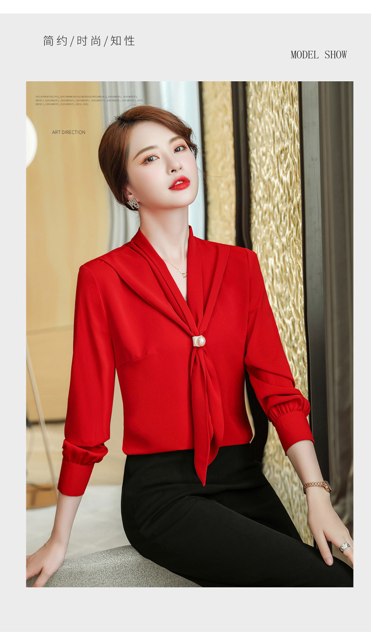 XZ-XZ-YQ6103红色衬衫女秋修身女士长袖雪纺衫秋季正装上衣职业装白衬衣工作服