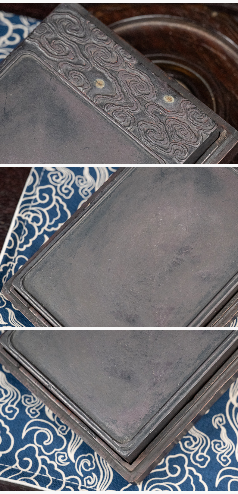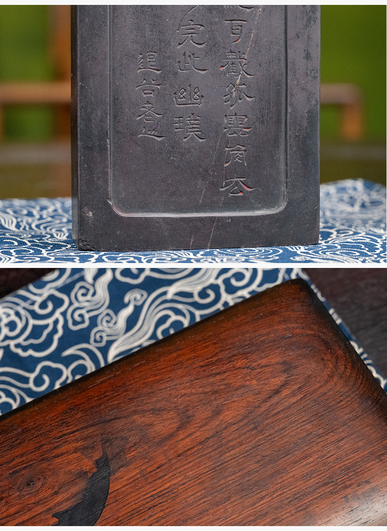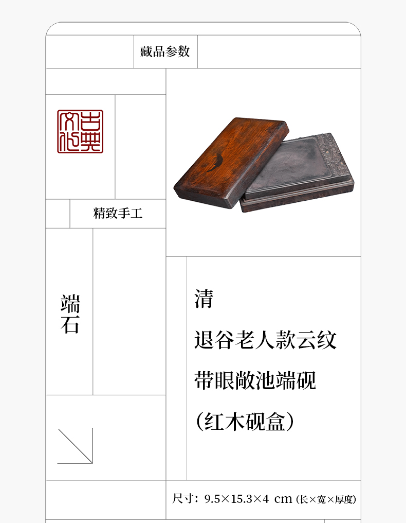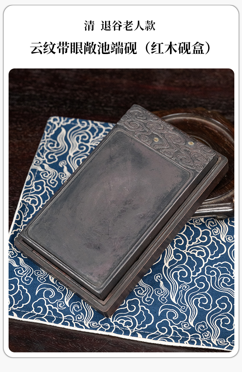 清 退谷老人款云纹带眼敞池端砚(红木砚盒)