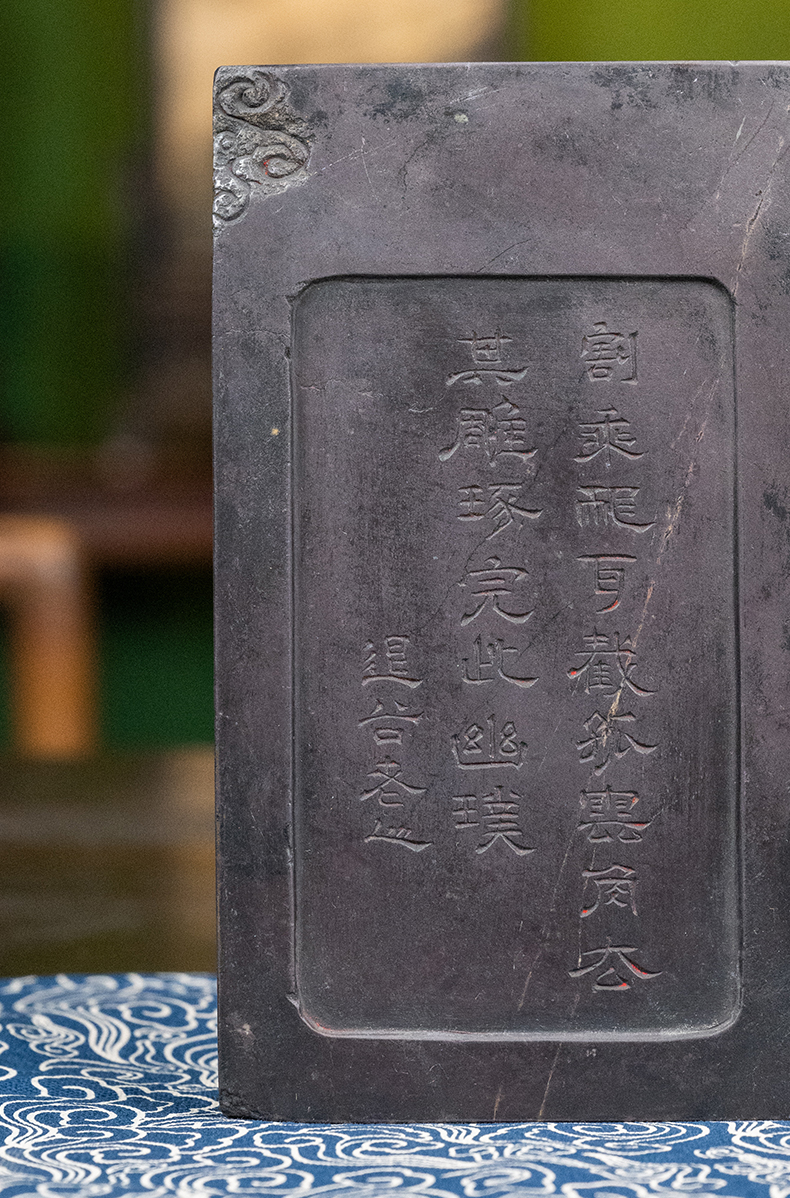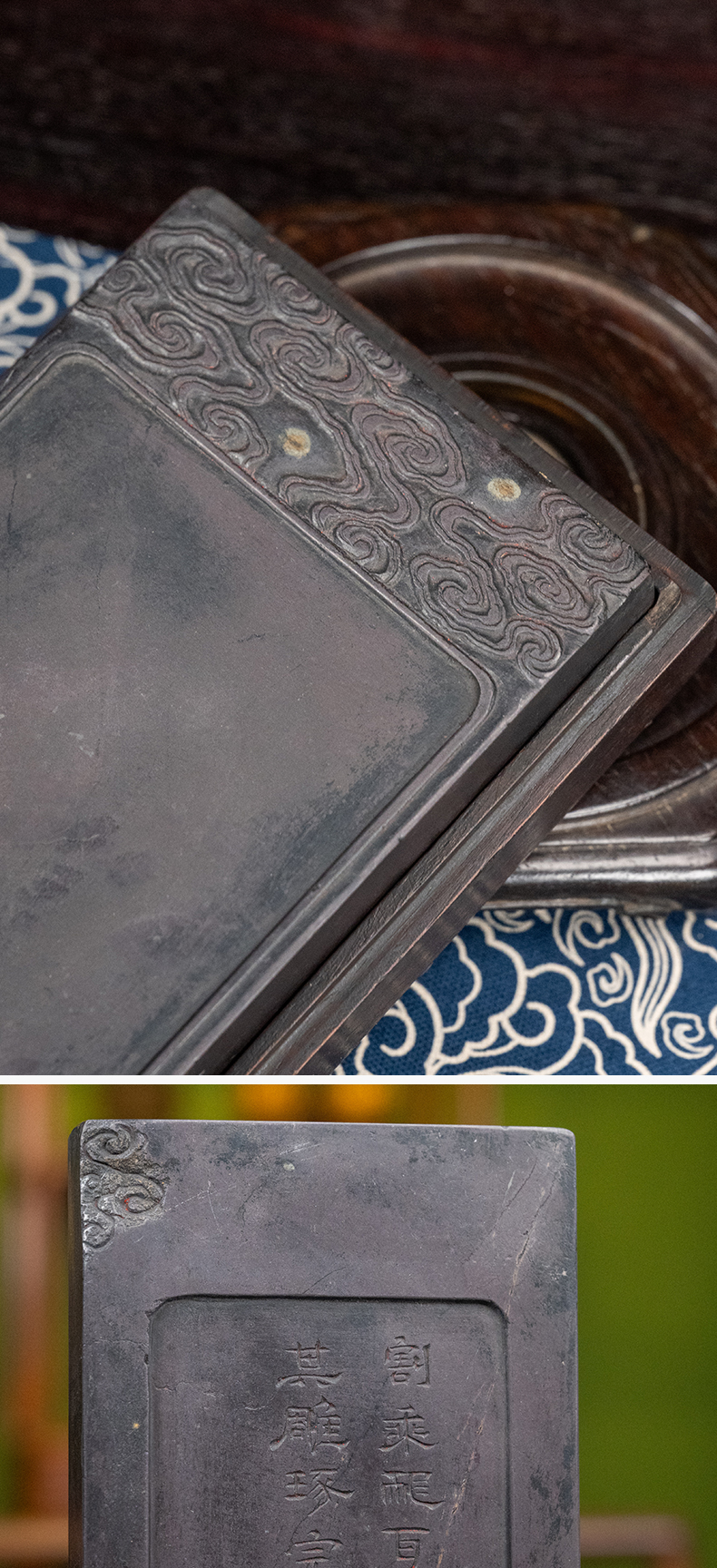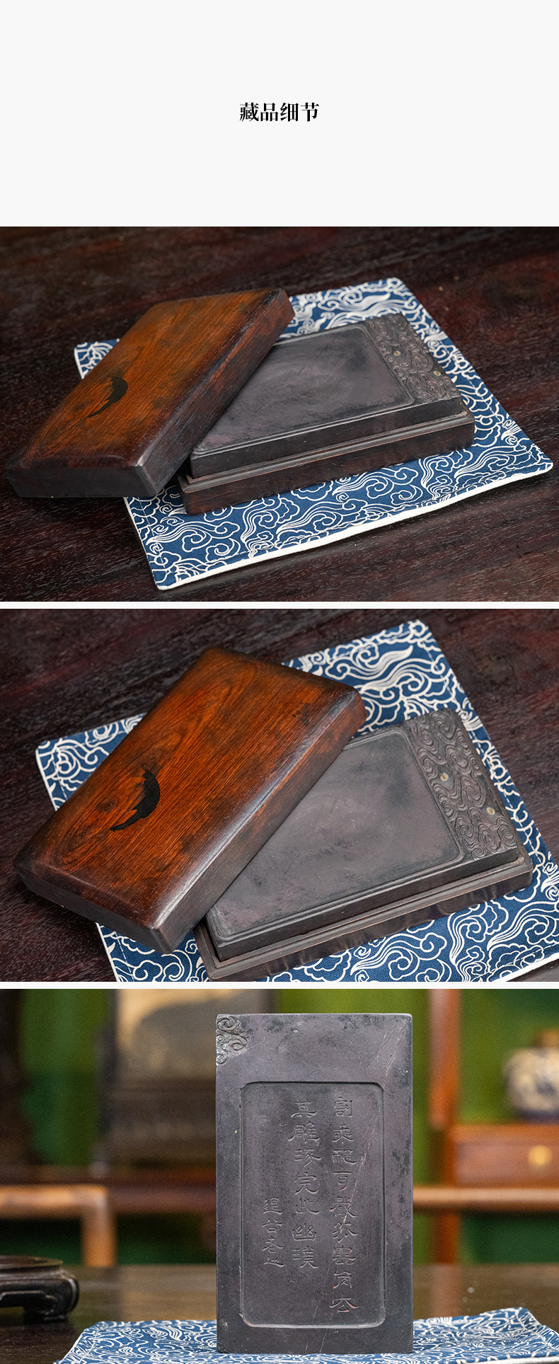 清 退谷老人款云纹带眼敞池端砚(红木砚盒)