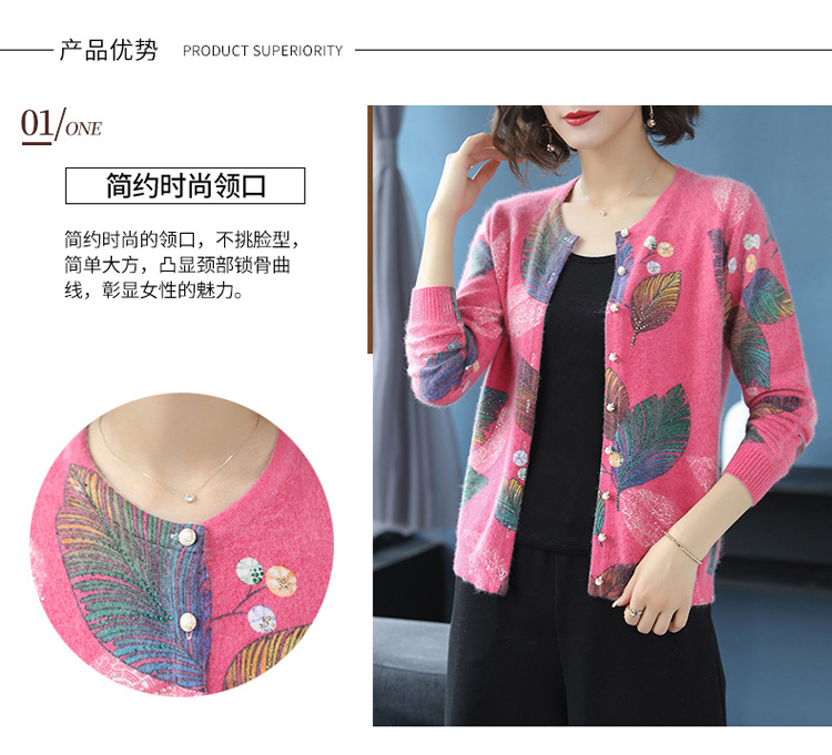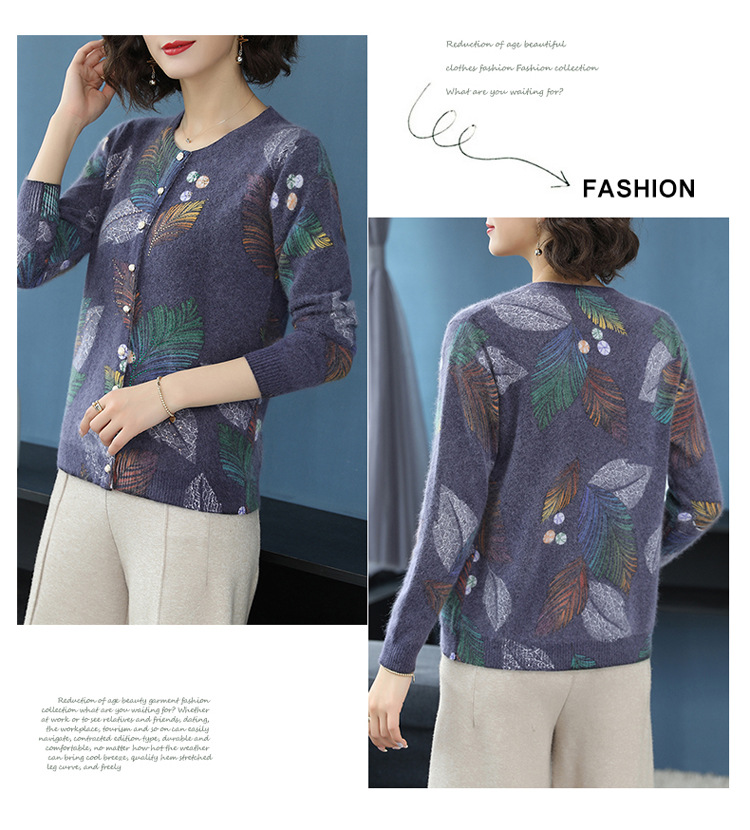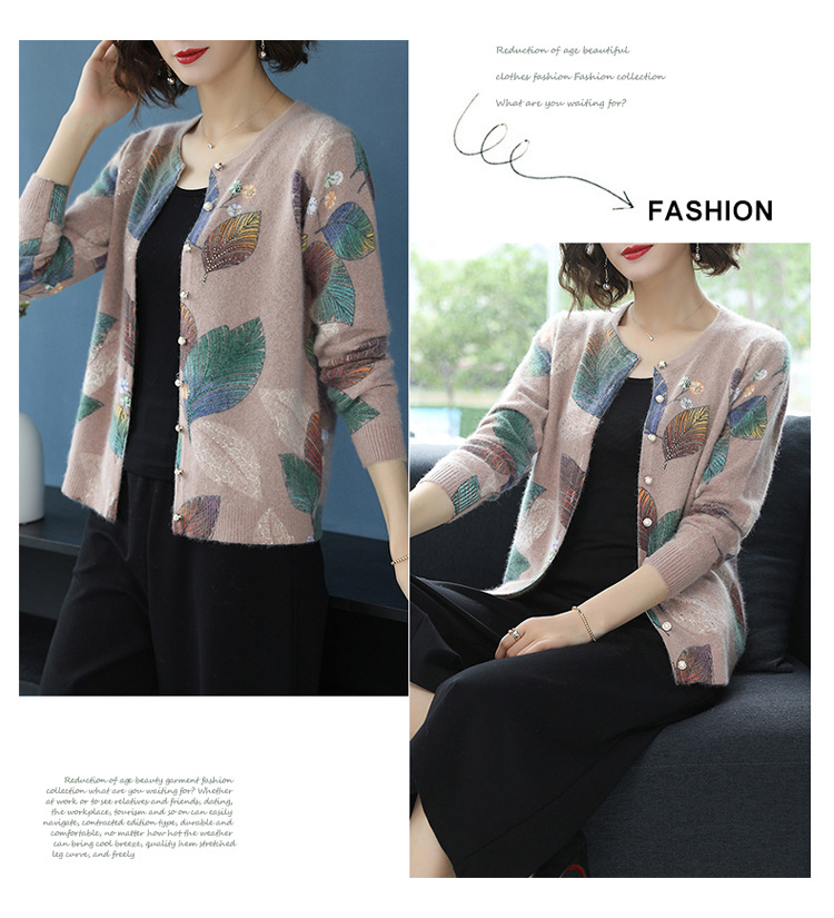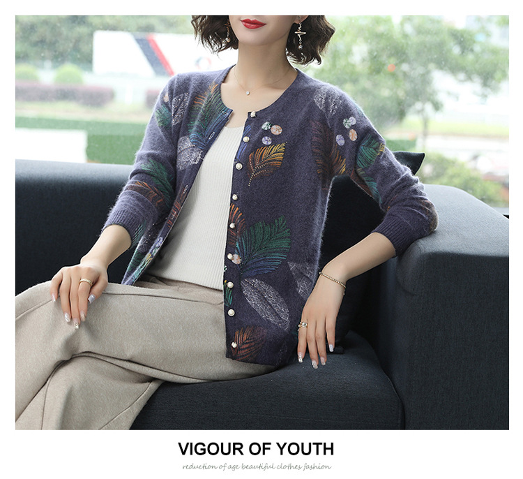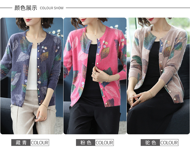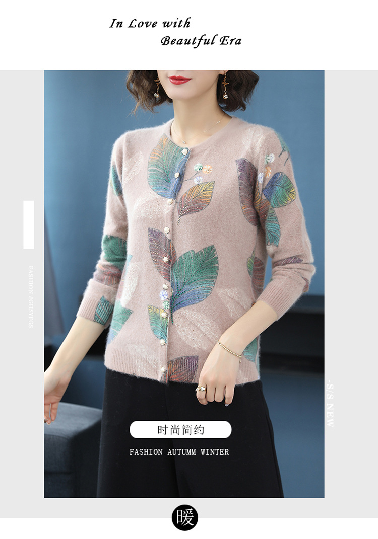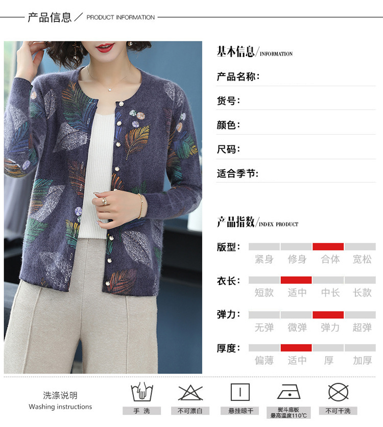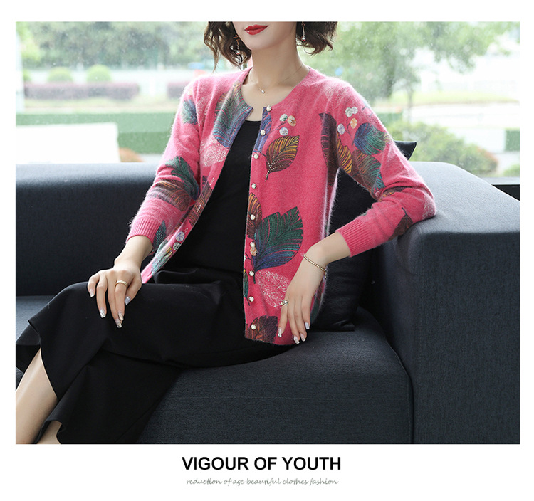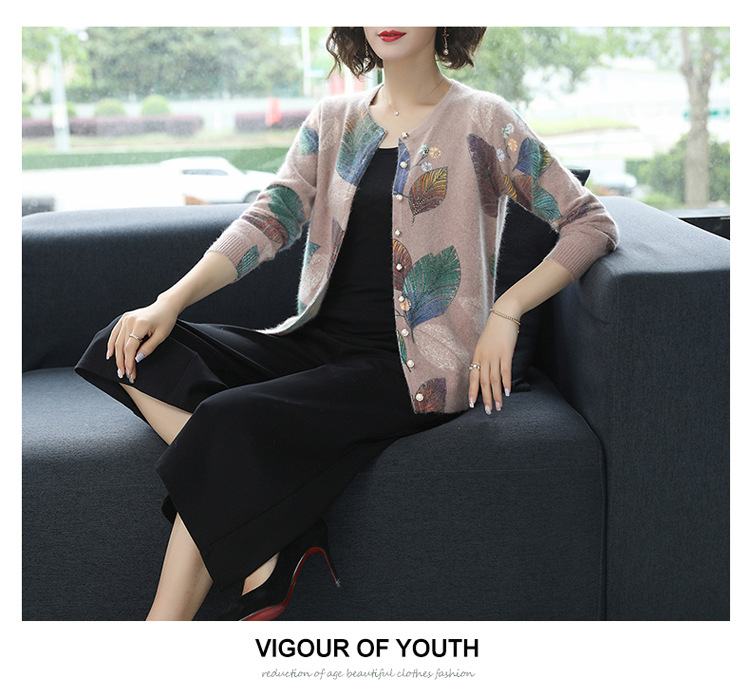 FCY-SJ4201秋季新款宽松大码印花针织开衫