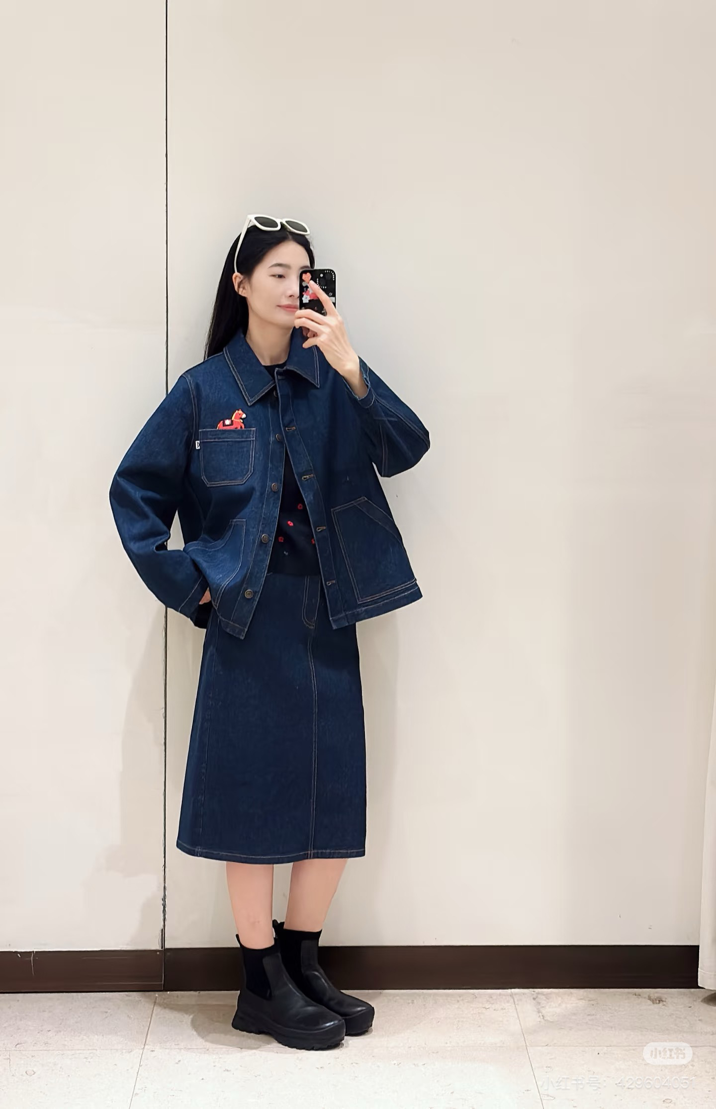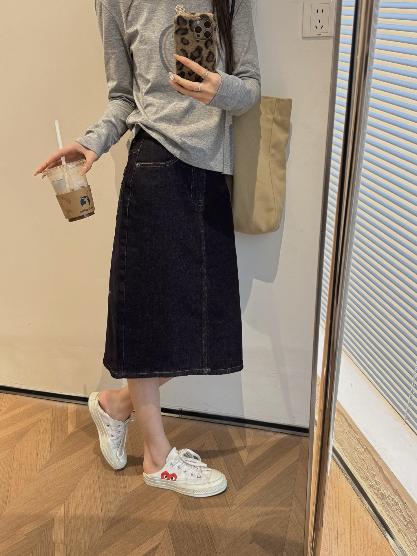 春夏秋三季皆可穿的牛仔半裙,实穿度很广!