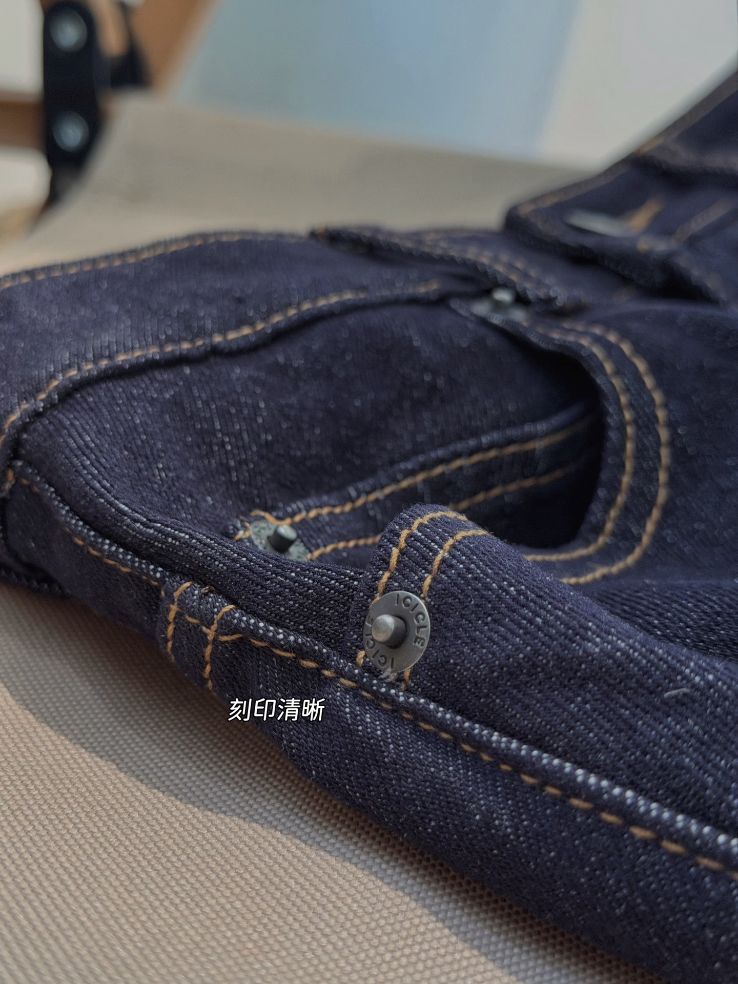 门襟五金扣➕ykk拉链闭合,五金辅料全部是原的 logo钢印清晰,包括口袋边缘的铆钉也全部带有刻字,做旧的质地彰显品质。