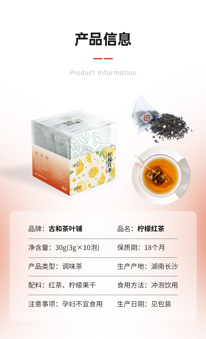 【200积分+18元】古和柠檬红茶/蜜桃乌龙/茉莉绿茶/桂花乌龙 30g(3g*10包)/盒