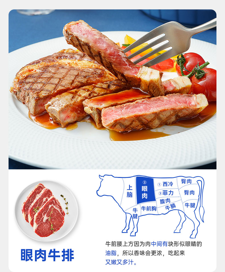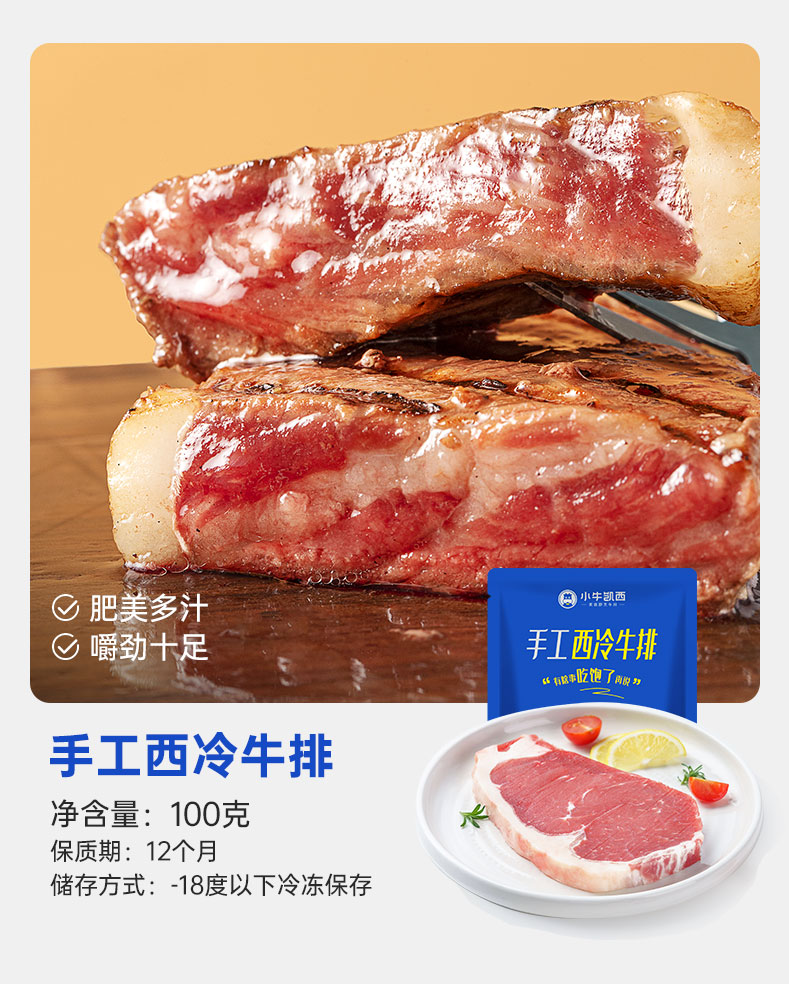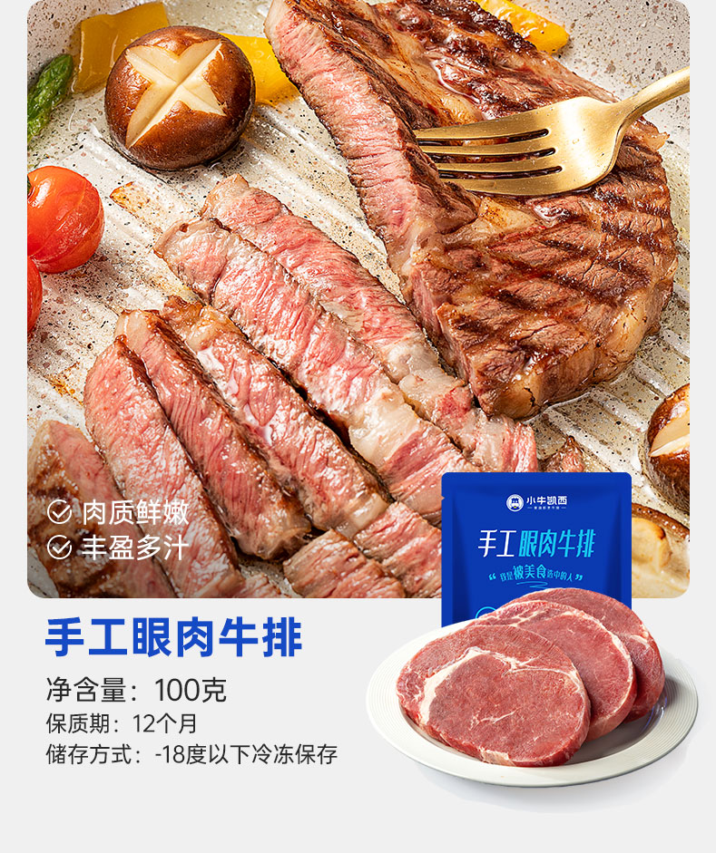 【小牛凯西】 手工西冷牛排(100g)*5眼肉牛排(100g)*5赠黑椒酱*10+刀叉