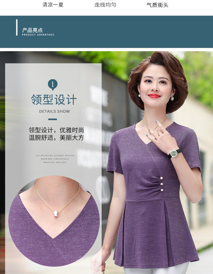 GS-4456新款妈妈夏装短袖圆领洋气时尚小衫