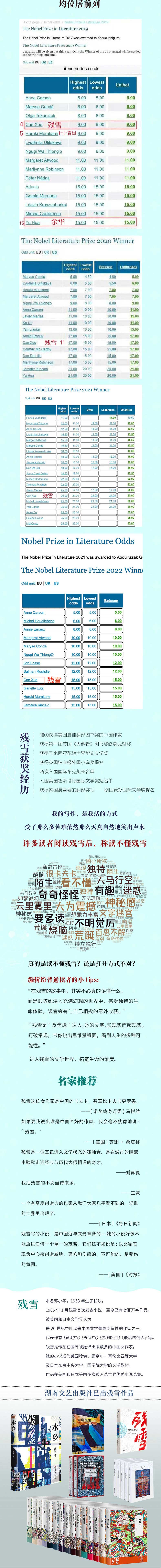 残雪的小说是一个包罗万象的文字迷宫,在这个辽阔的边疆,读者可以感受到残雪精神世界的辽阔和深远。