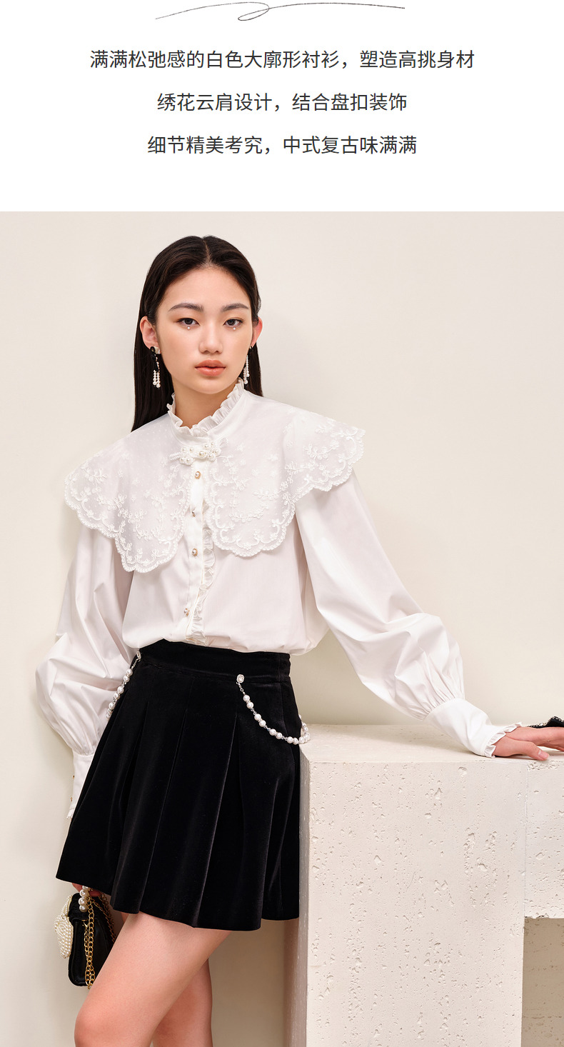 MAXRIENY中式复古宫廷风廓形衬衫秋装小众衬衣(货号:MS88TP539)