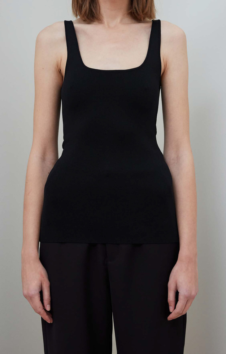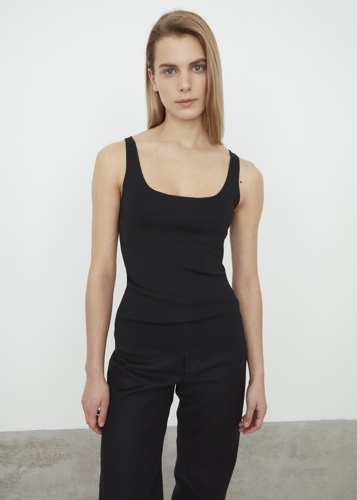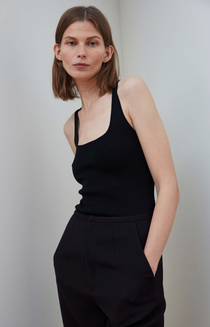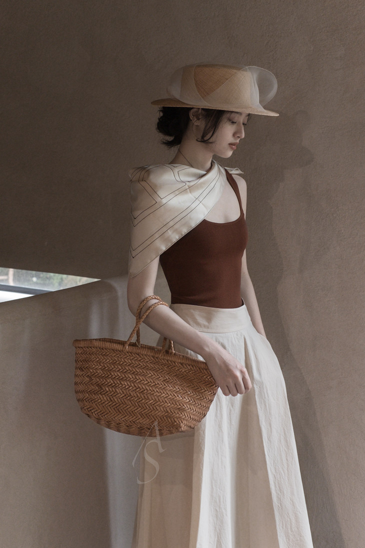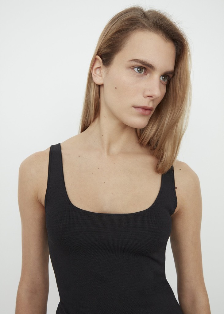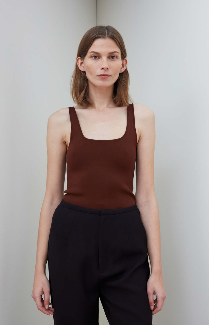 领部前后的U形线条修饰颈部线条,腰部细微的收束更加凸显身线之美,衣身细密的编织肌理带来简洁的精致感。现有黑色、深棕色、白色可选。