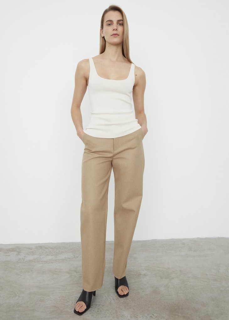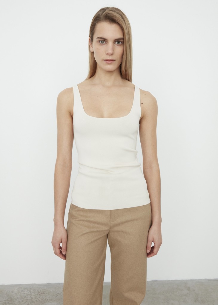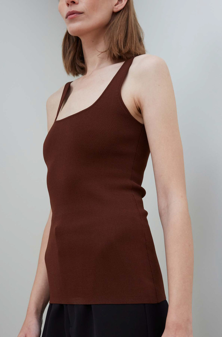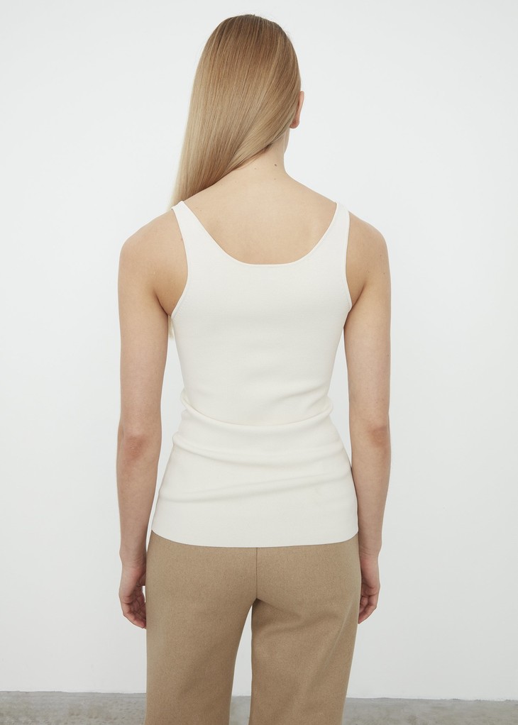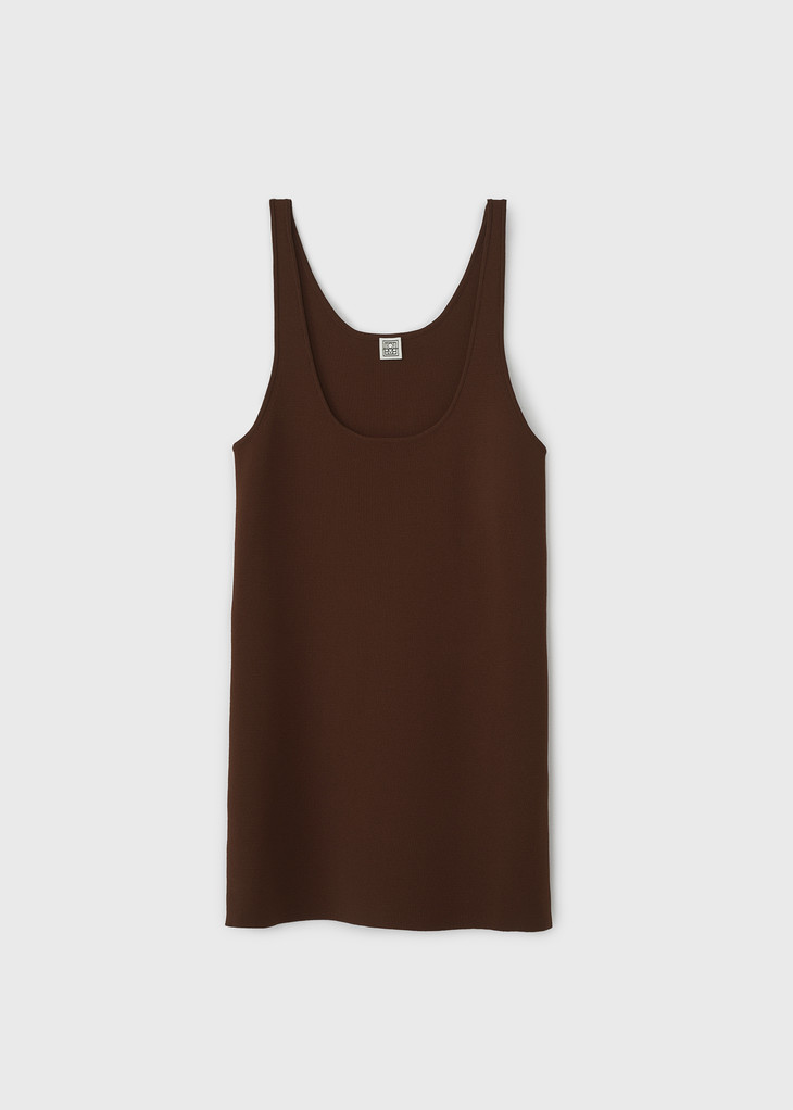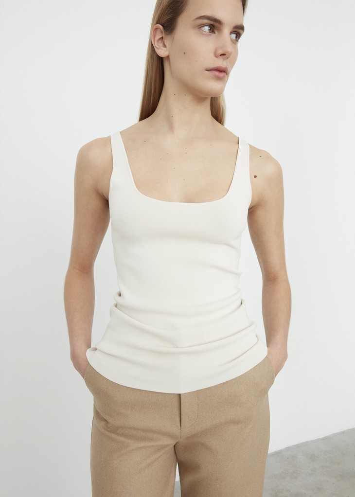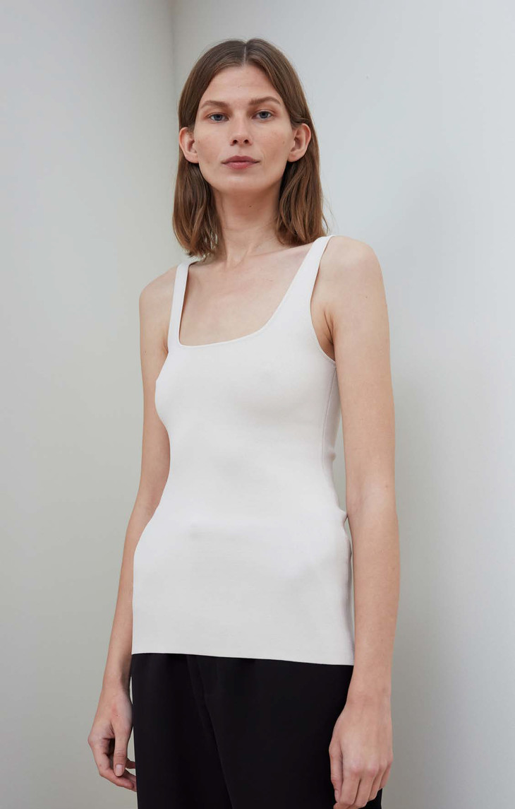 领部前后的U形线条修饰颈部线条,腰部细微的收束更加凸显身线之美,衣身细密的编织肌理带来简洁的精致感。现有黑色、深棕色、白色可选。