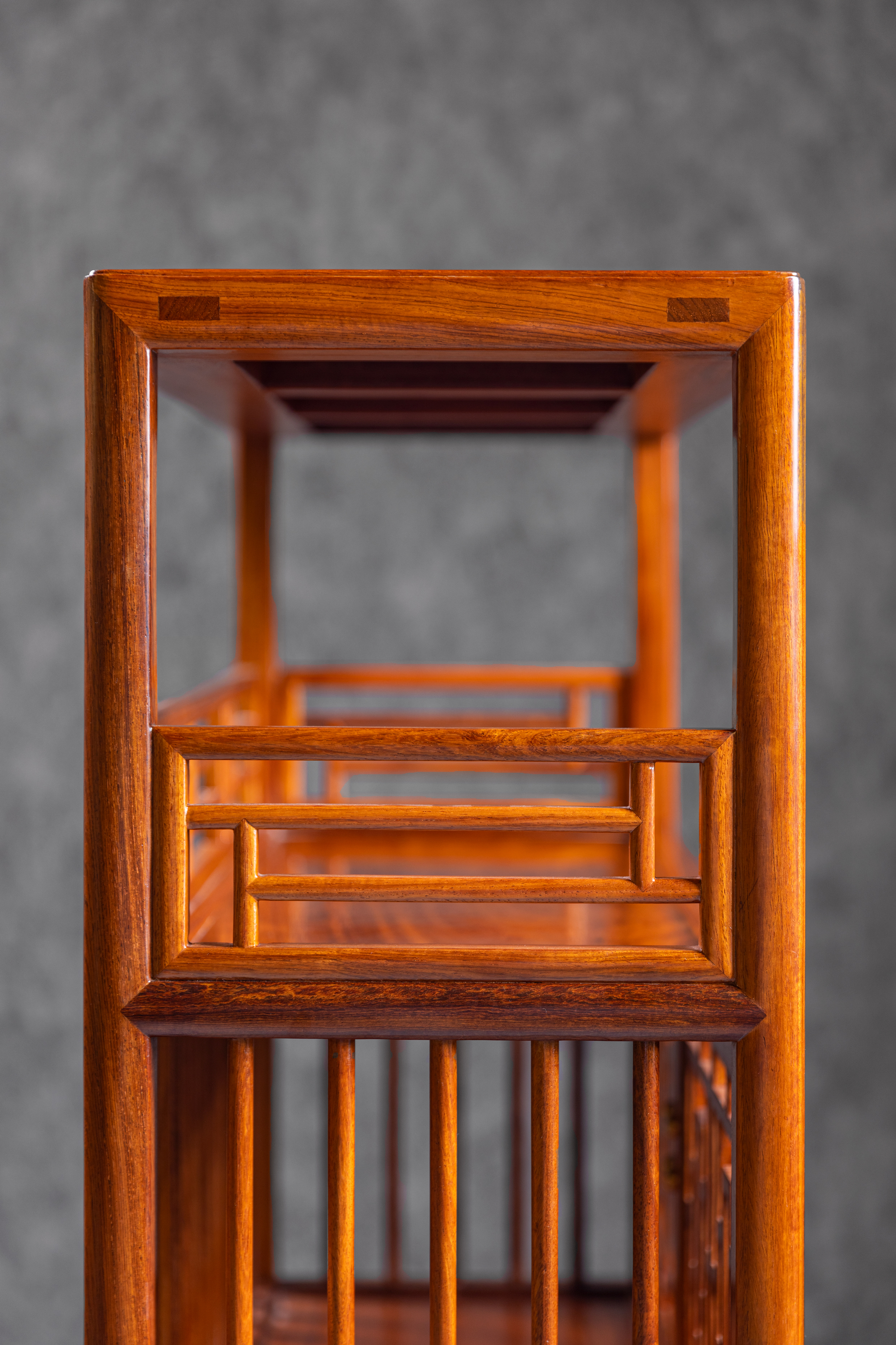 上下两层栏杆用横竖材组成,是品字栏杆的变体,可参见上海博物馆的一对品字栏杆架格。