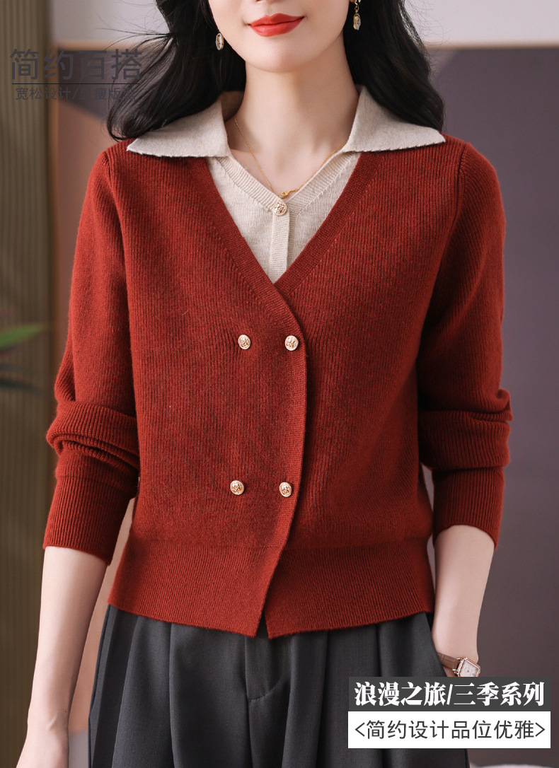 CC-102-1708红色洋气假两件毛衣女秋冬新款宽松显瘦针织衫打底上衣