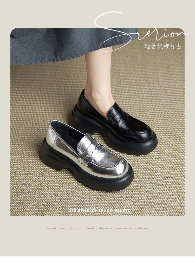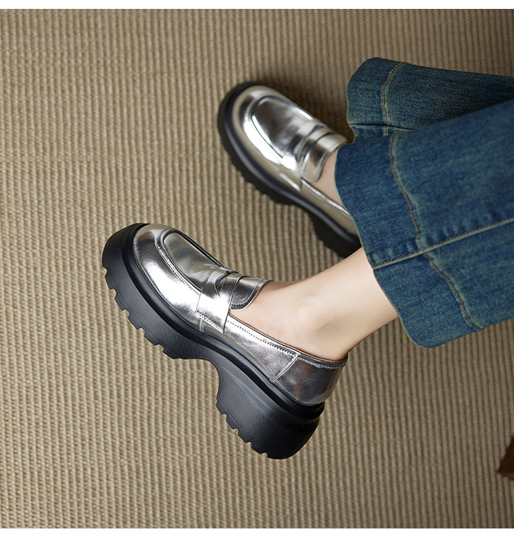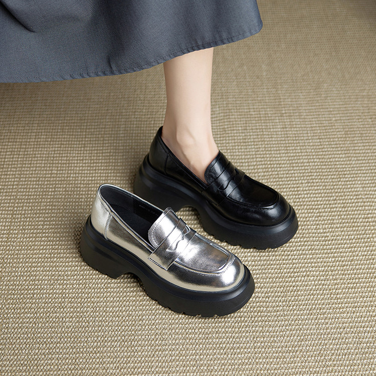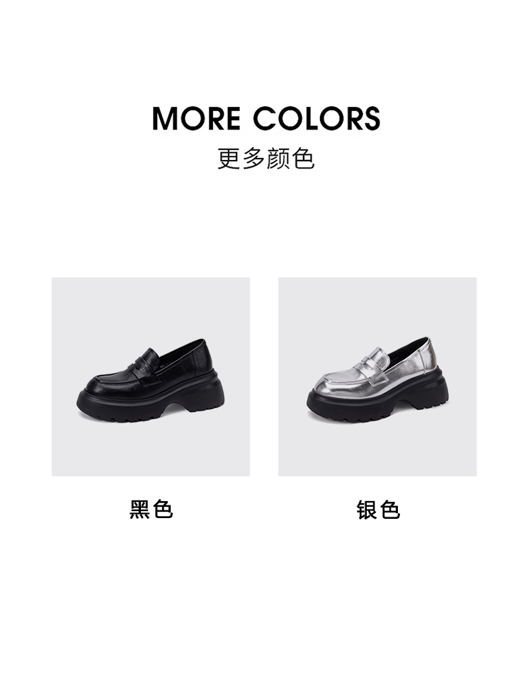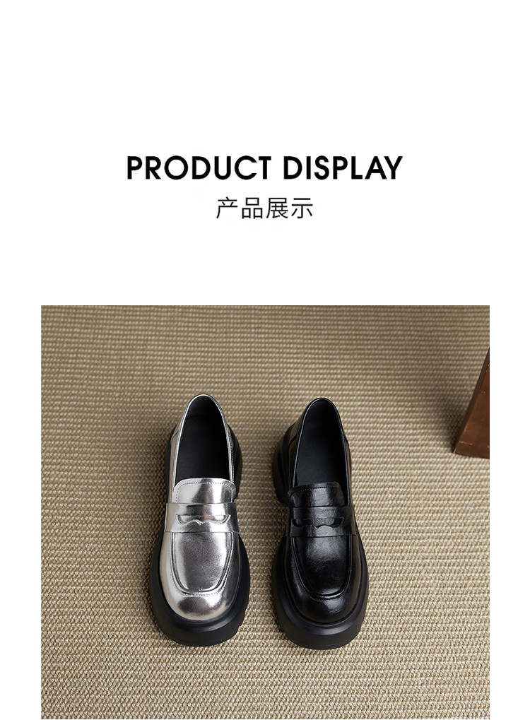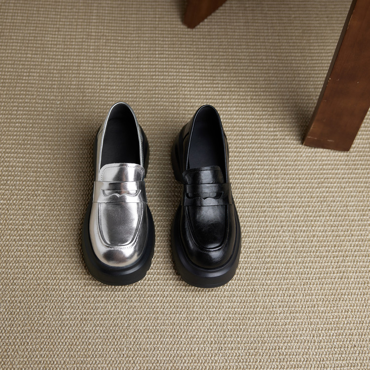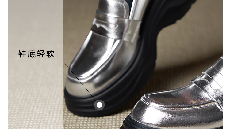 【预售5天】简约风圆头超轻厚底深口一脚蹬单鞋女新款秋季黑色银色小皮鞋YX&S008