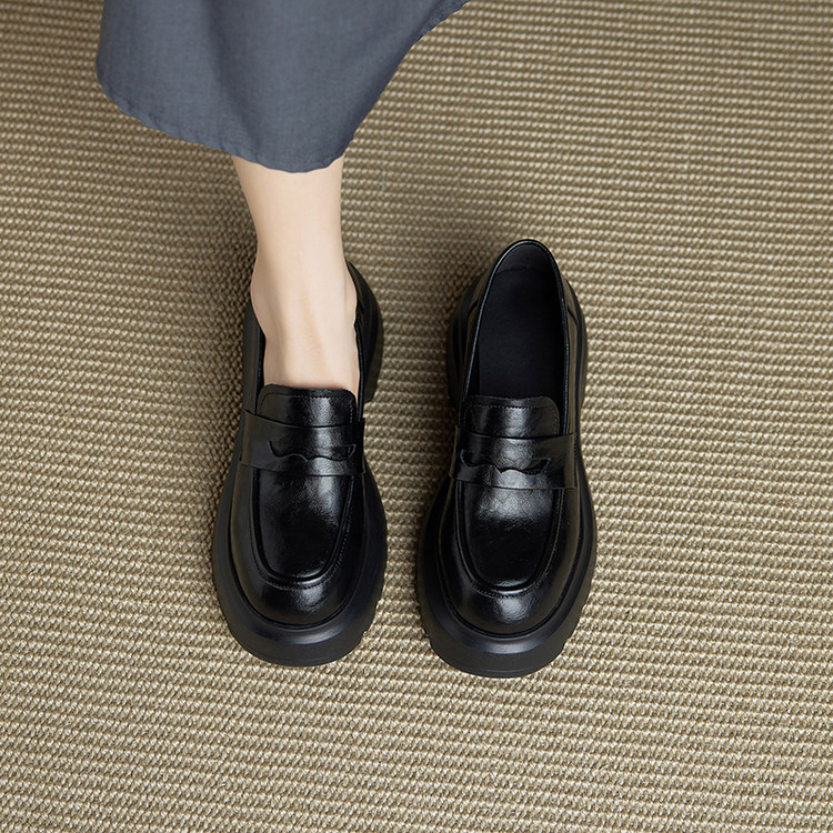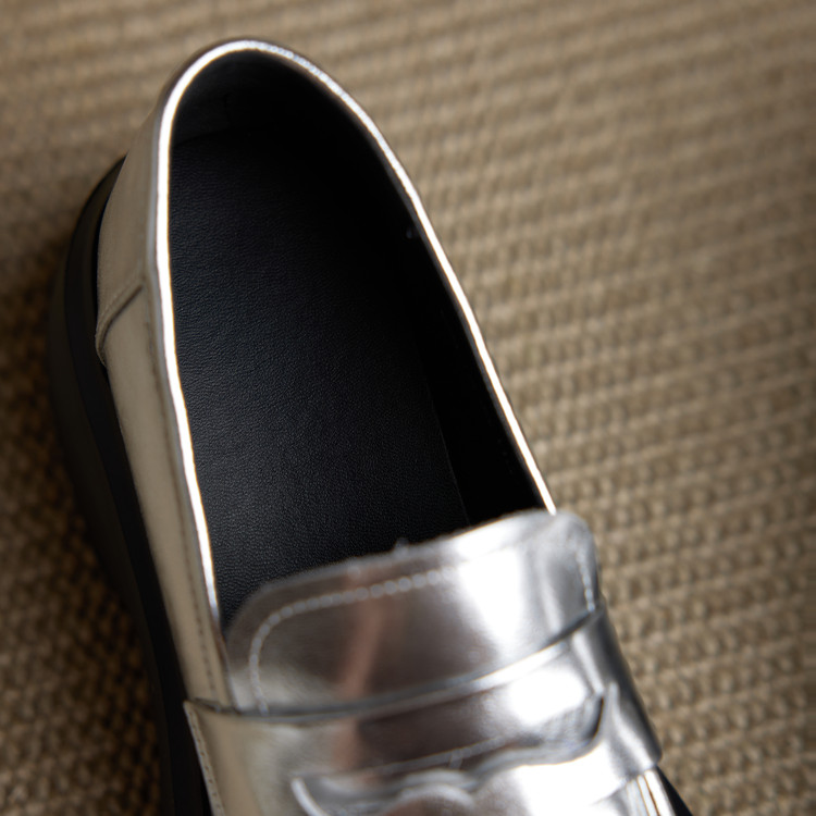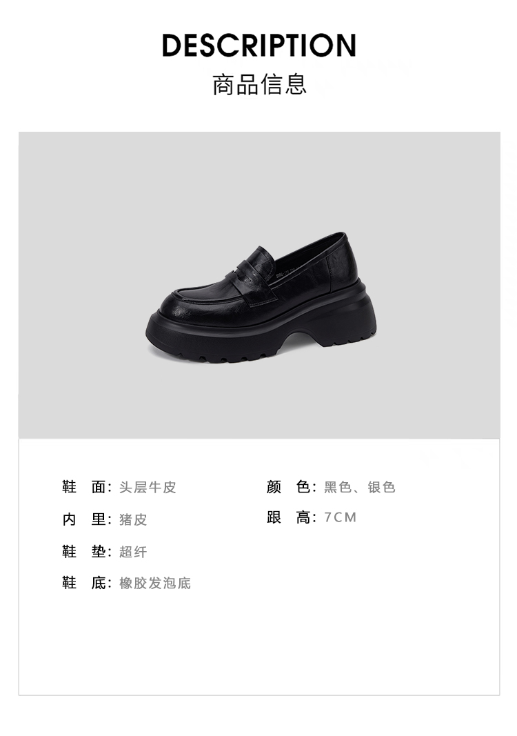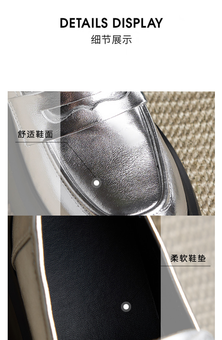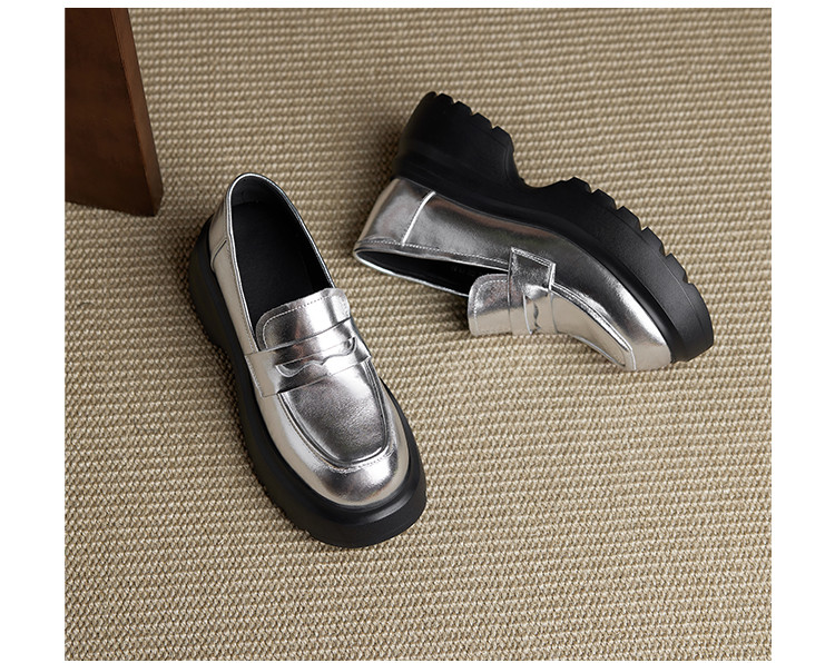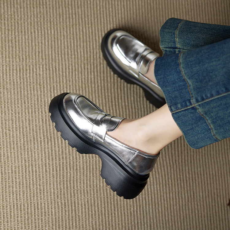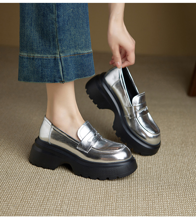 【预售5天】简约风圆头超轻厚底深口一脚蹬单鞋女新款秋季黑色银色小皮鞋YX&S008