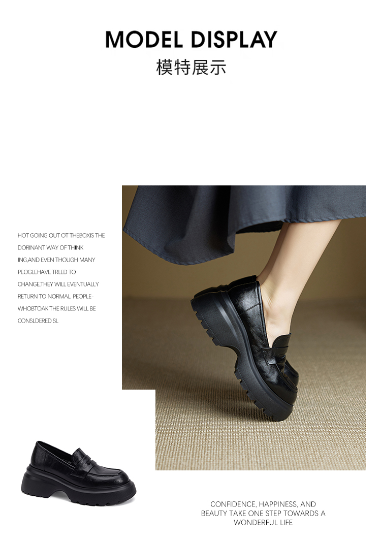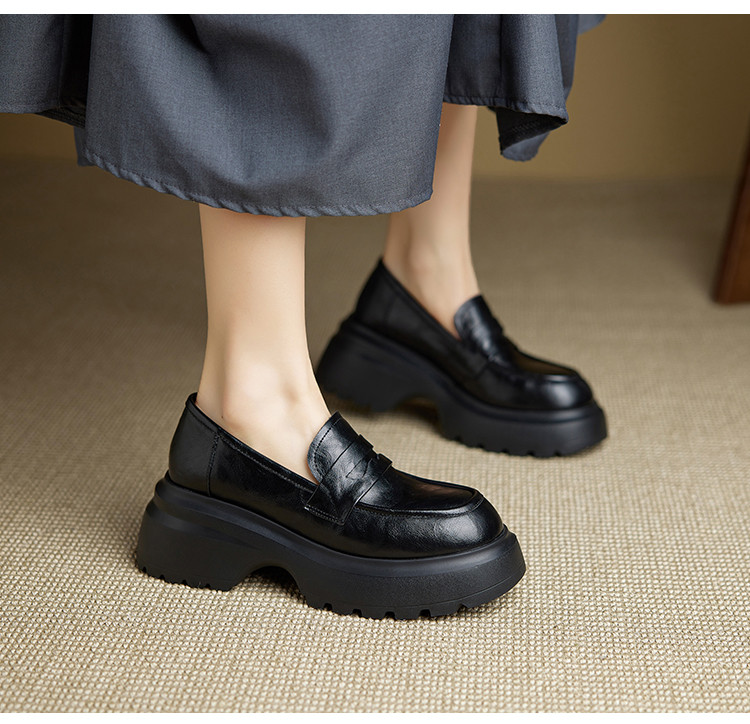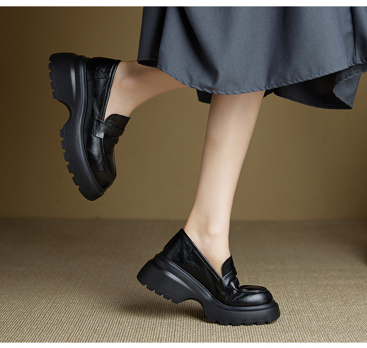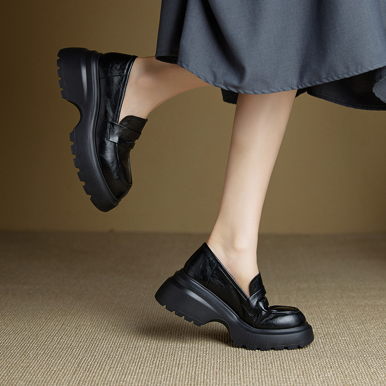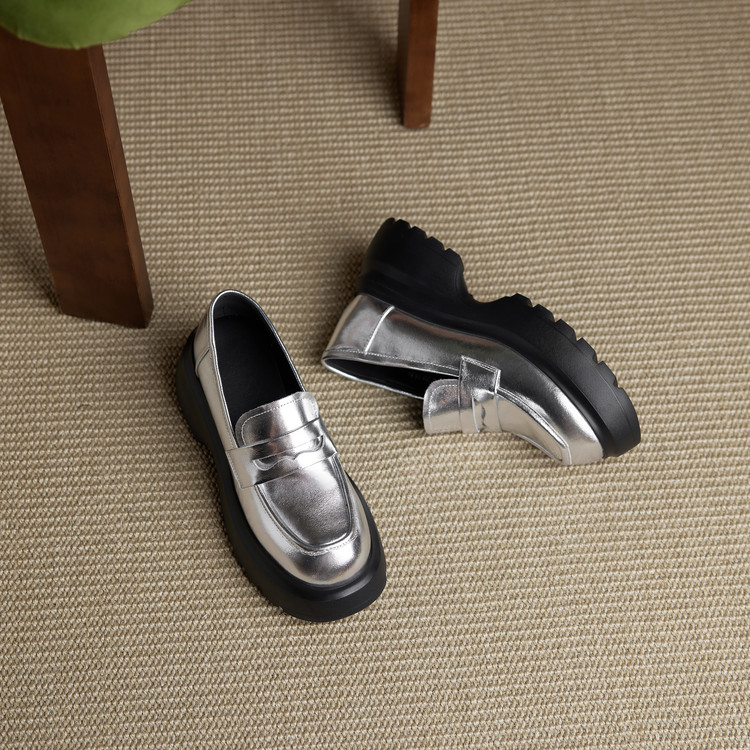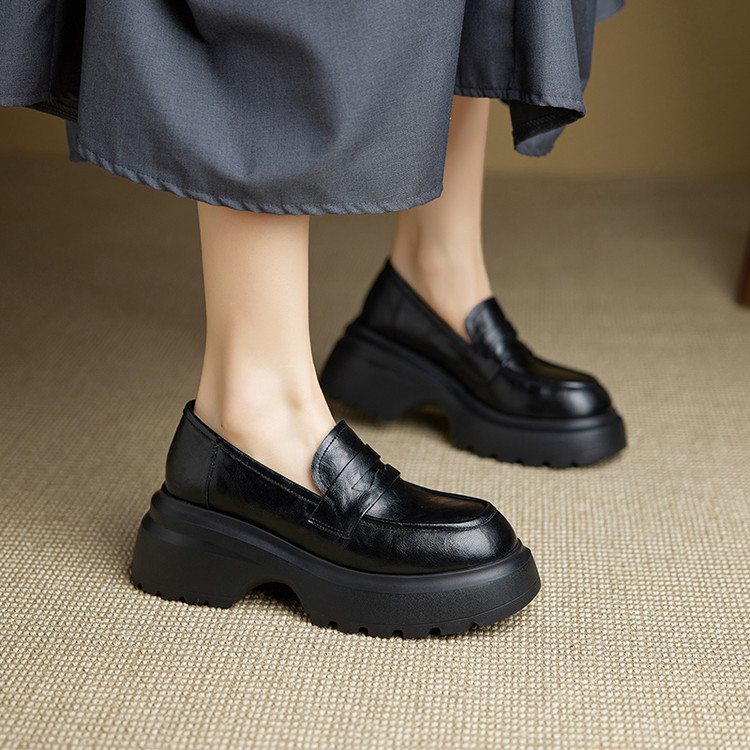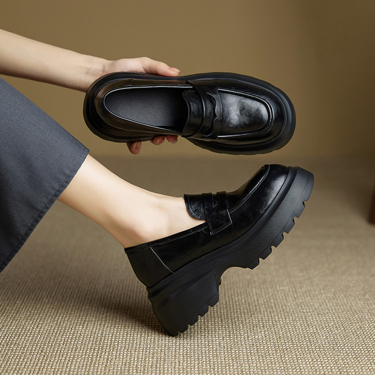 【预售5天】简约风圆头超轻厚底深口一脚蹬单鞋女新款秋季黑色银色小皮鞋YX&S008