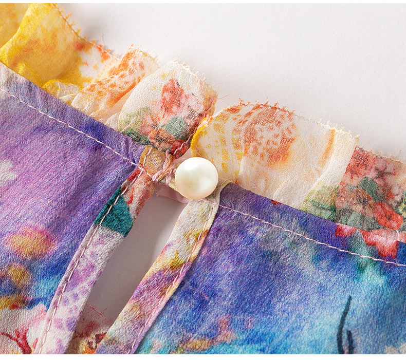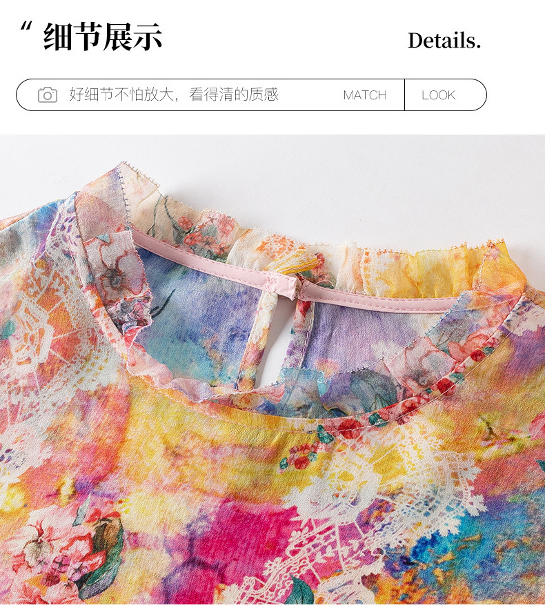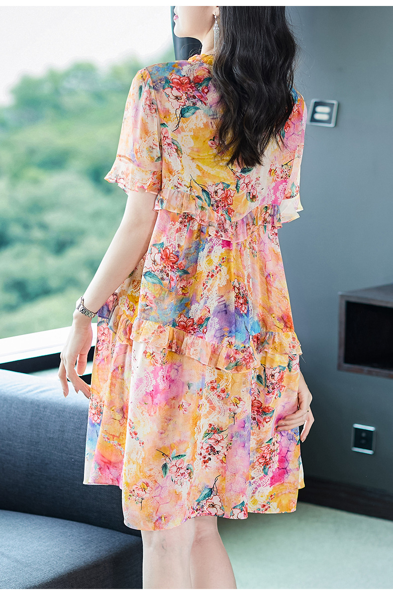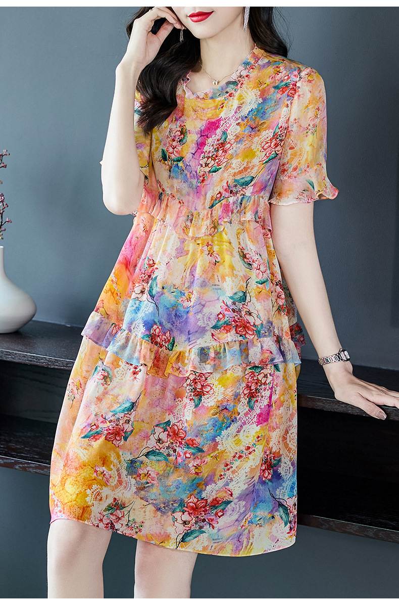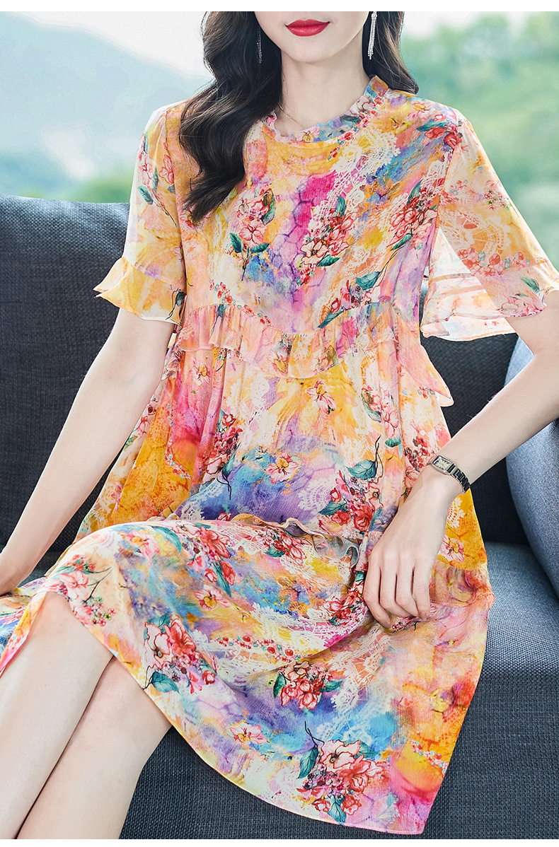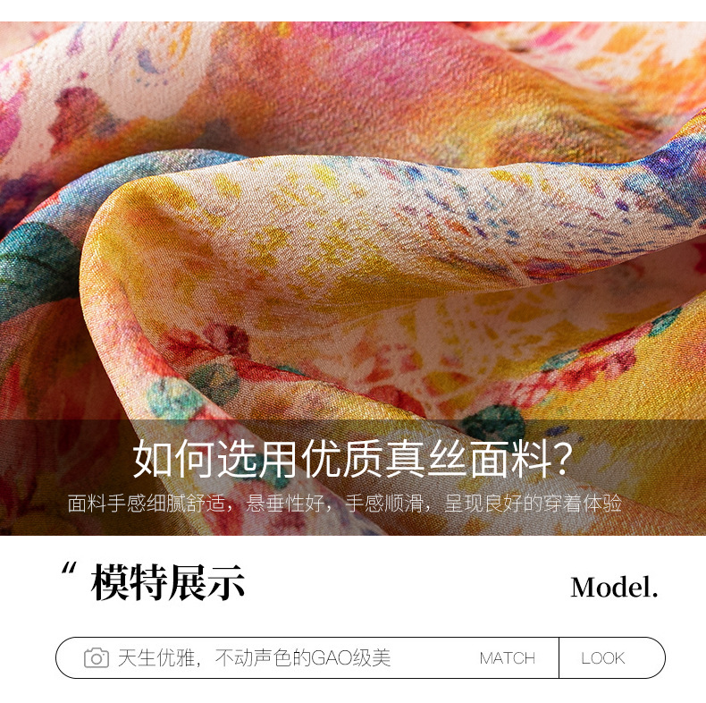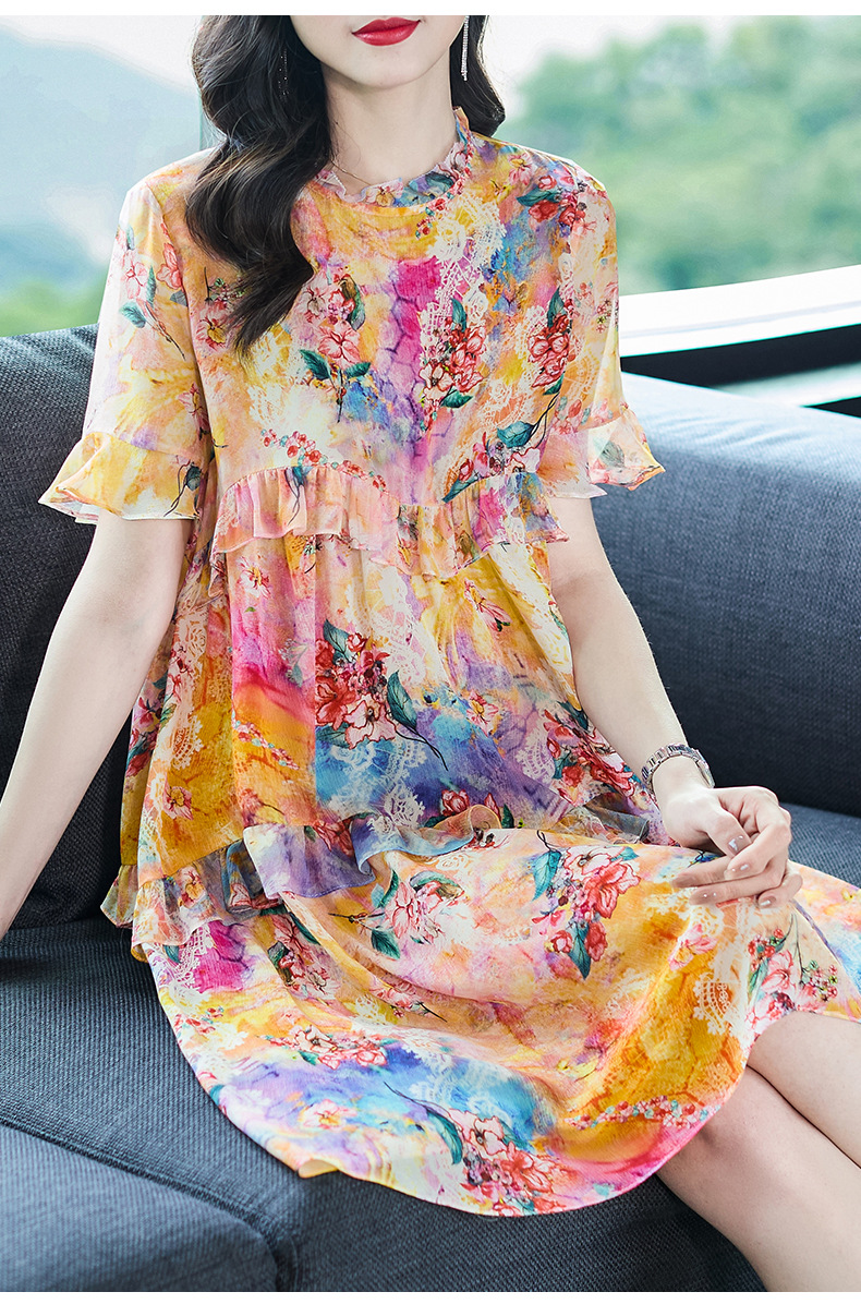 丁摩 雨后彩虹夏装新款真丝连衣裙小个子宽松遮肉显瘦桑蚕丝A字裙5ZF-69358
