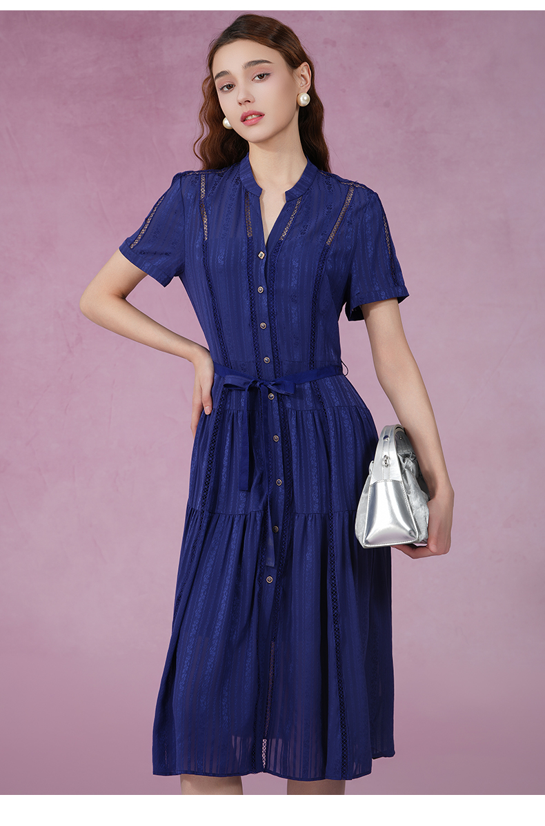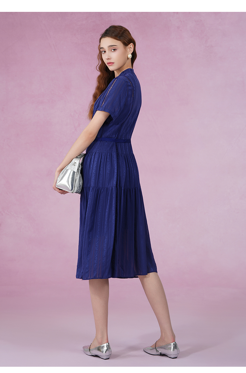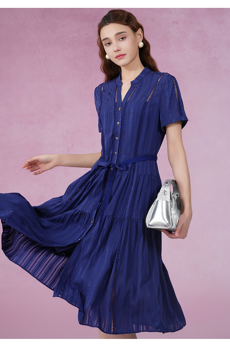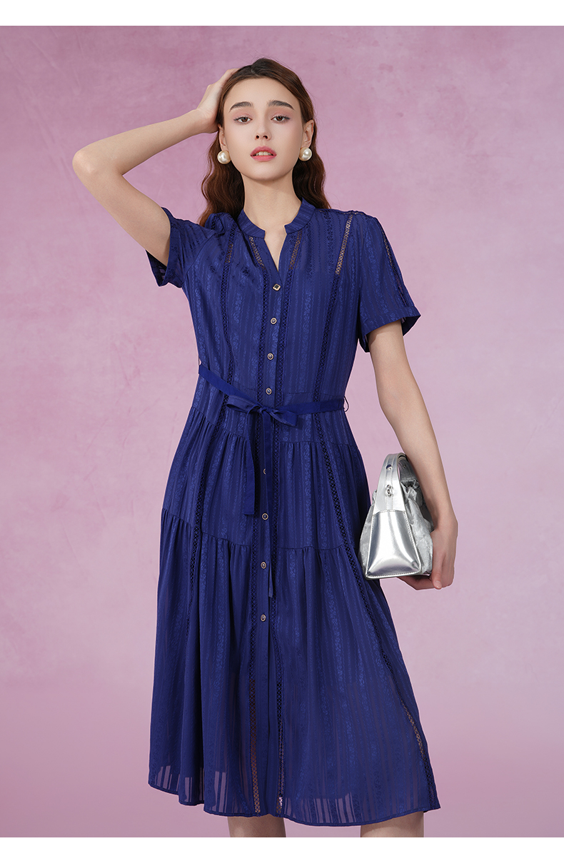 乔万尼真丝连衣裙16.5mm提花桑蚕丝收腰显瘦气质职场短袖ET2E319