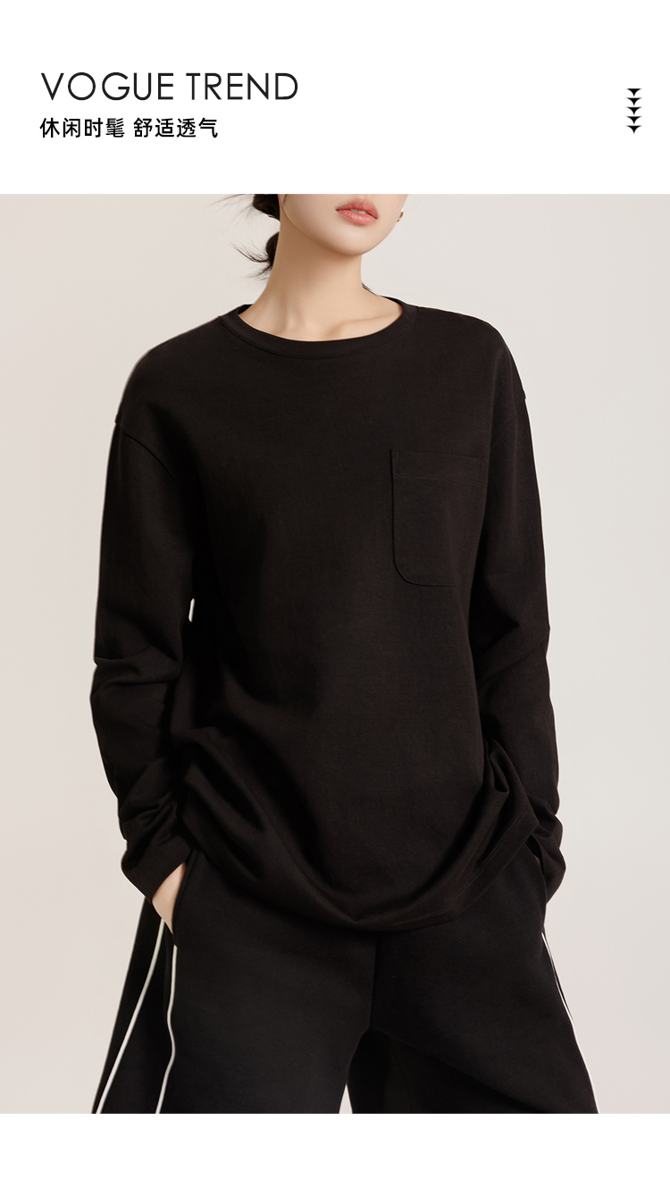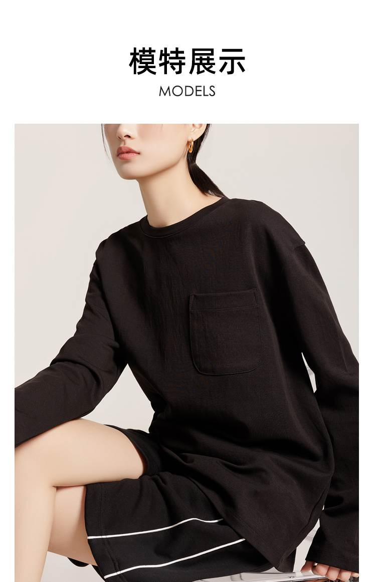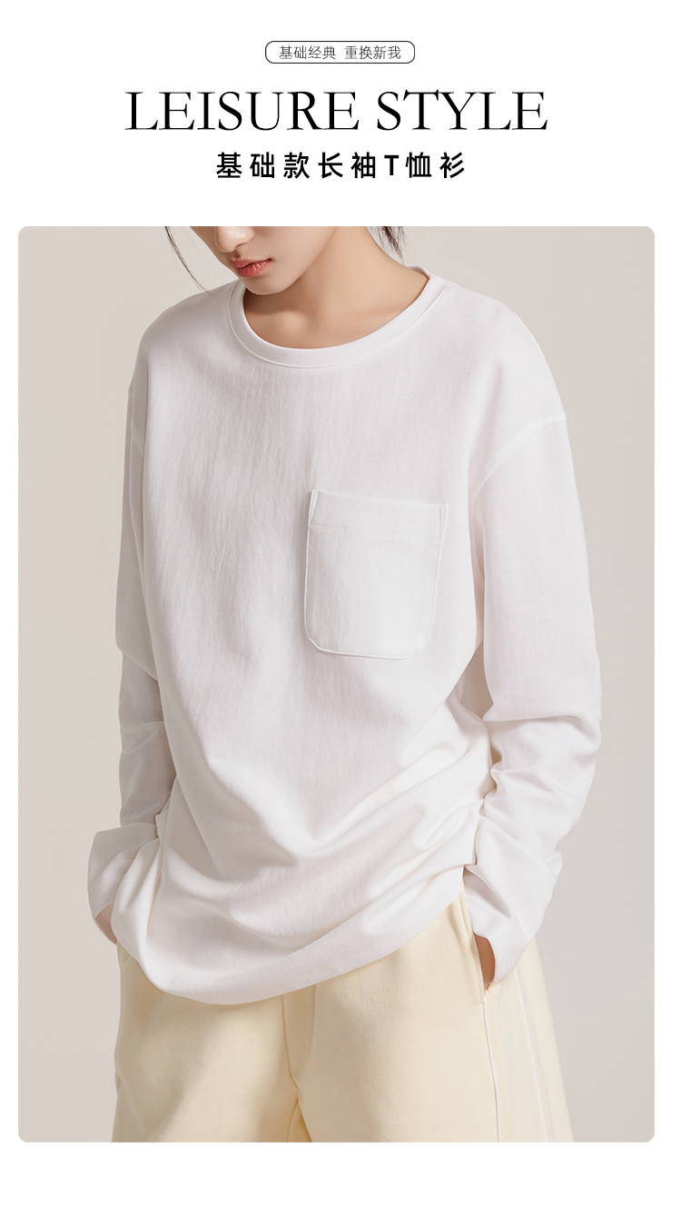 weyo女基础款长袖T恤衫纯色圆领上衣880006 商品图2