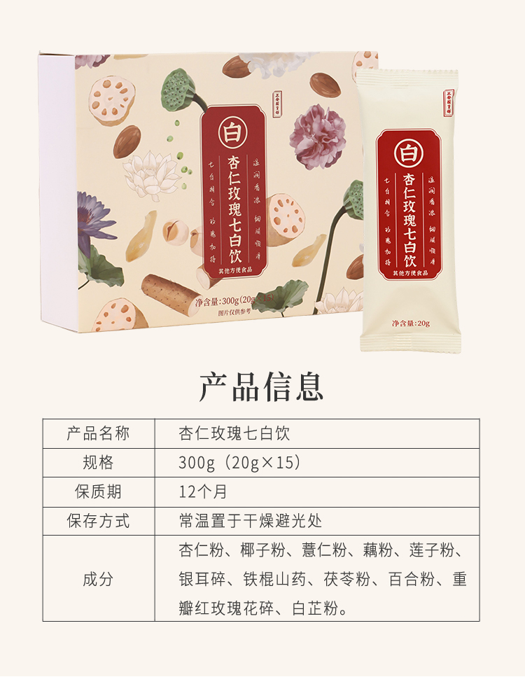 正安国货·杏仁玫瑰七白饮 300g(20g*15)/盒