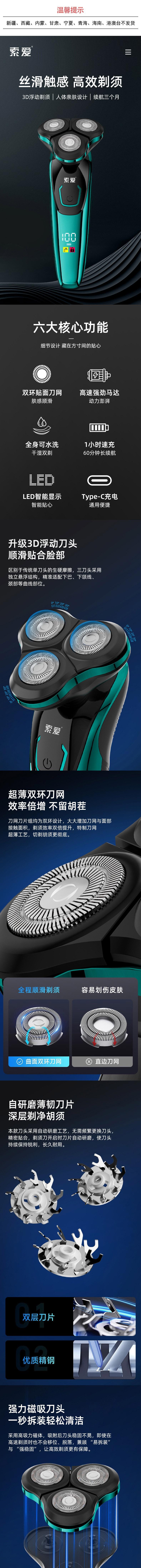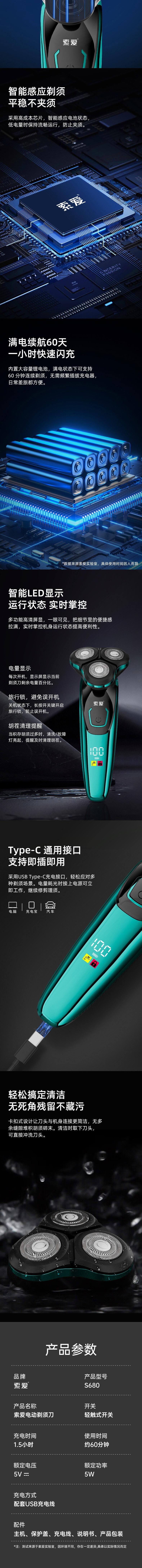索爱 三刀头电动剃须刀【标配】礼盒5W S680