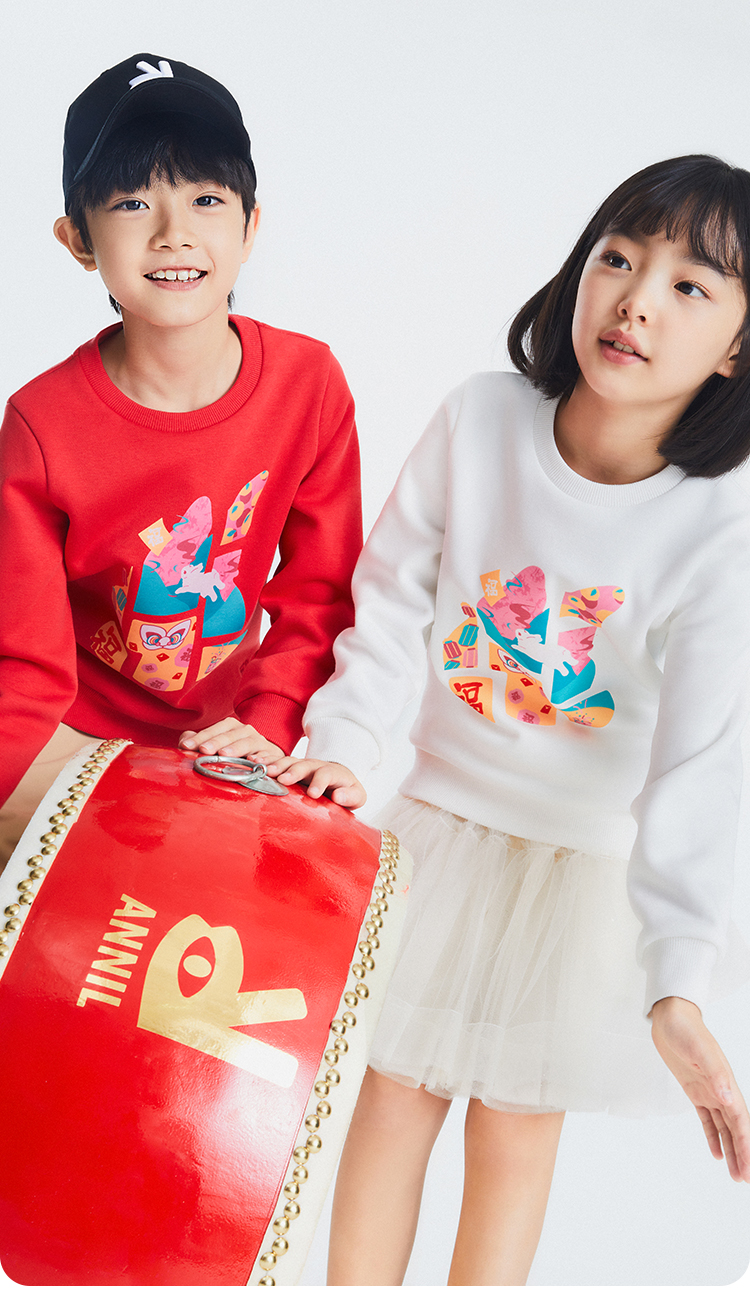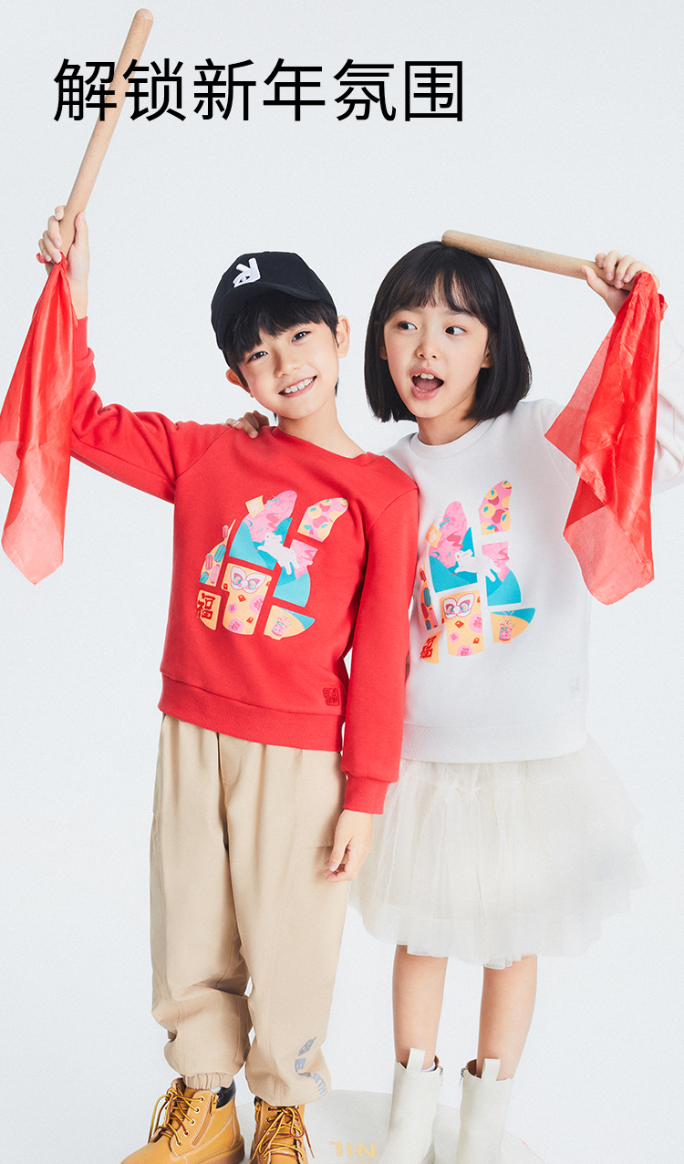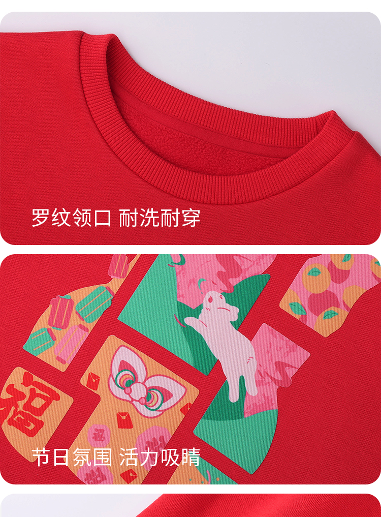 【新年红】男女童卫衣秋新款黑科技蓄热儿童洋气长袖圆领上衣安奈儿童装EM311217