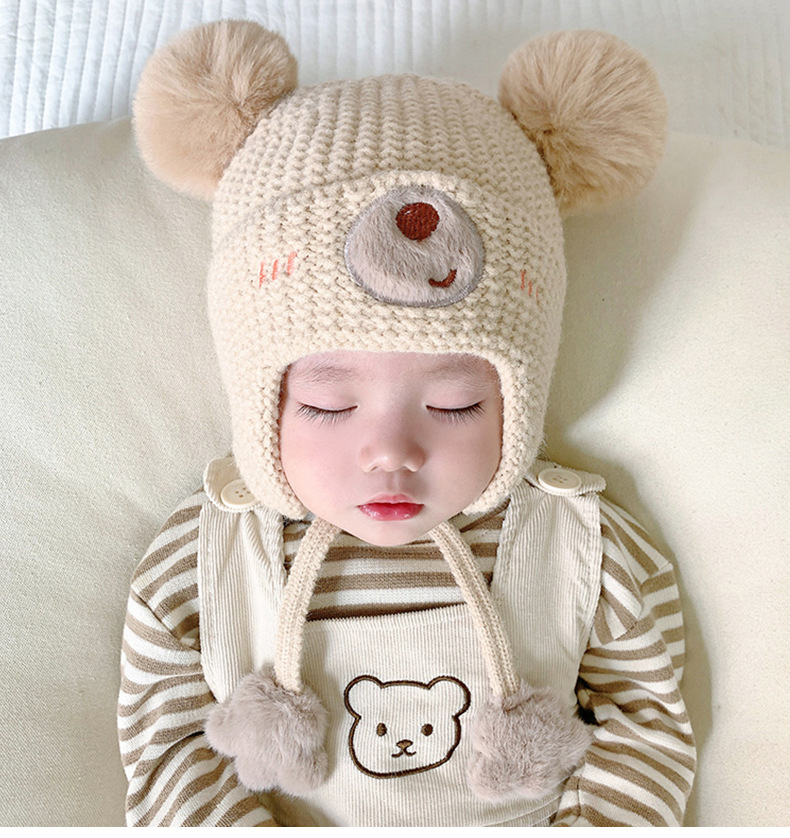 秋冬季可爱超萌宝宝帽子男女童套头毛线帽儿童加厚保暖婴儿护耳帽