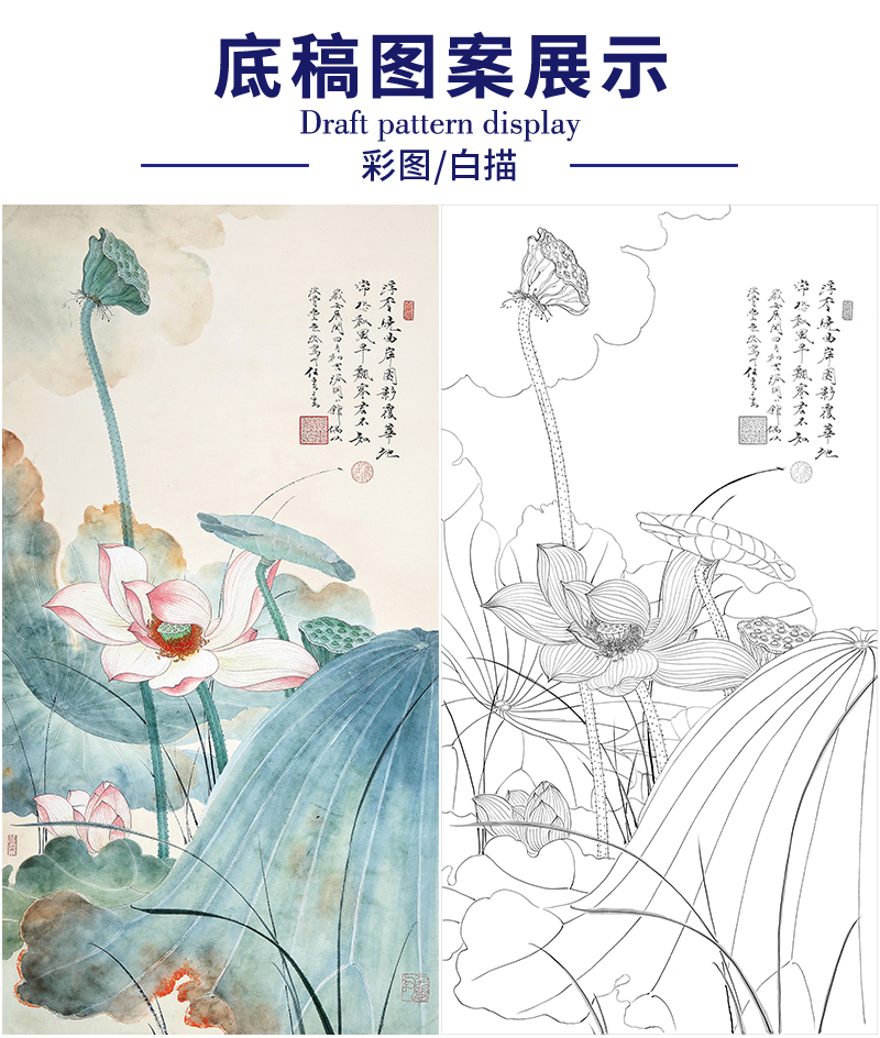 任重花鸟工笔画白描底稿《浮香绕曲岸》临摹勾线高清打印稿RD05