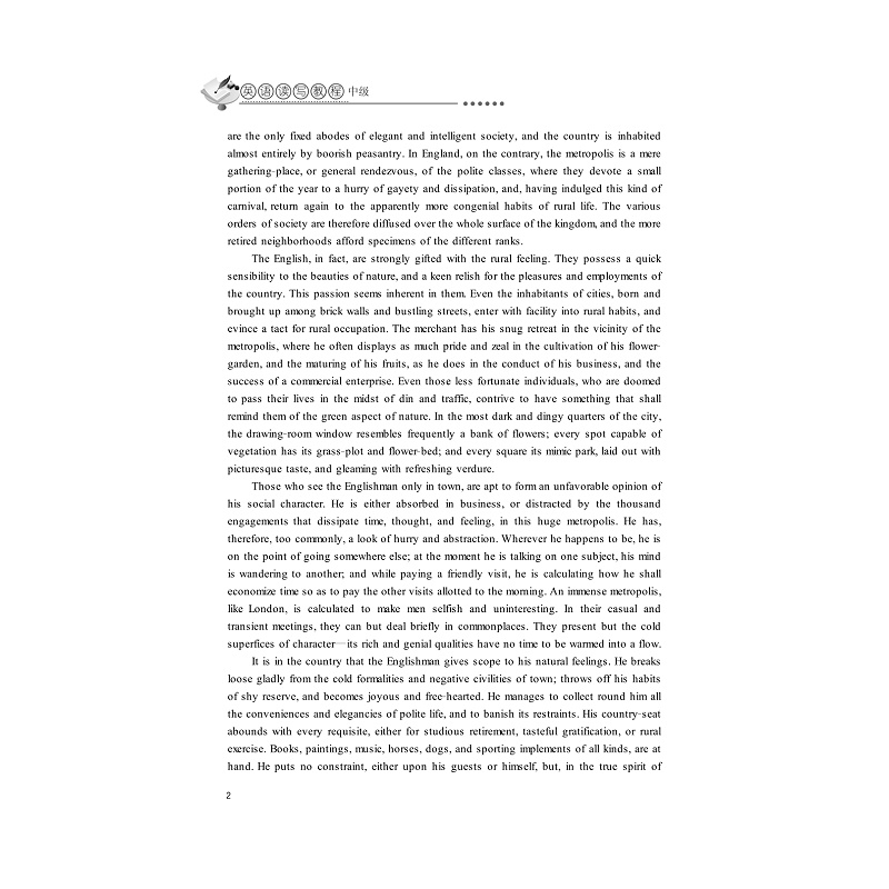 中级是这套书的第二册,编写目的在于培养和提高学生综合运用英语的能力,帮助学生从高中英语向大学专业英语学习过渡。一方面,通过全面的语言基本技能训练,培养学生语言实际运用能力,熟练掌握和正确使用英语词汇、常用句型和语法。另一方面,培养学生的思维能力,能够发表自己的意见和看法。