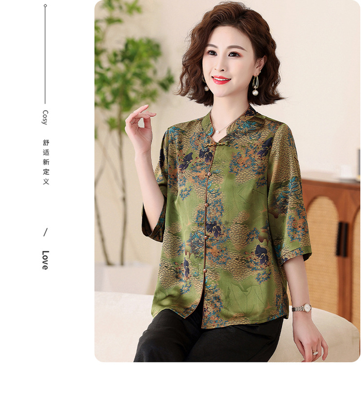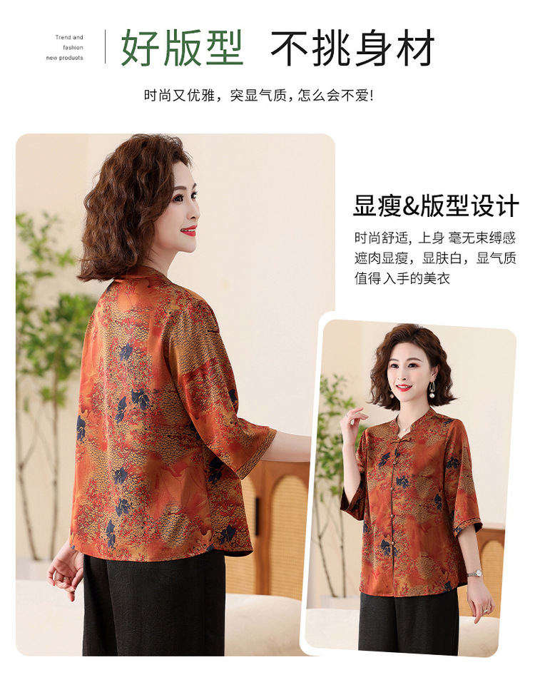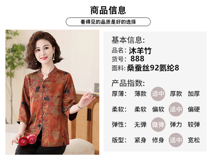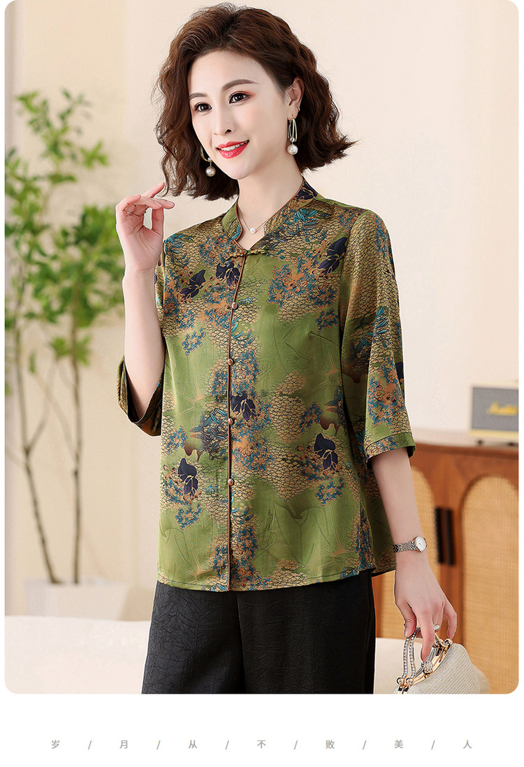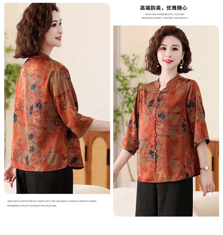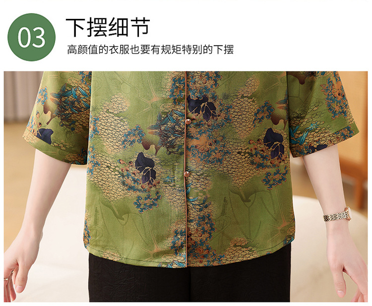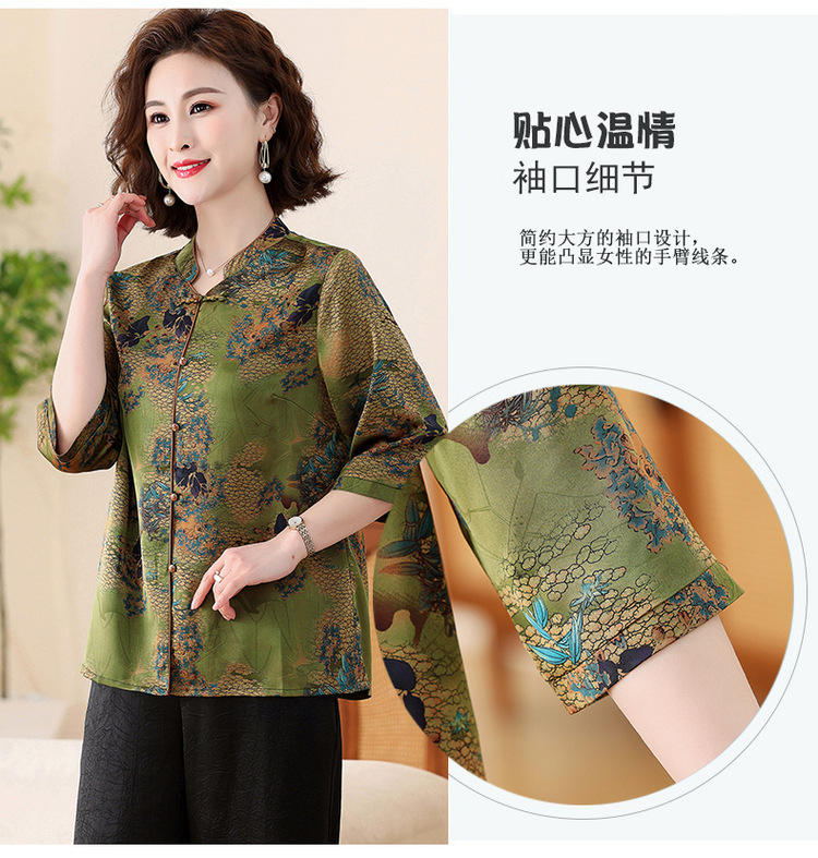 夏装新款中老年女装妈妈香云纱真丝衬衫中袖时尚老年人桑蚕丝上衣
