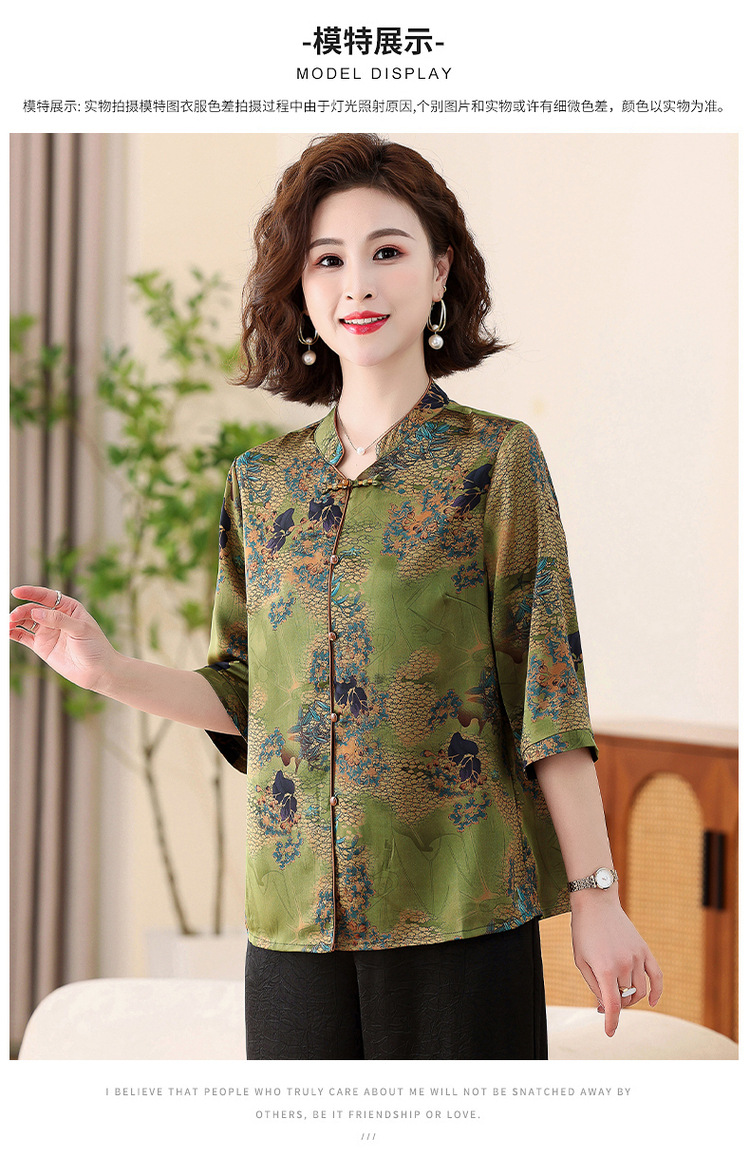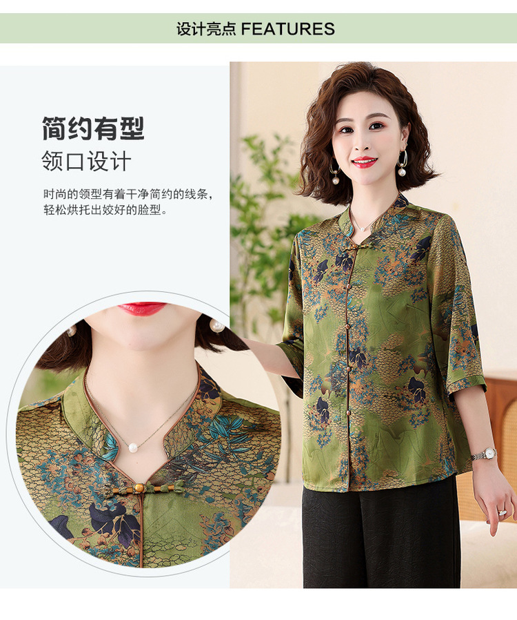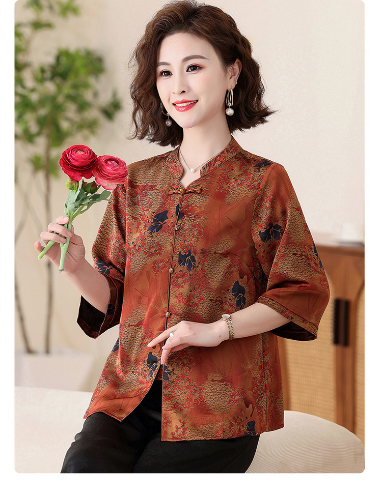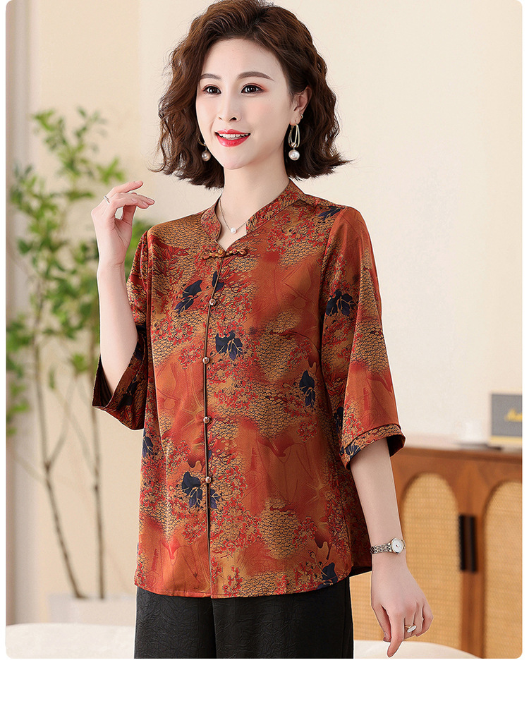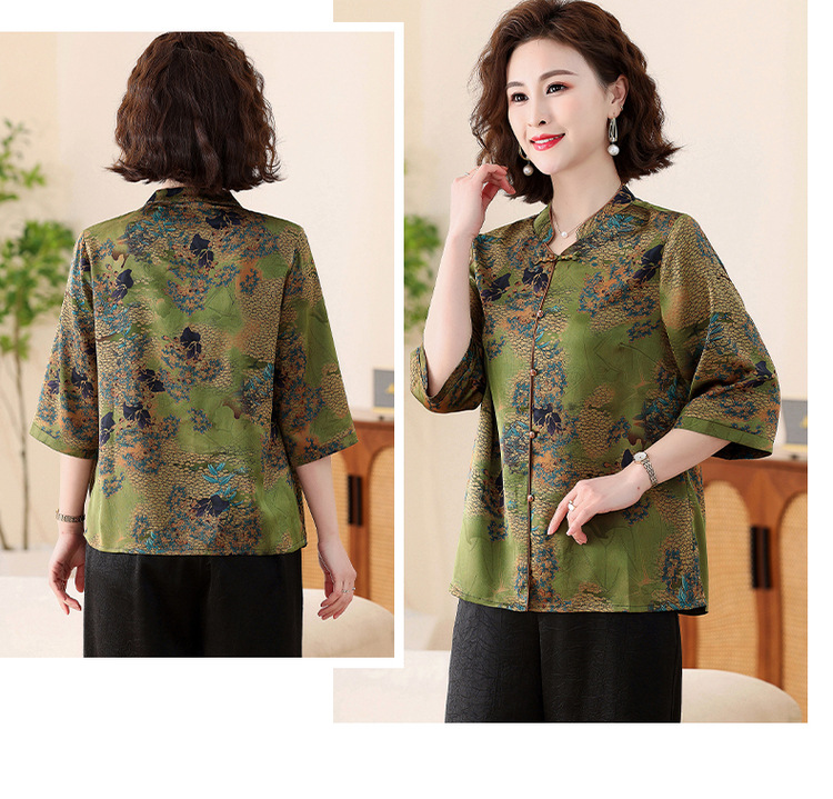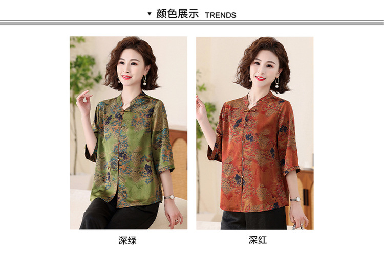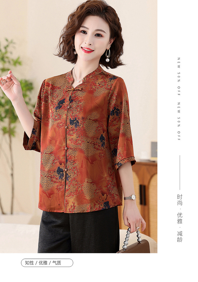 夏装新款中老年女装妈妈香云纱真丝衬衫中袖时尚老年人桑蚕丝上衣