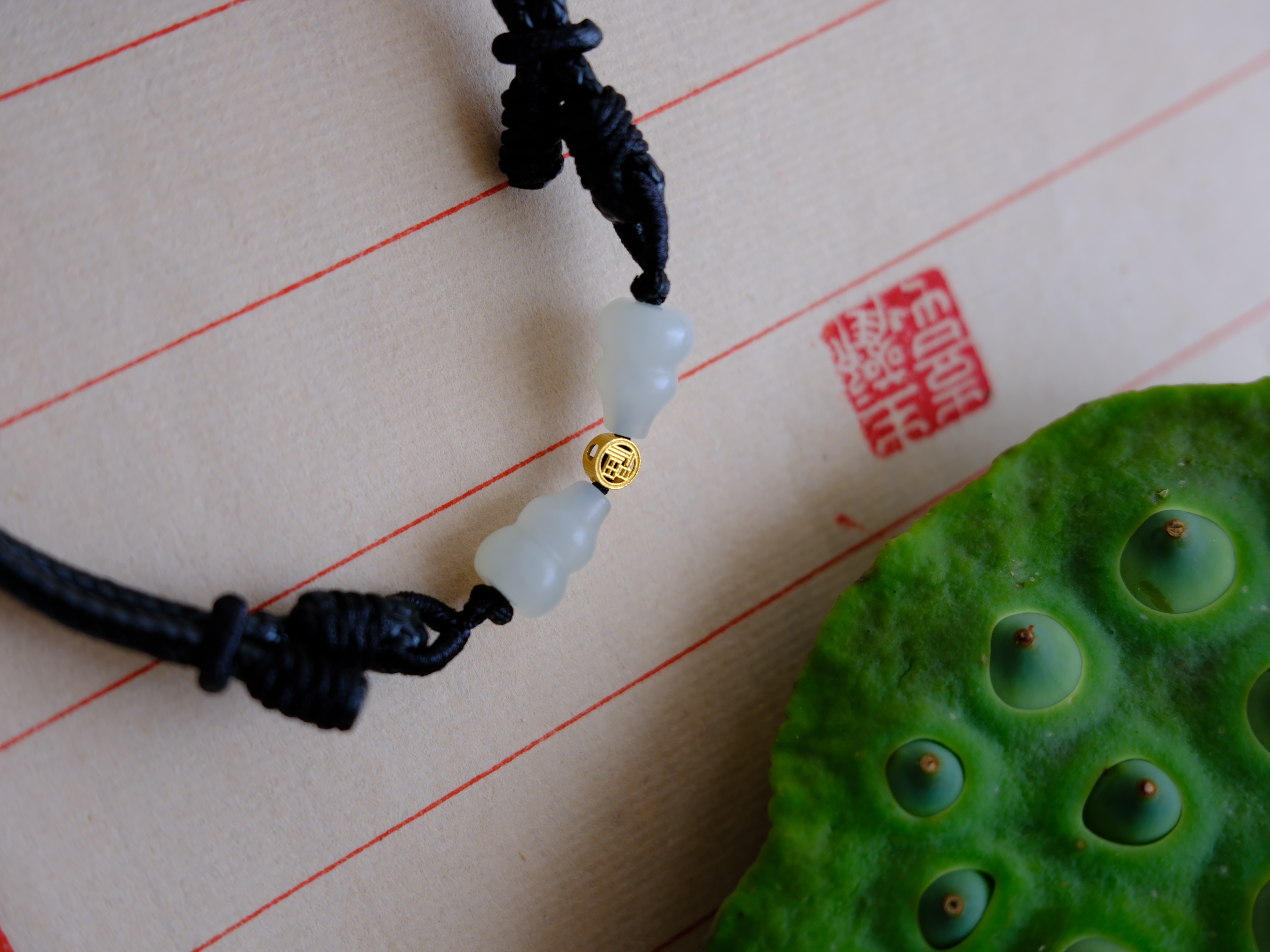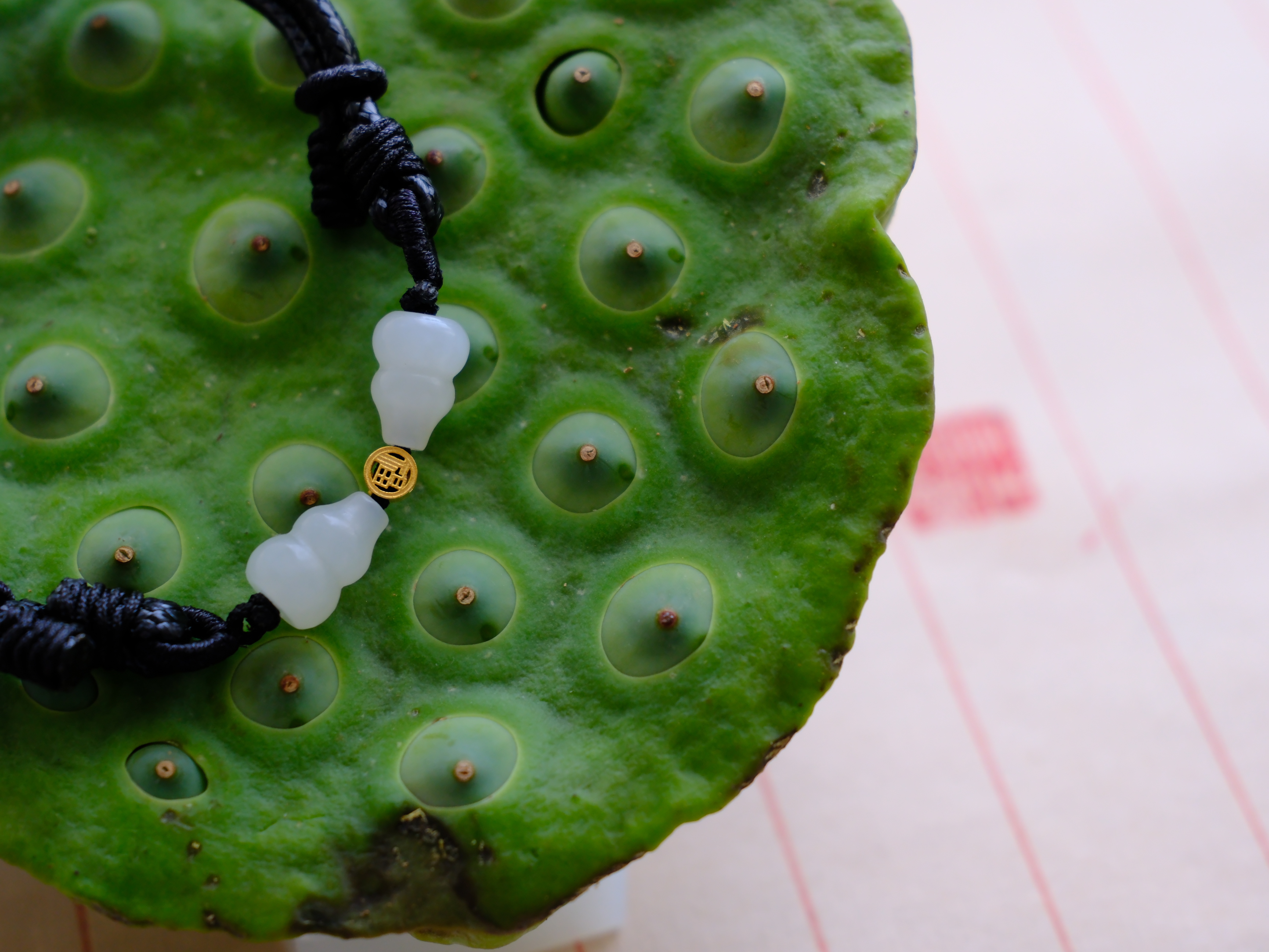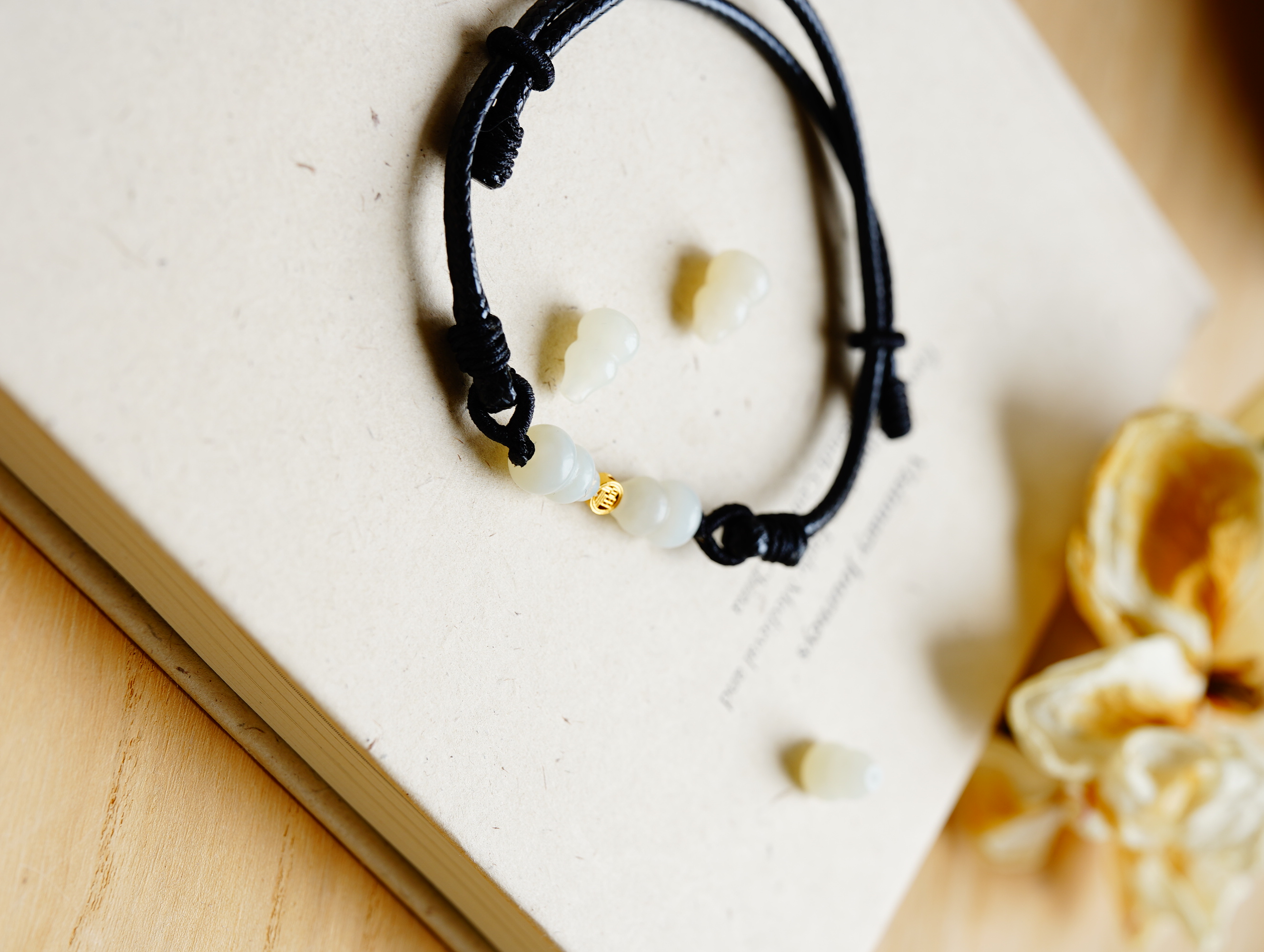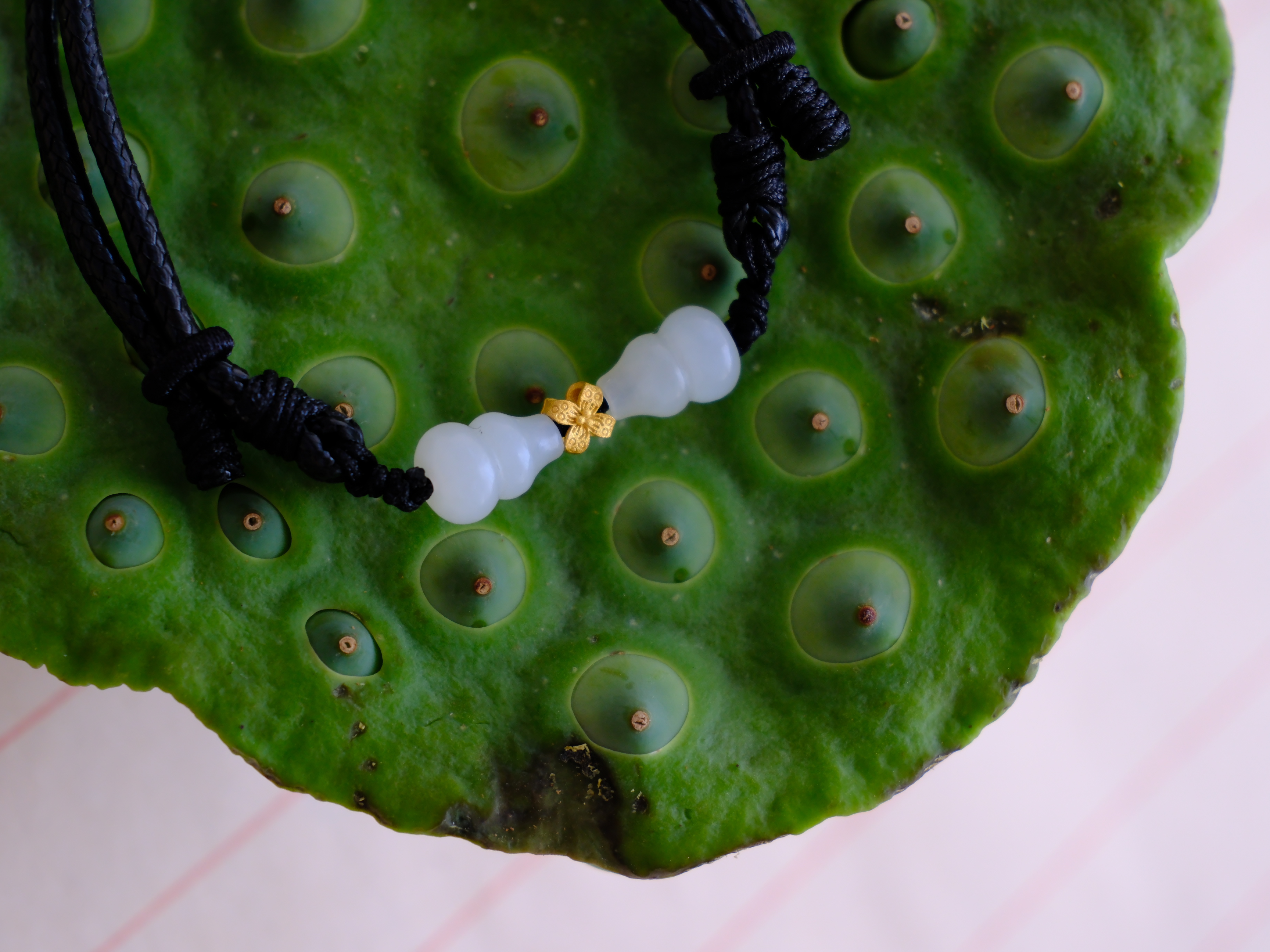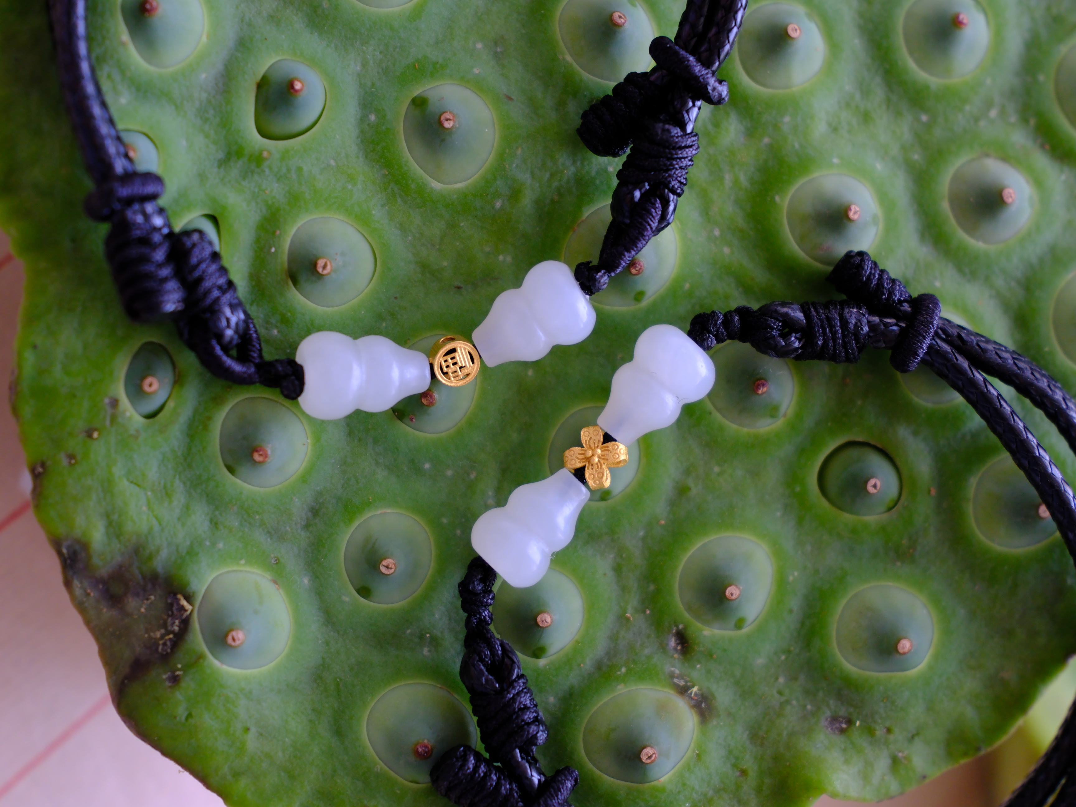 以籽料小葫芦配蜡皮绳做手串,拼成小蝴蝶。