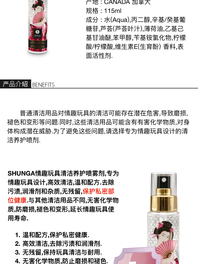 春画SHUNGA 情趣玩具专用清洁养护喷剂 NETTOYANT DOUX