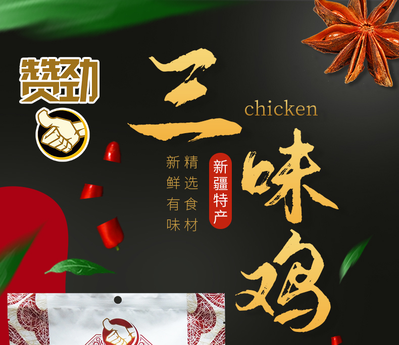 赞劲鸡肉系列辣子鸡+椒麻鸡+大盘鸡三包组合 50g*3 一次尝遍三味 每包都是不同惊喜