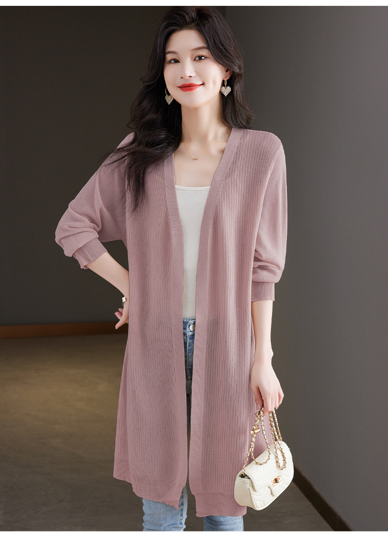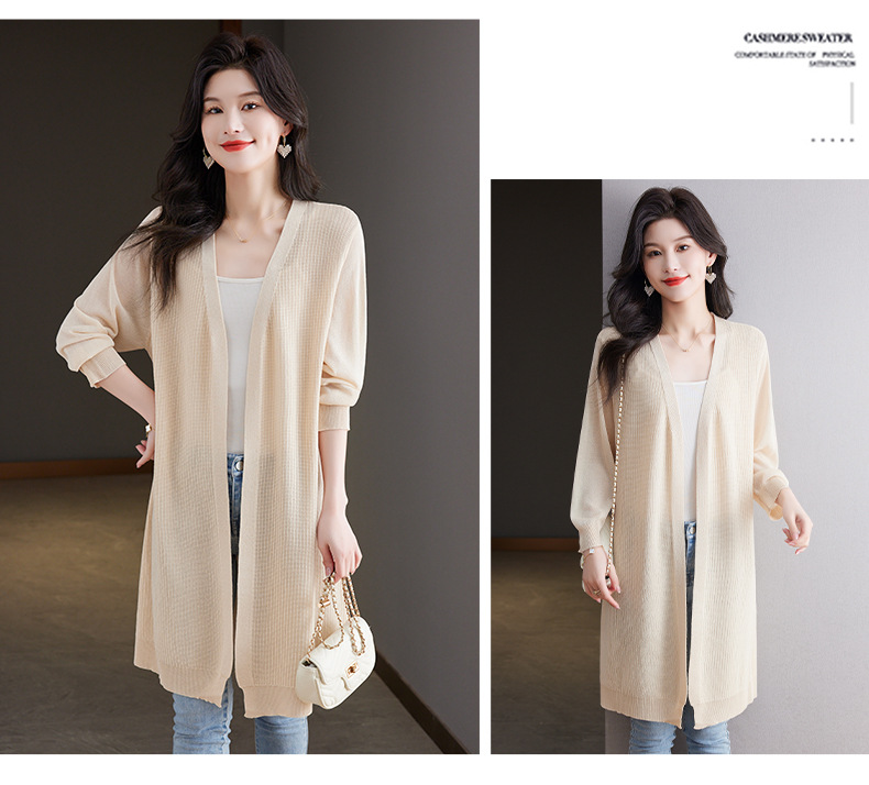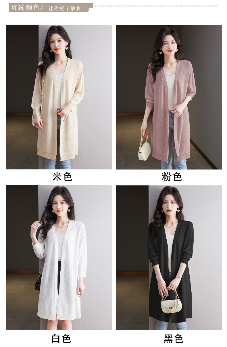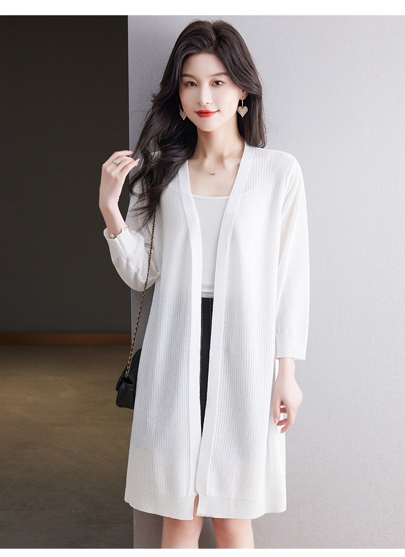 CC13-6822夏季防晒衣女2024新款宽松白色洋气休闲中长款垂感透气冰丝上衣薄