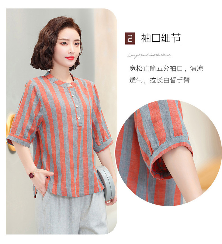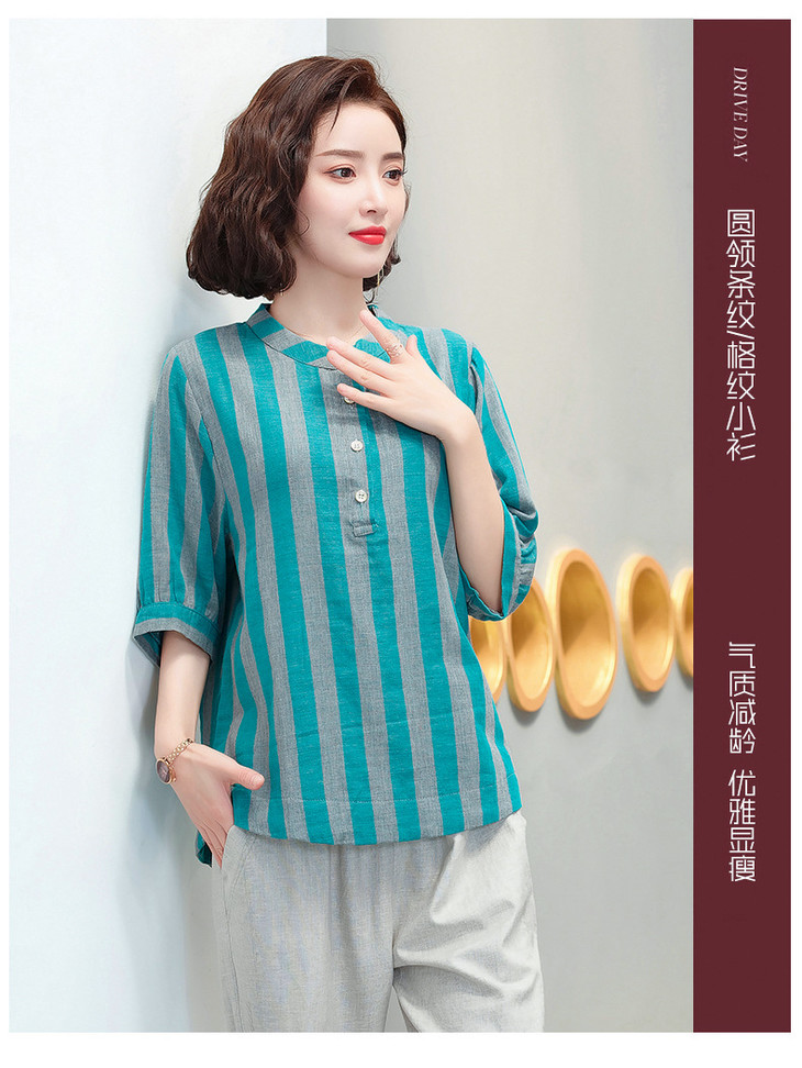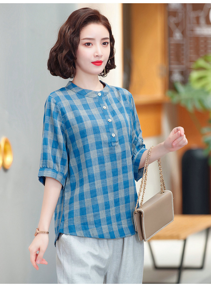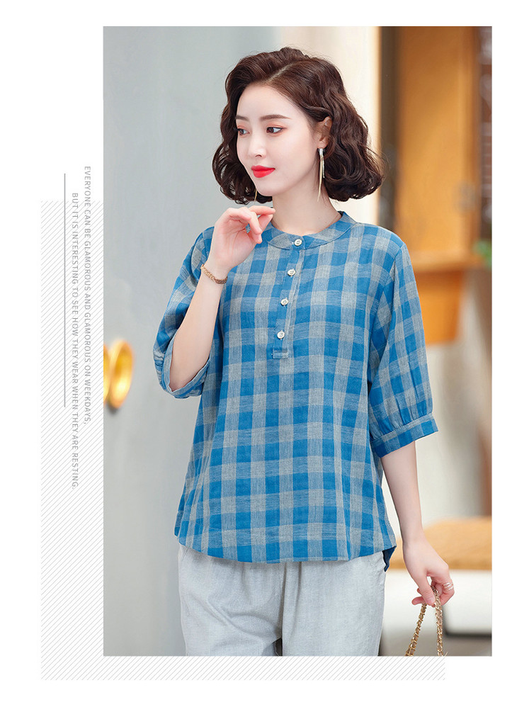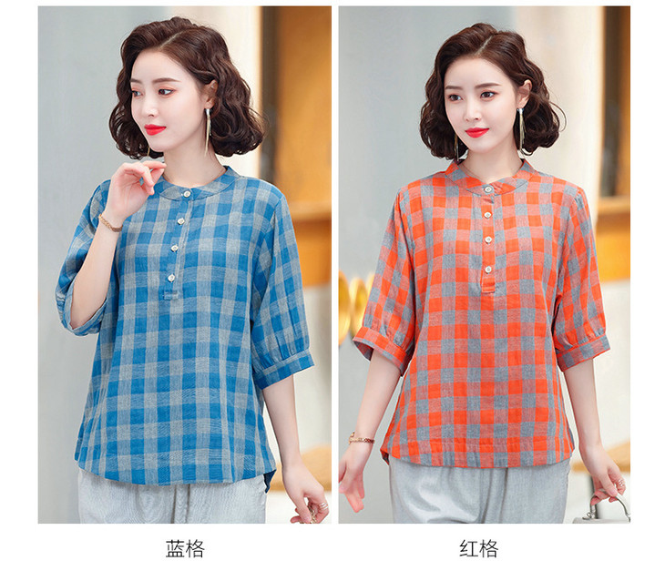 MQ-1927-020夏季复古文艺宽松五分袖格子衬衫