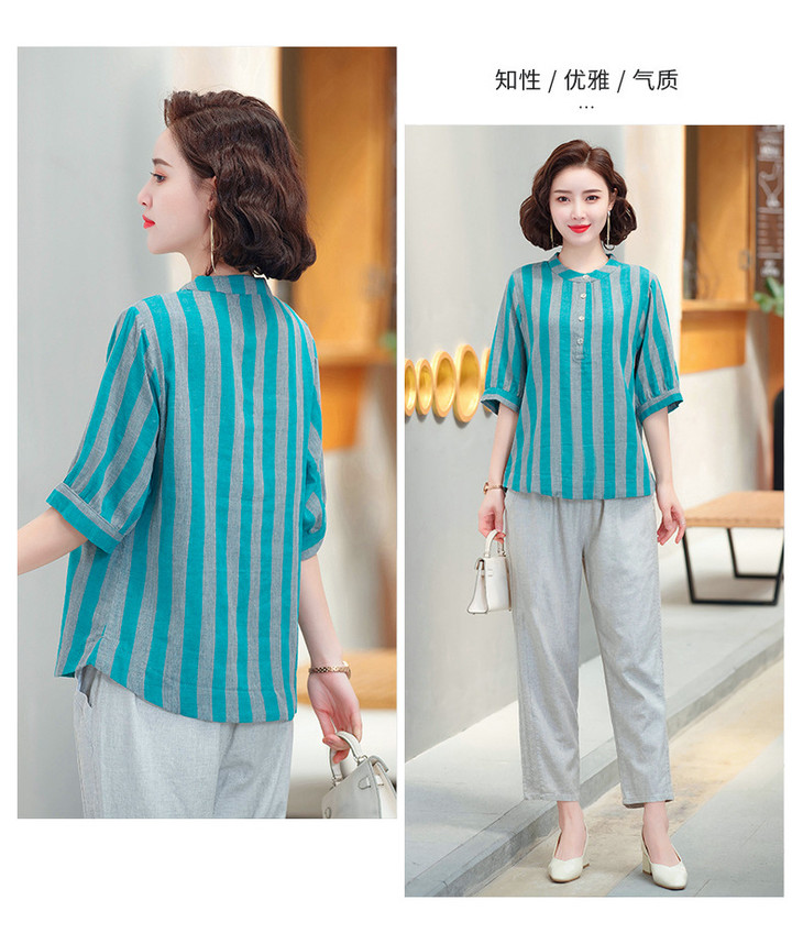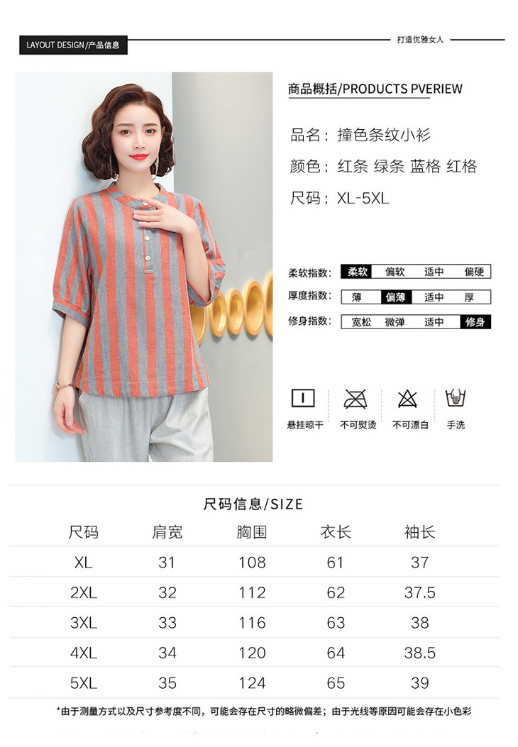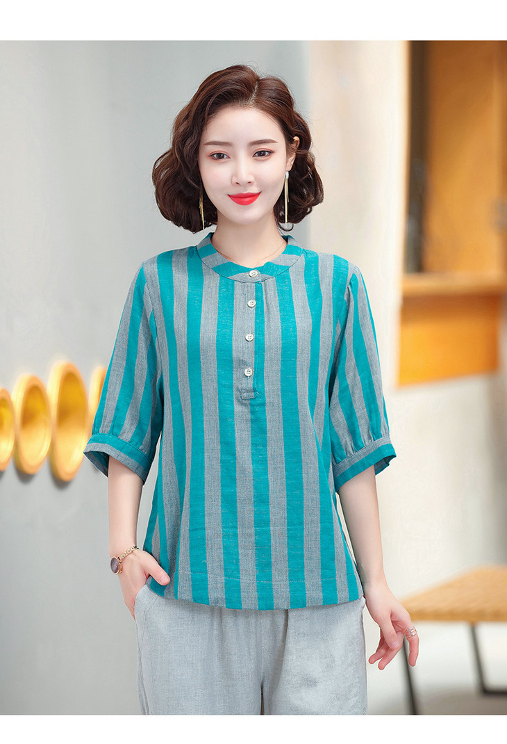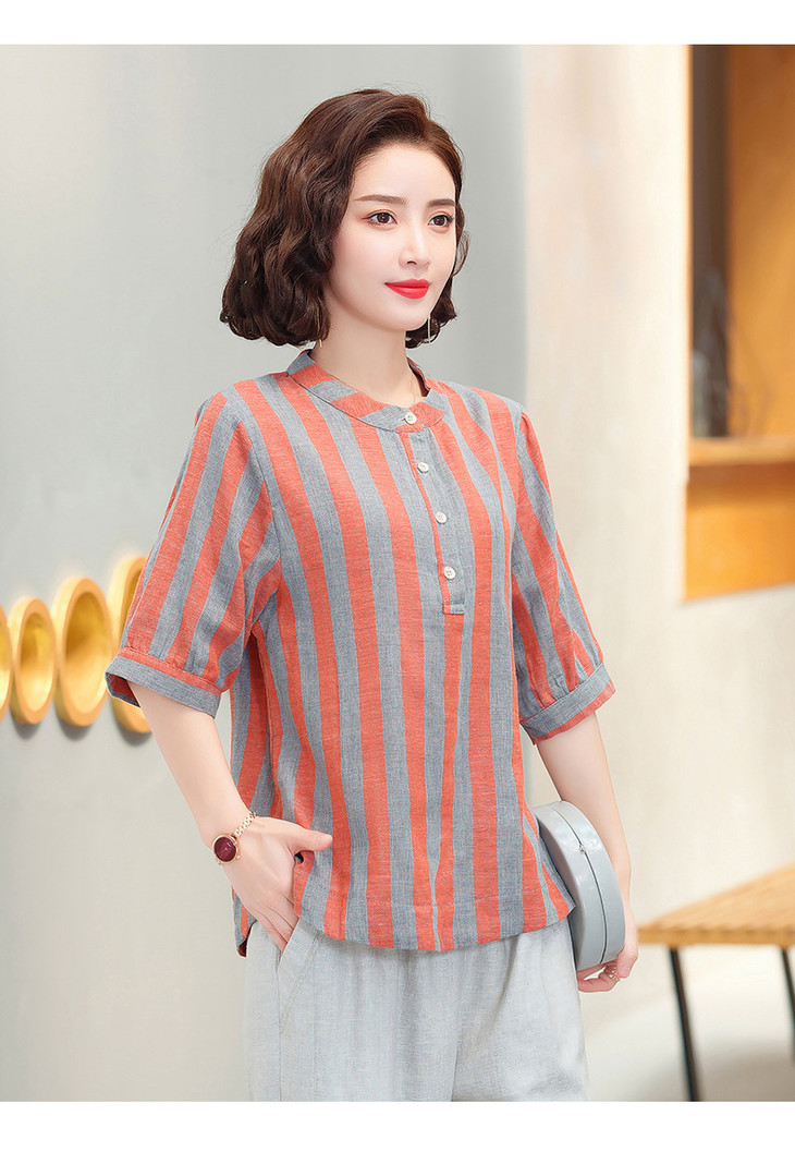 MQ-1927-020夏季复古文艺宽松五分袖格子衬衫