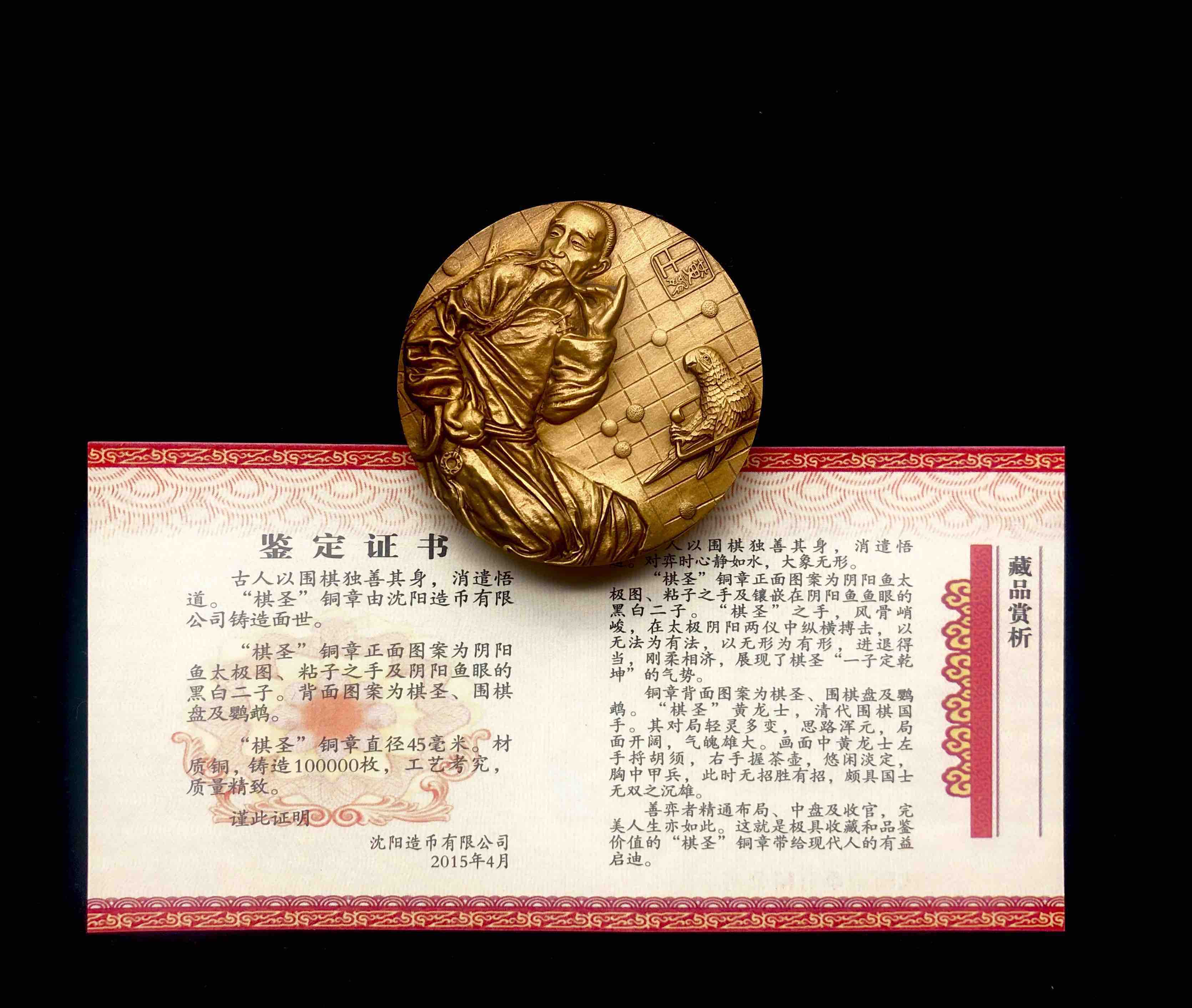 沈阳造币棋圣铜章(直径45mm 黄铜)