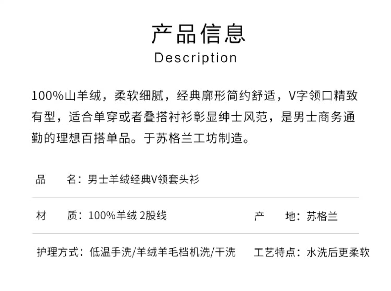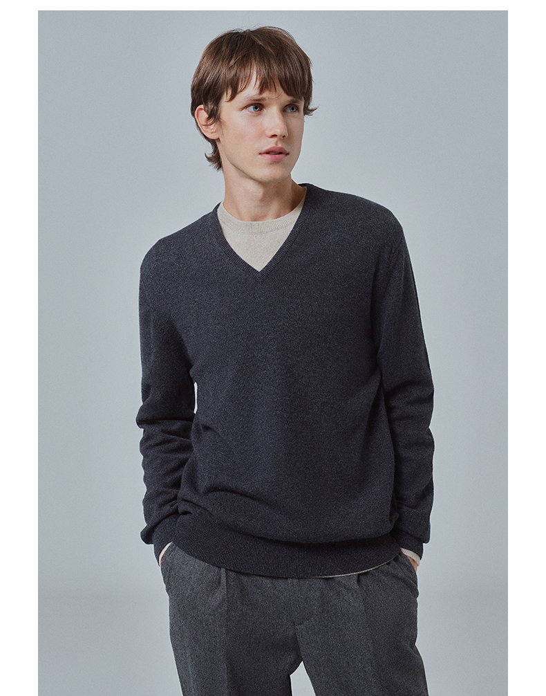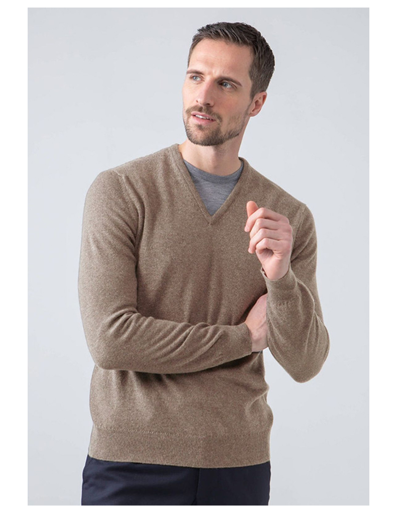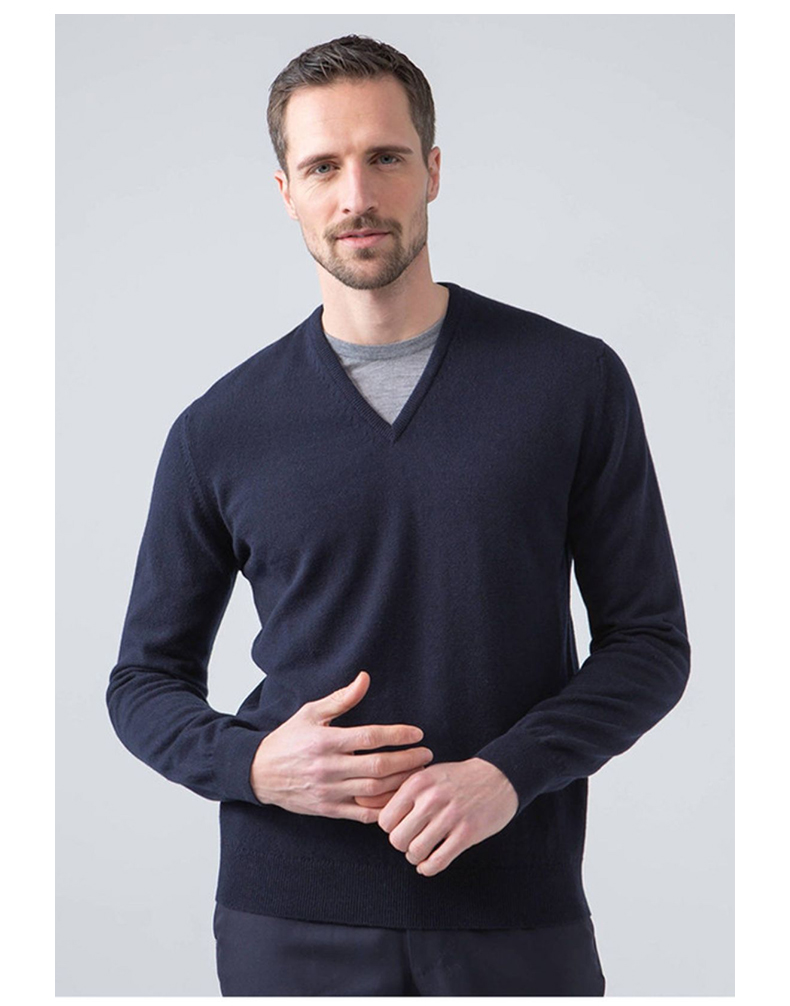 Johnstons of Elgin男士纯羊绒经典V领套头衫