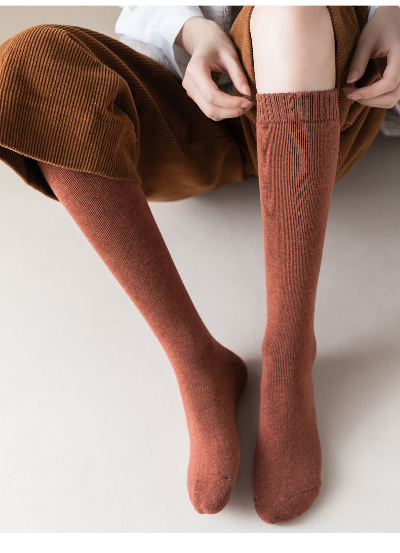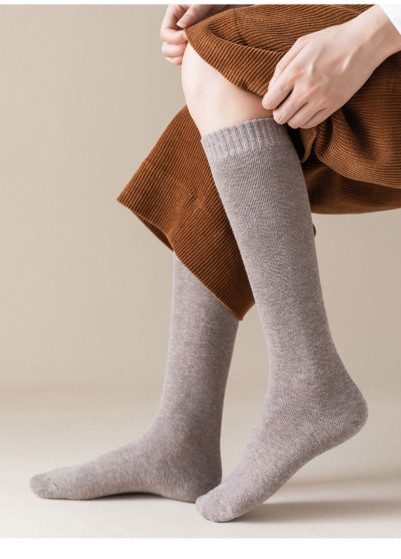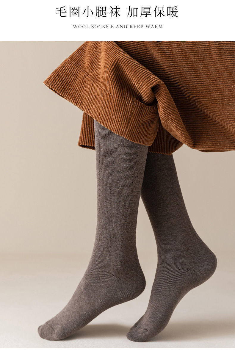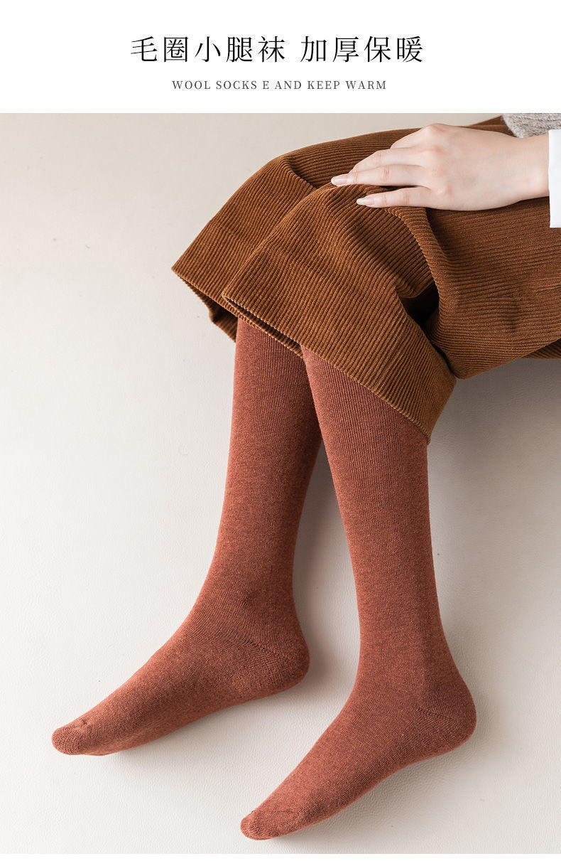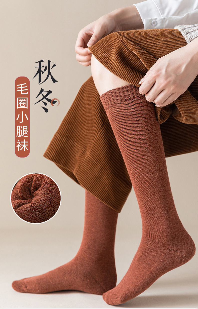 【超值长袜29.9任选2款!】袜子女小腿袜 秋冬季保暖加厚高筒毛圈袜 纯色显瘦韩版JK女士长筒袜 学生礼服长袜-QQ