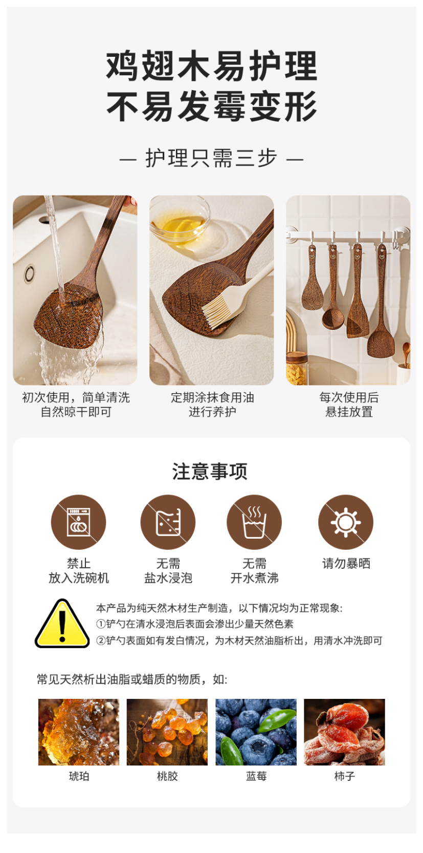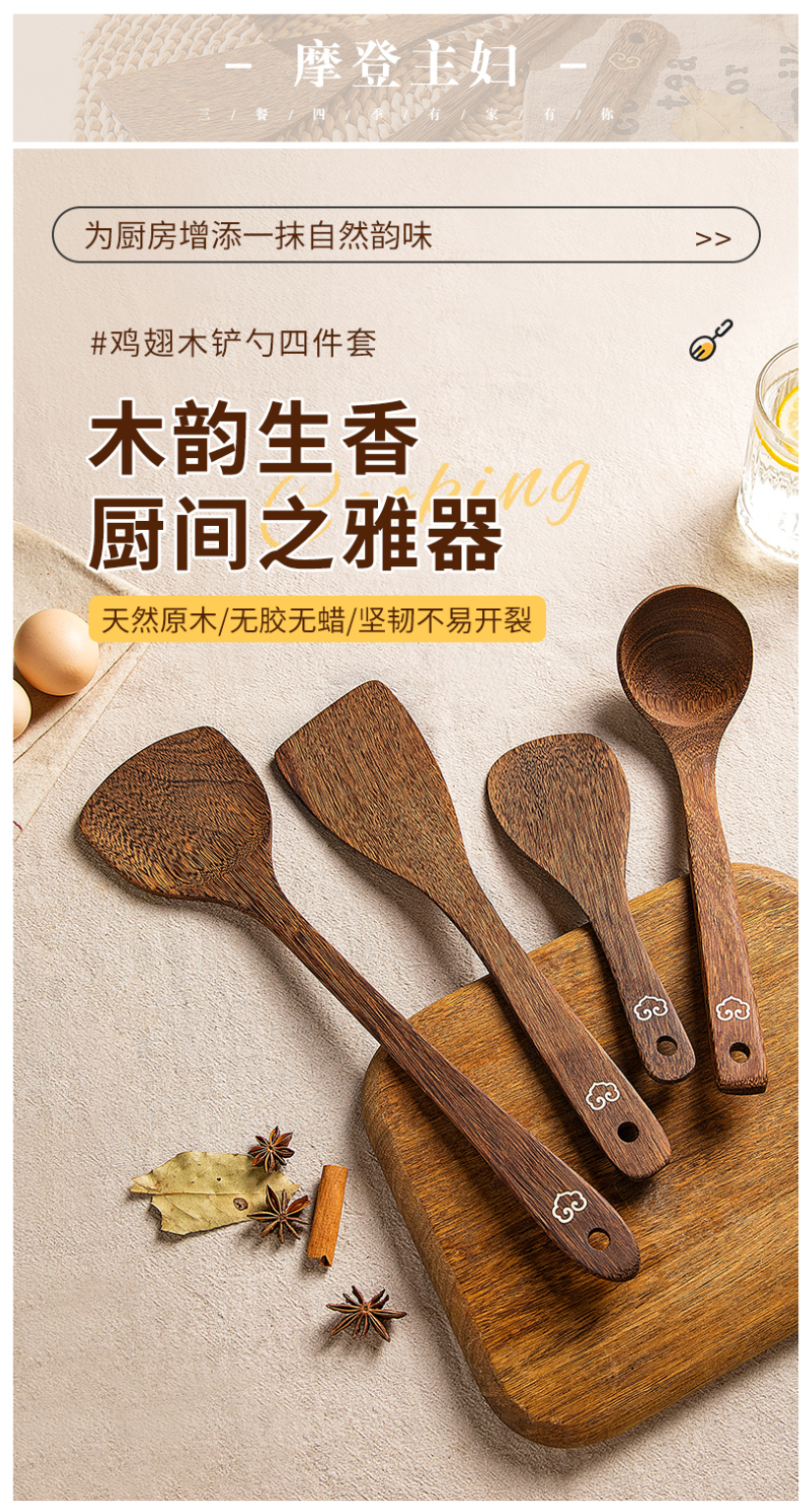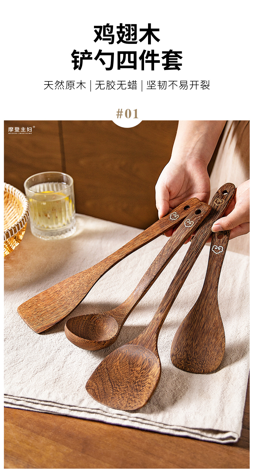 摩登主妇鸡翅木锅铲家用耐高温不粘锅专用炒勺厨具木质炒菜木铲子