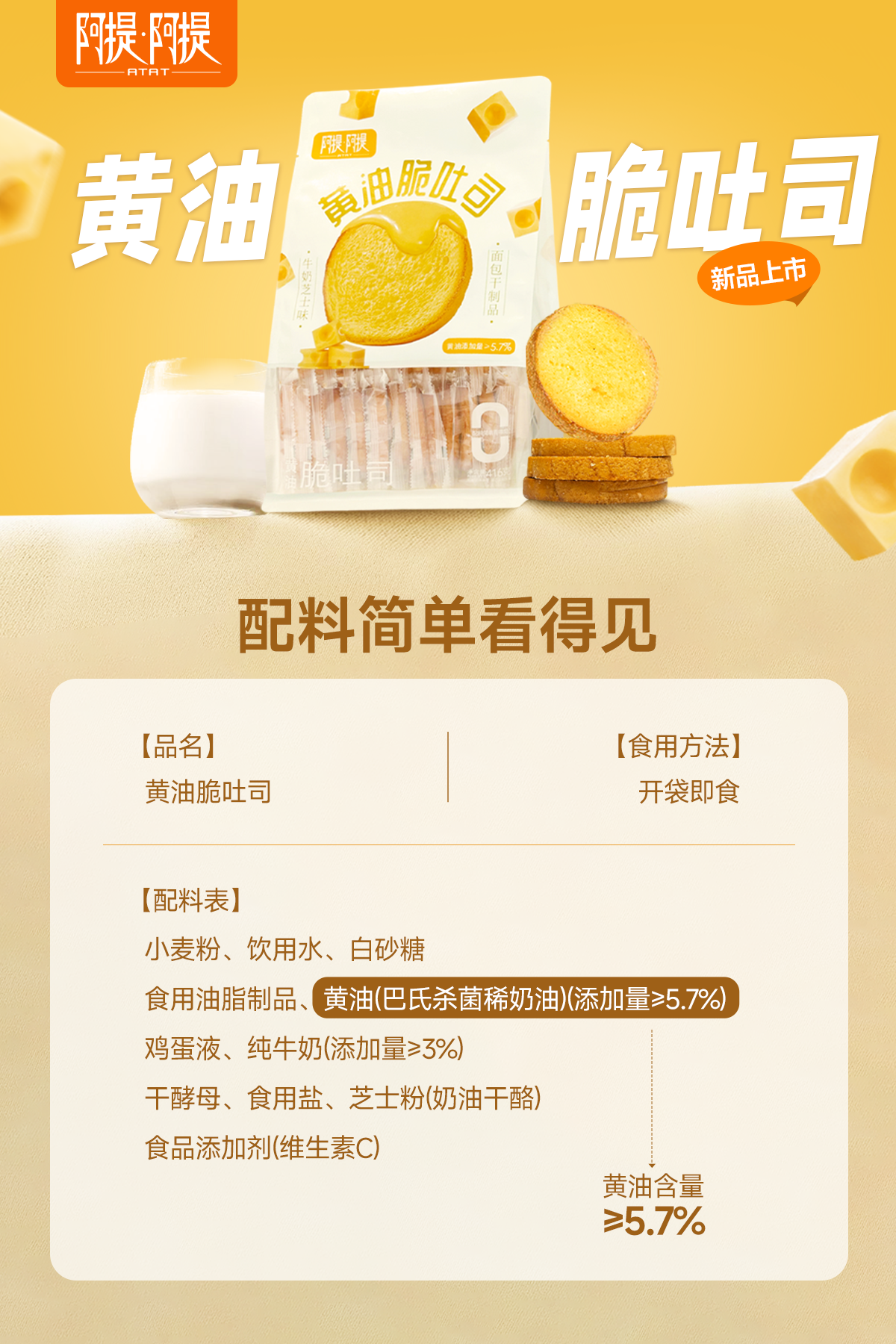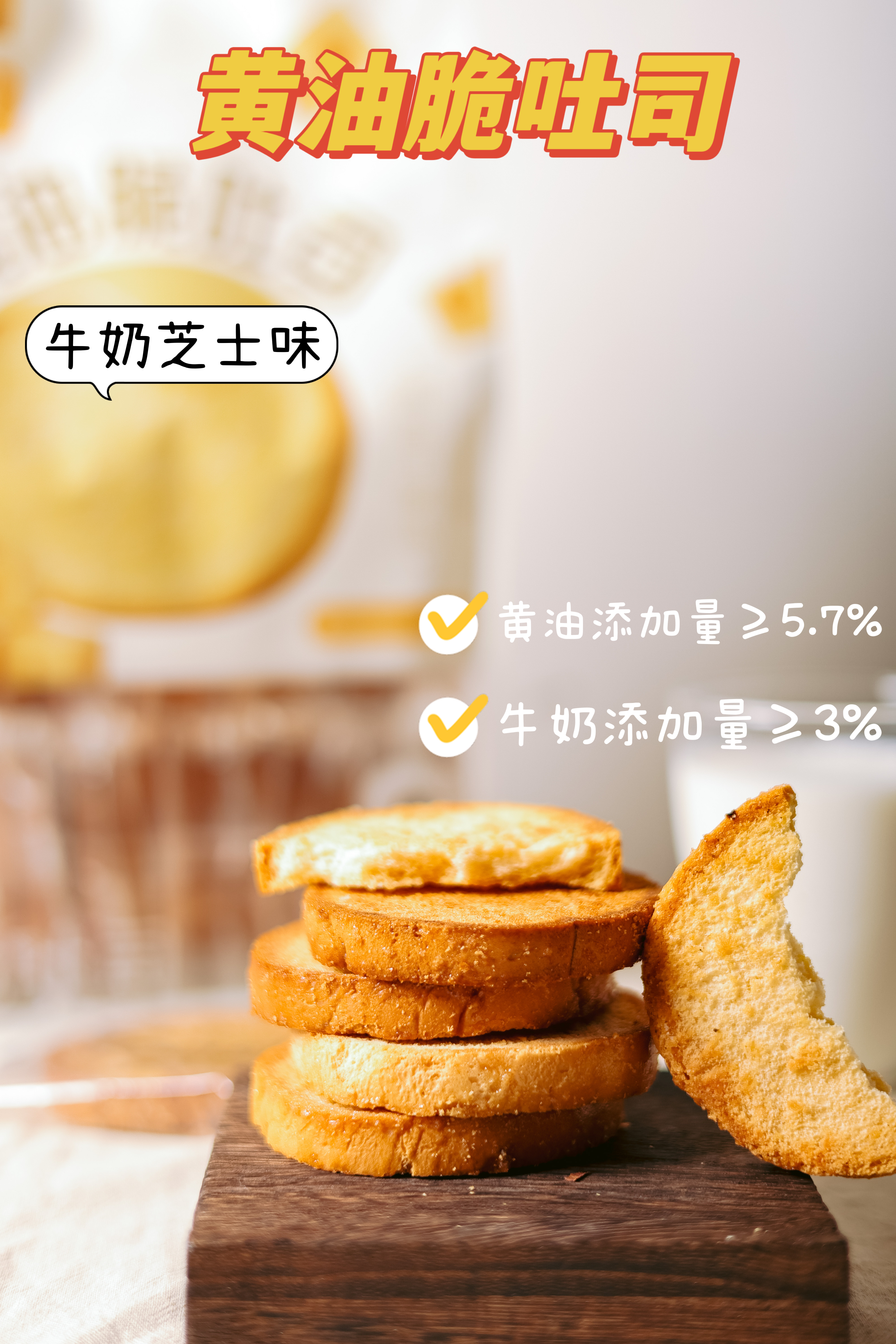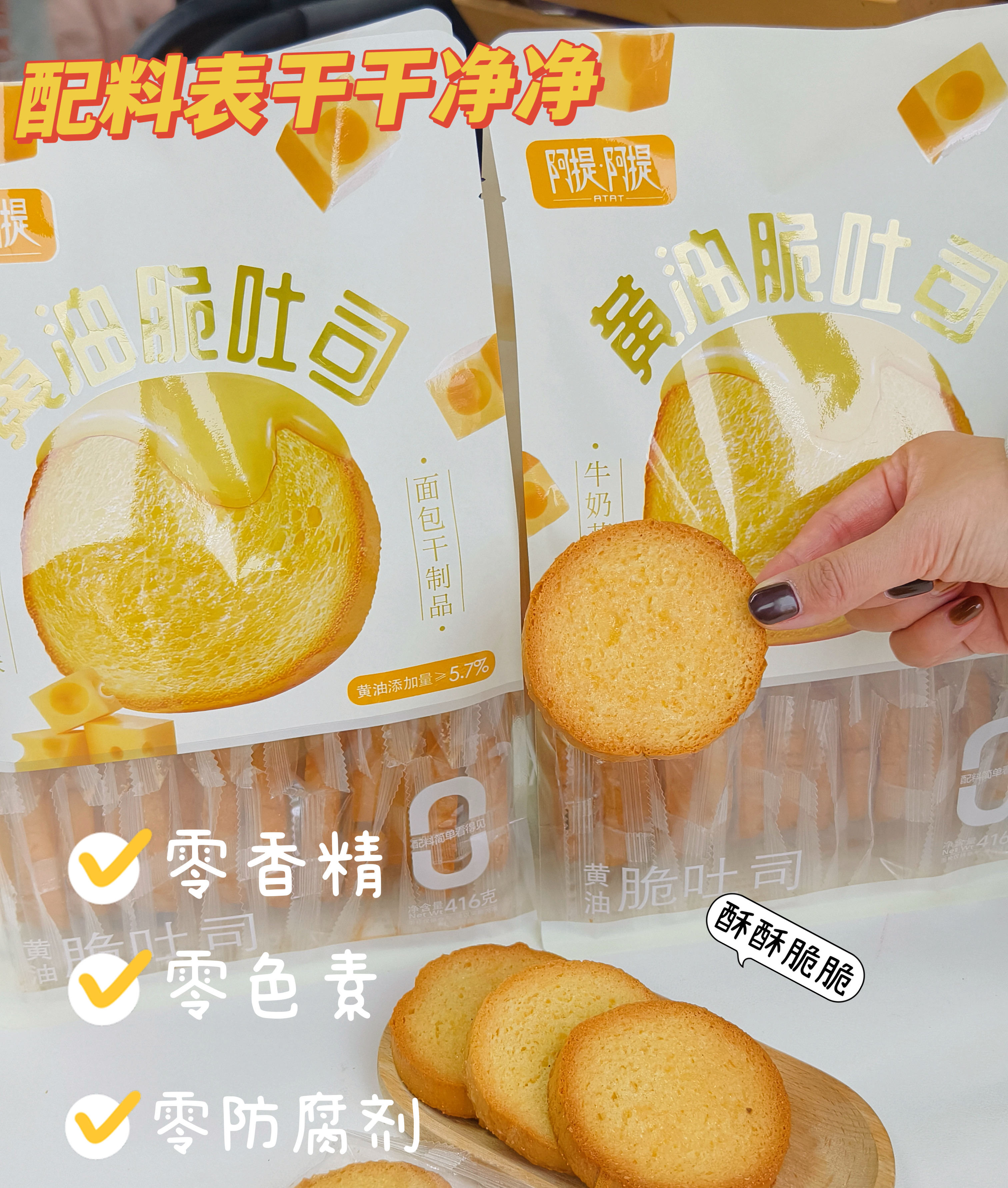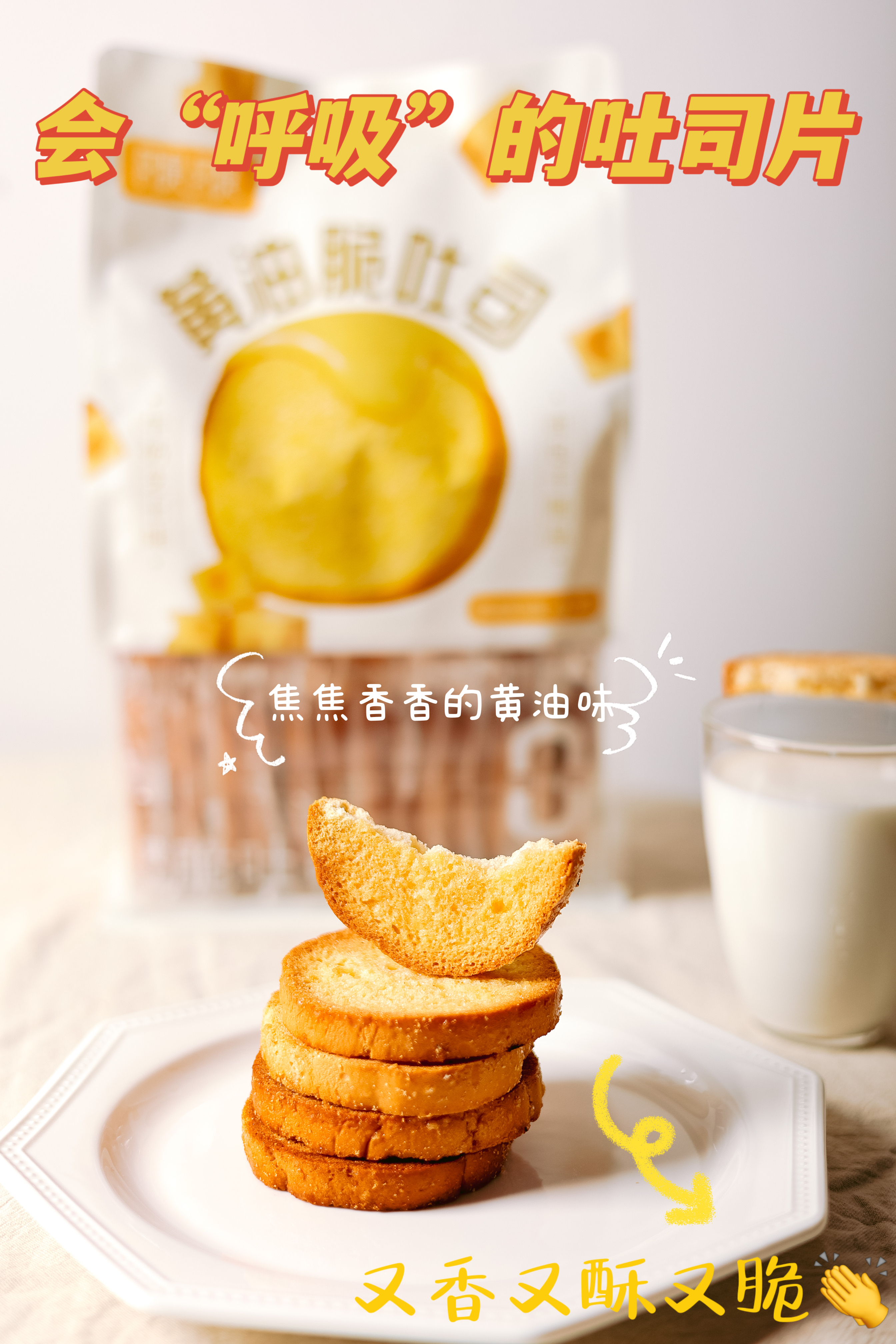 会"呼吸"的吐司片【黄油脆吐司】添加≥5.7%黄油 又香又酥又脆 饱腹充饥 酥脆香浓 配料表干干净净 无香精、色素、防腐剂