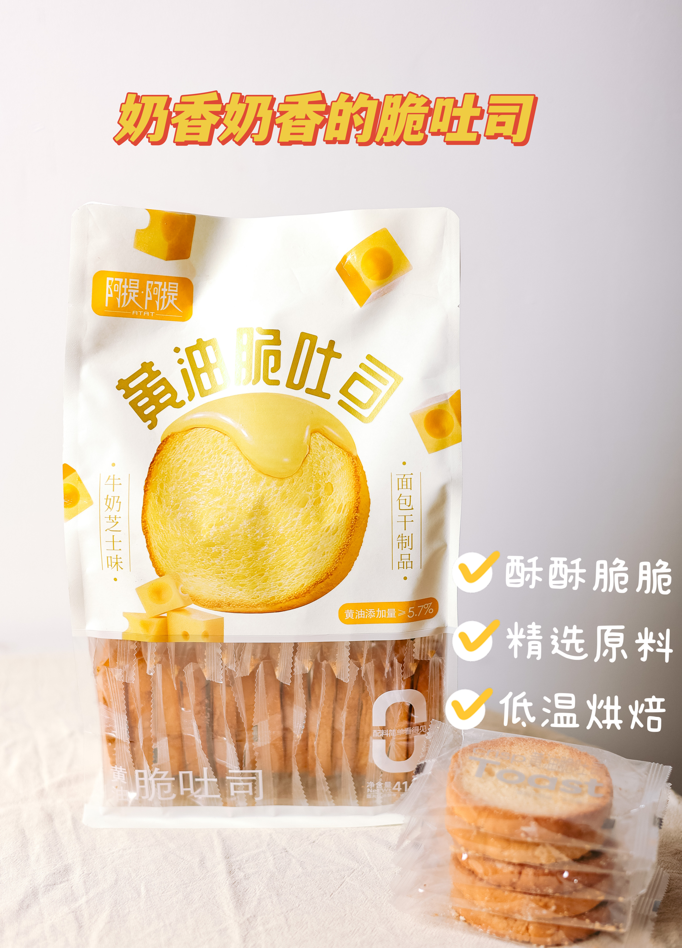 黄油脆吐司解决的不止是填饱肚子!而是还原你一个高级标配的营养餐!也可以是一次优雅的下午茶~关键是:简单!!方便!!一袋搞定所有!!
