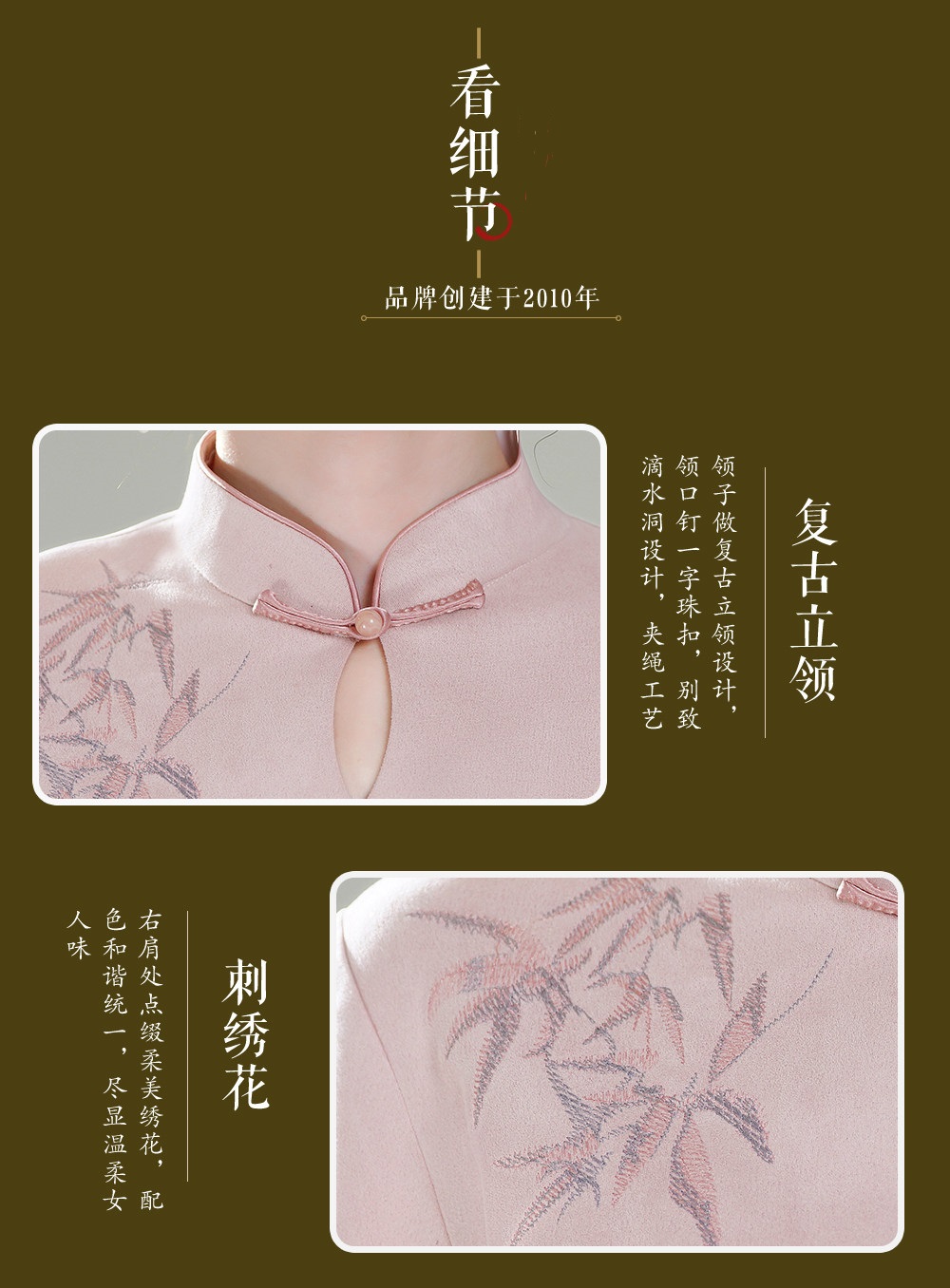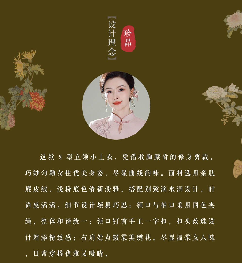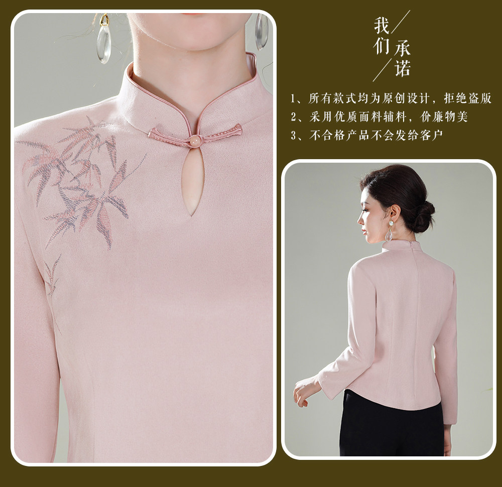 【粉烟】麂皮绒绣花改良新中式,国风旗袍唐装上衣XGT-T25114