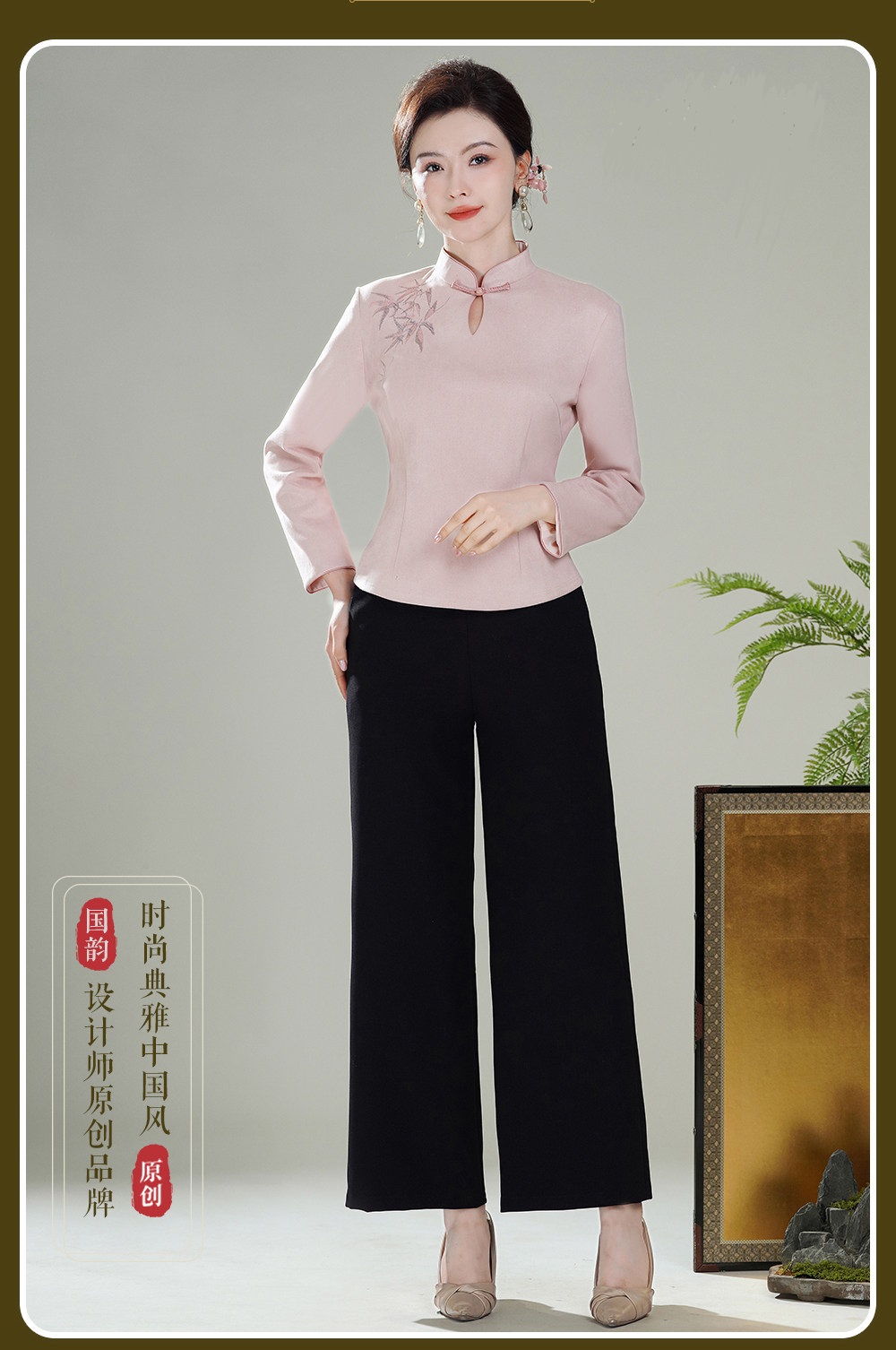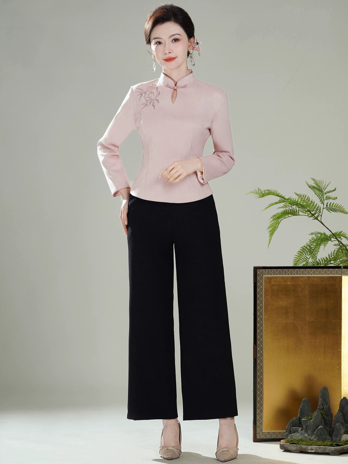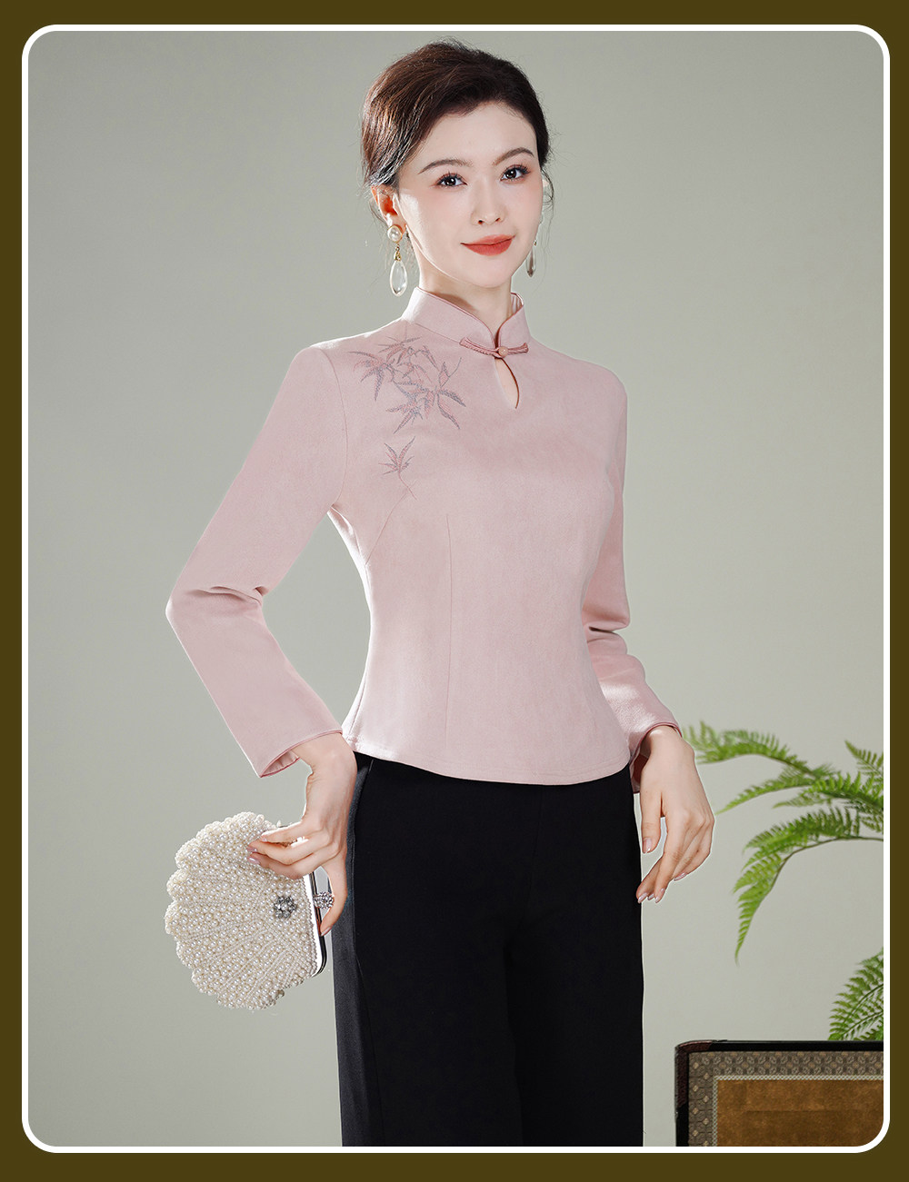 【粉烟】麂皮绒绣花改良新中式,国风旗袍唐装上衣XGT-T25114