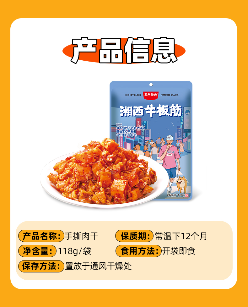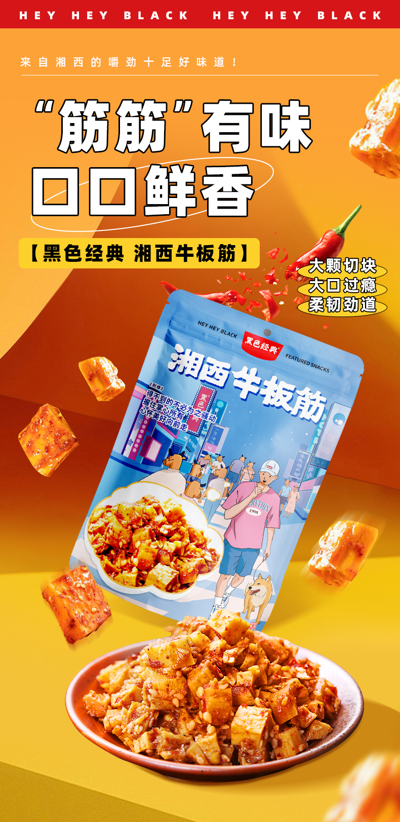 【湘西特产】黑色经典网红麻辣零食耐烦牛板筋118g 7-8小包左右