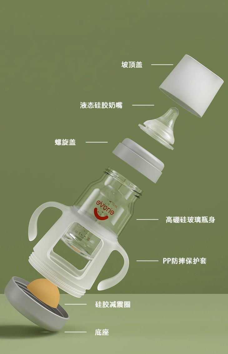 经送检,硅胶奶嘴的有机挥发物、PP瓶盖的总迁移量、高锰酸钾消耗量和玻璃瓶身的重金属铅镉溶出,均未检出,安全性优秀