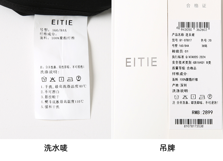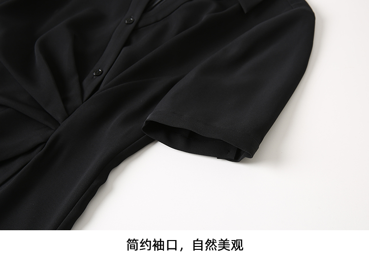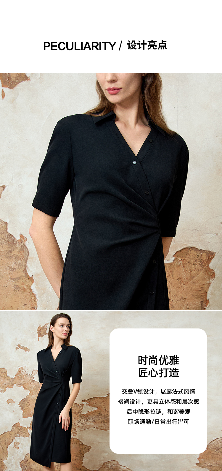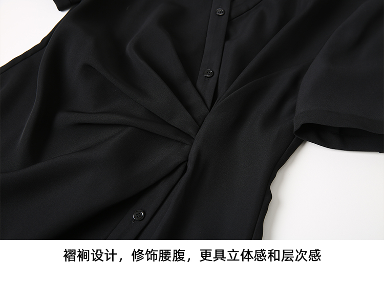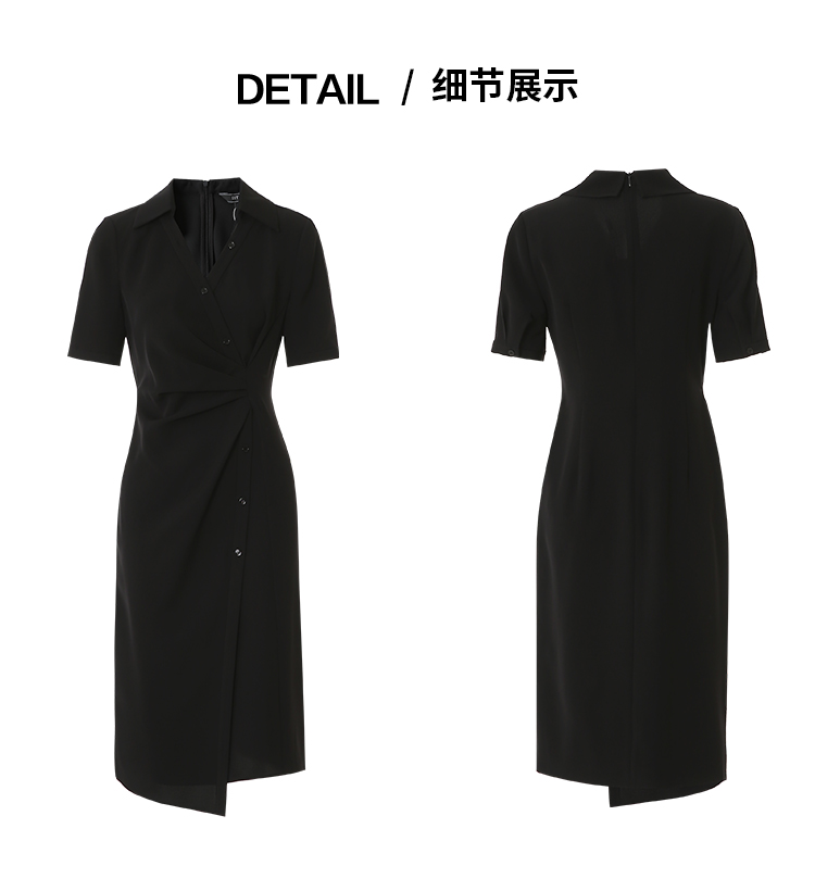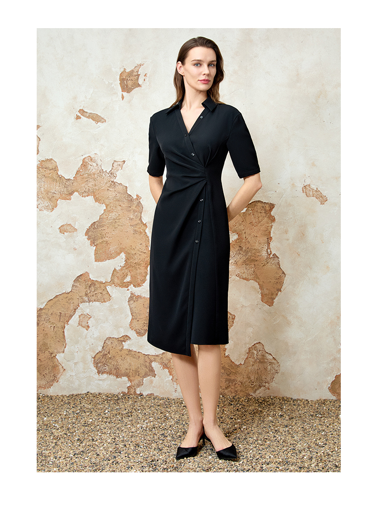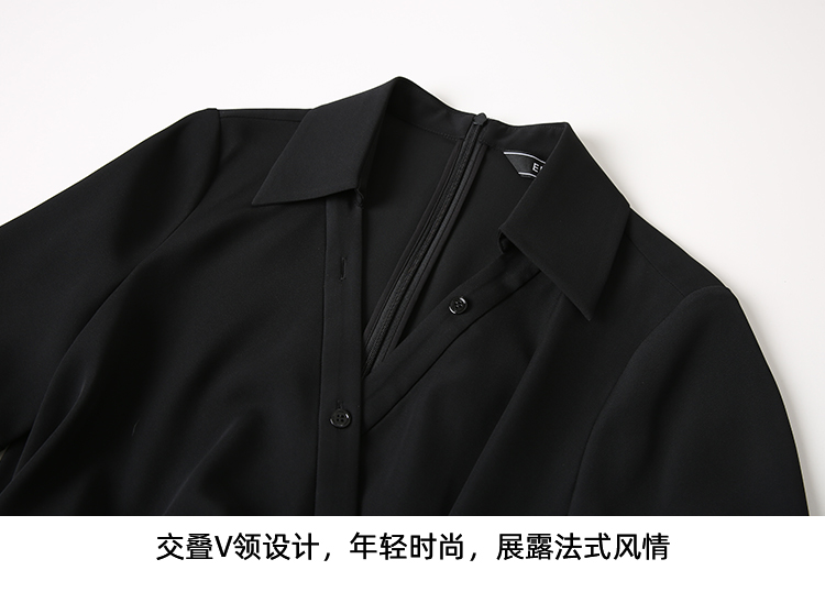 EITIE爱特爱优雅气质通勤显瘦提褶黑色连衣裙春季新款8107817
