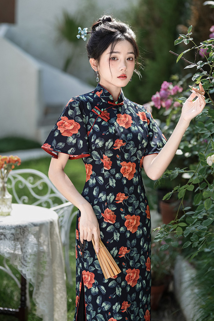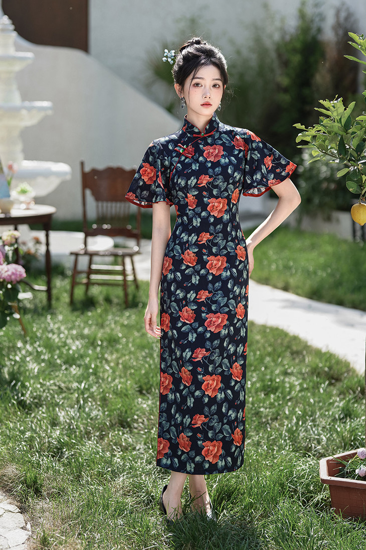 改良旗袍长款日常气质飞飞袖连衣裙XL206