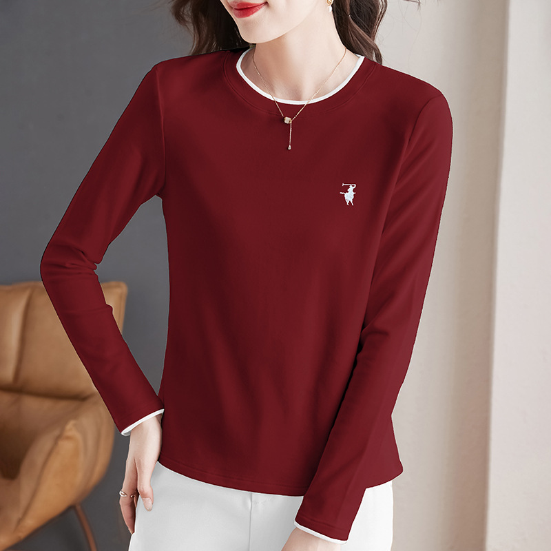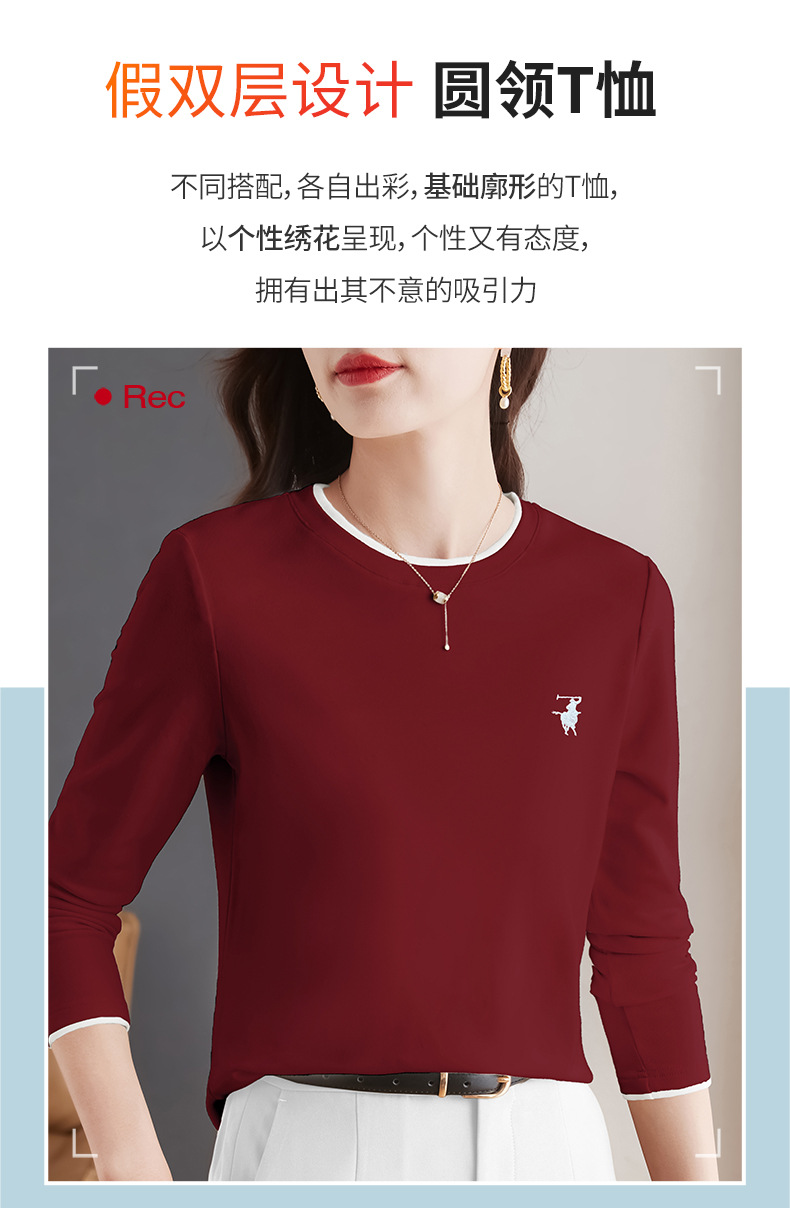 丁摩 春秋圆领长袖t恤女士打底衫秋冬内搭可外穿新款女装爆款洋气上衣5ZF-0125